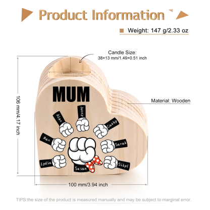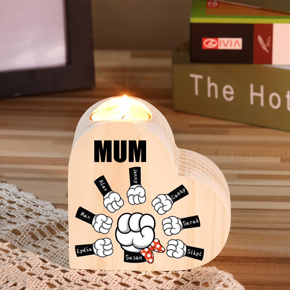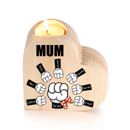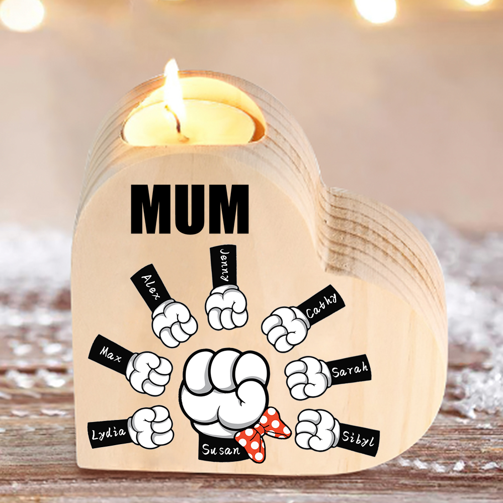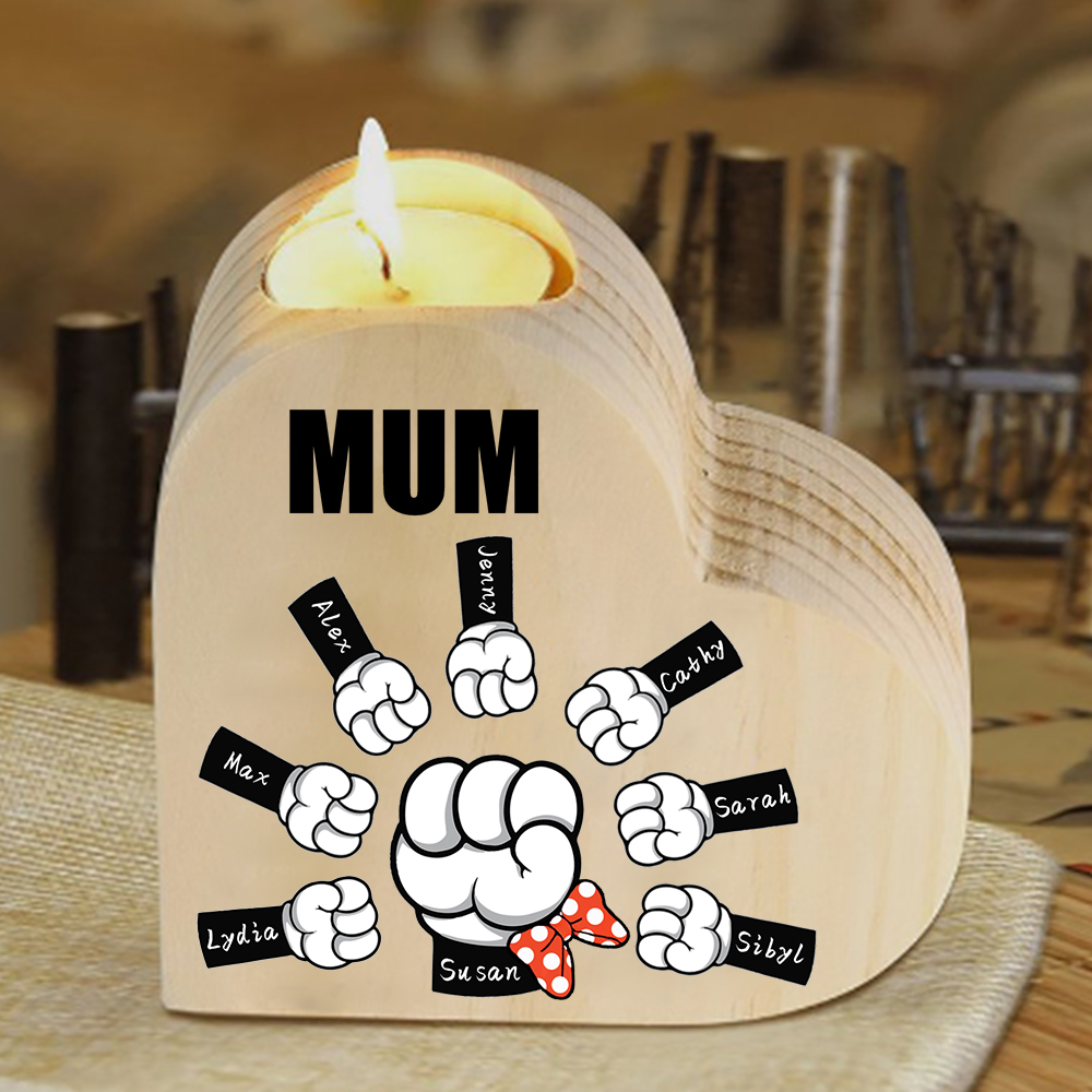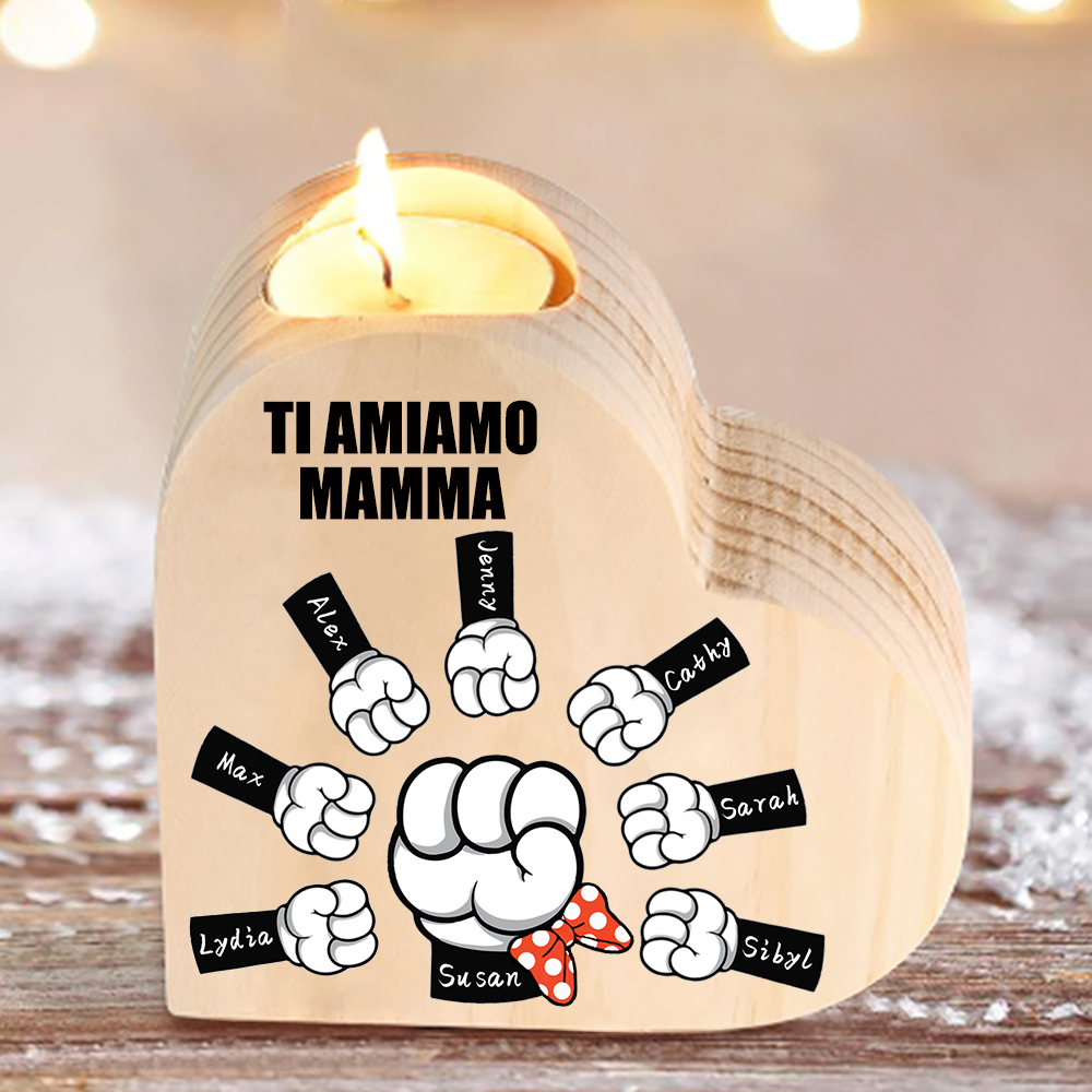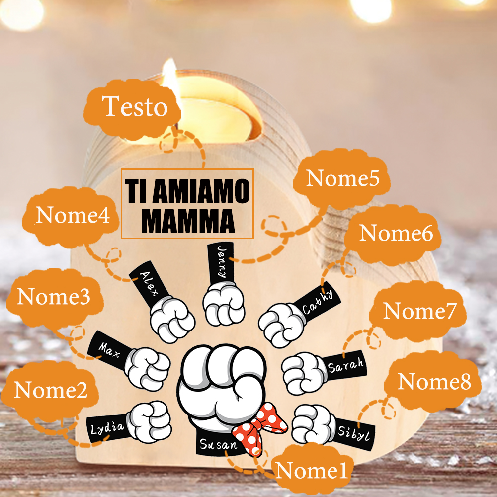 Candeliere a forma di cuore pugno a pugno 8 nomi e 1 testo personalizzati per mamma/nonna