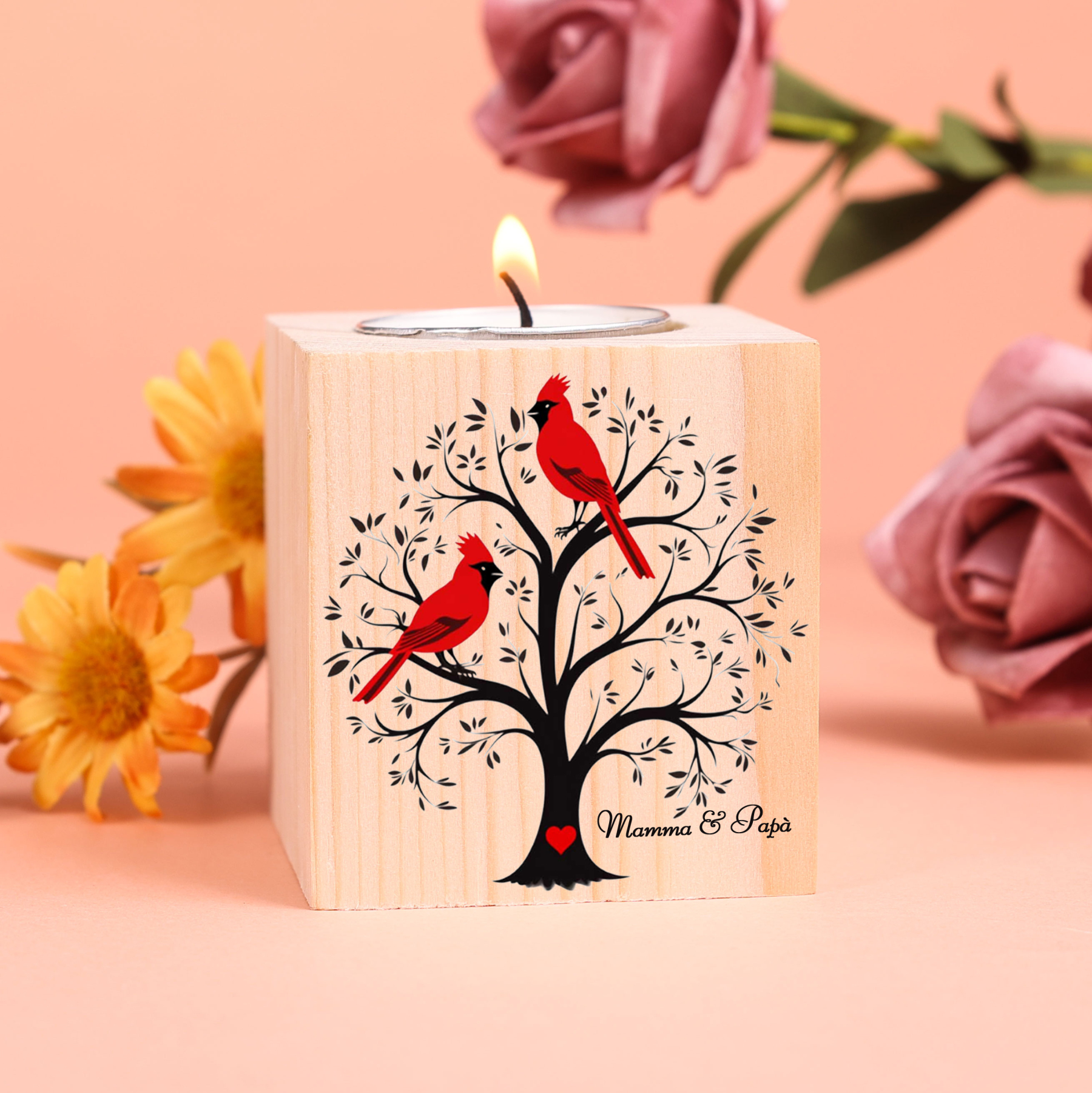 Candeliere candela cardinale e albero commemorativo 2 nomi personalizzabili
