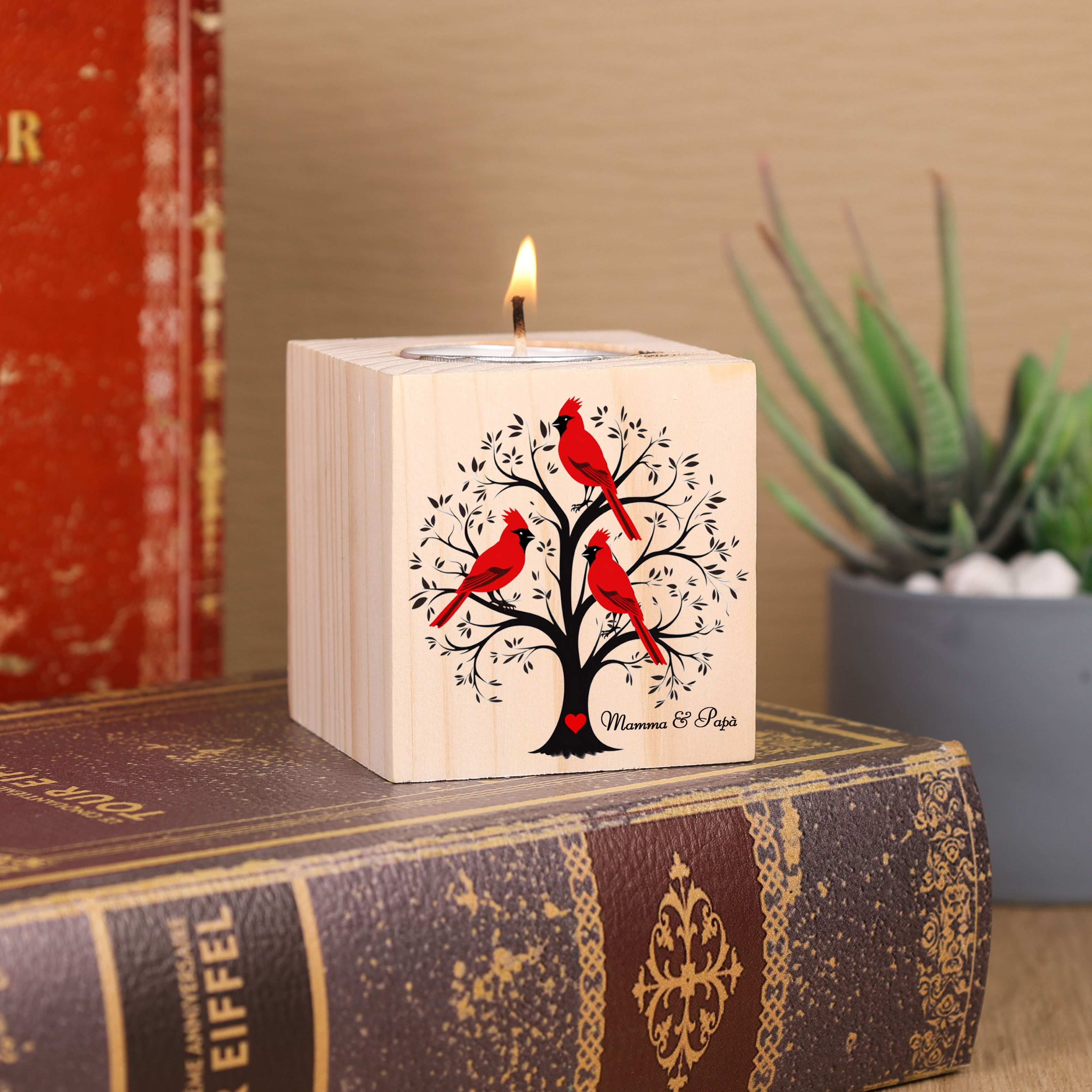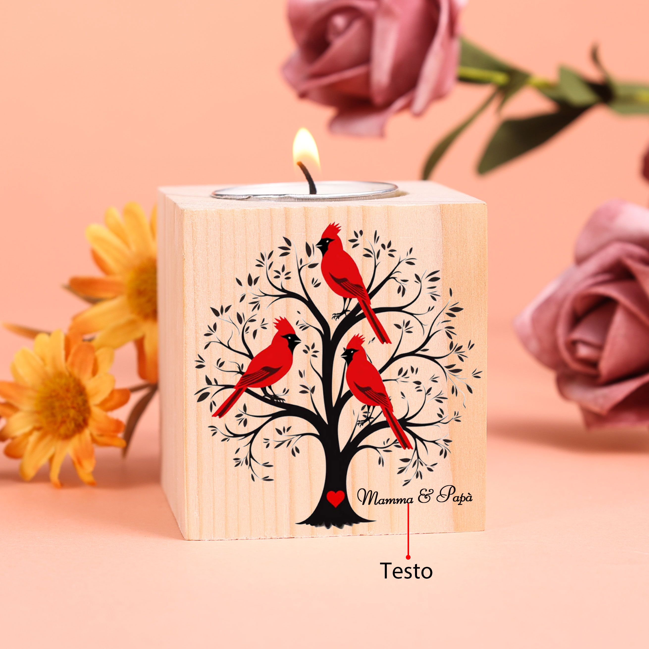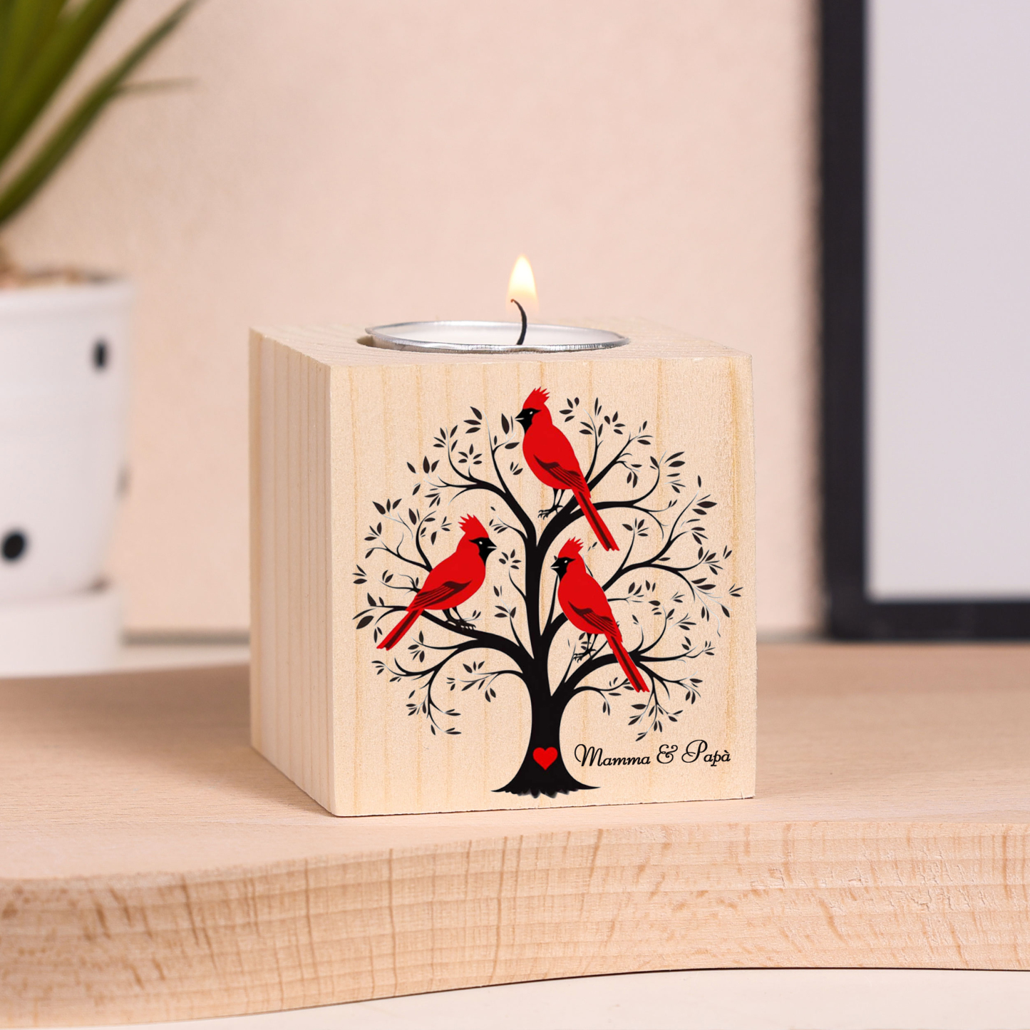 Candeliere candela cardinale e albero commemorativo 3 nomi personalizzabili