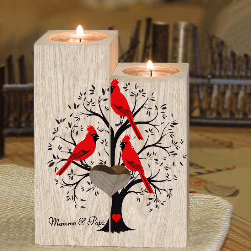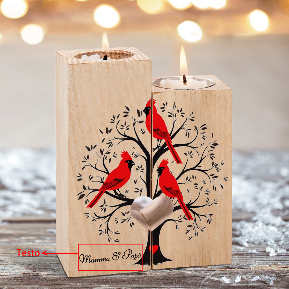 Candeliere candela cardinale e albero commemorativo 3 nomi personalizzabili