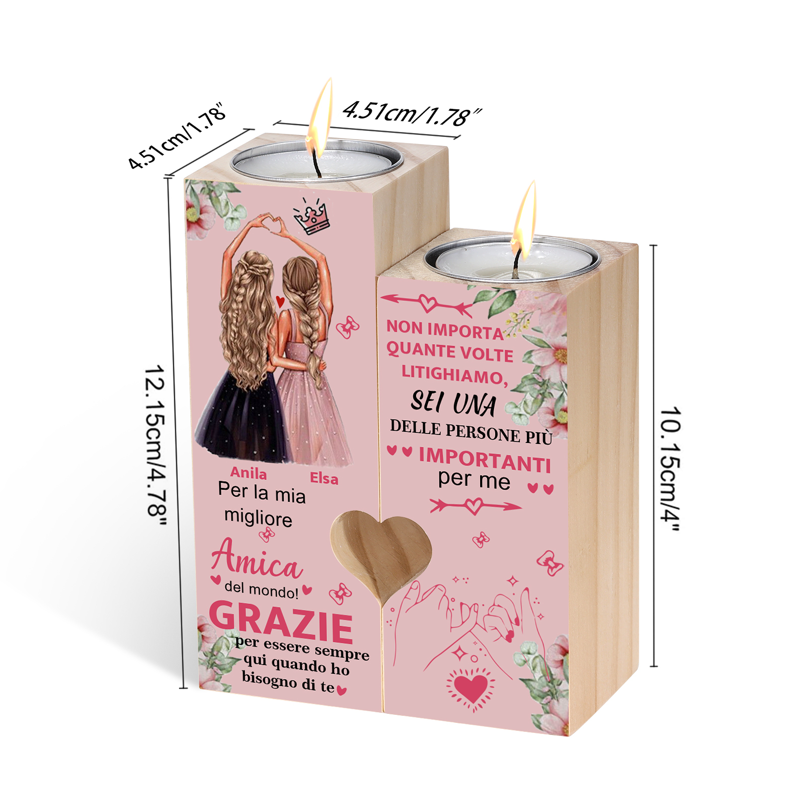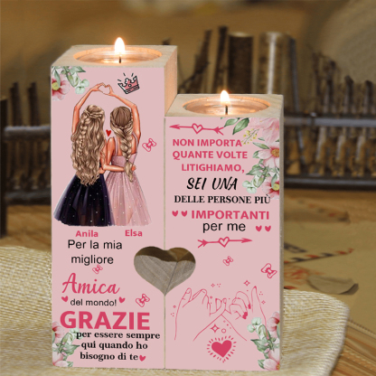 Questo squisito portacandele è un capolavoro personalizzato, progettato per essere un regalo perfetto per la vostra amata sorella e le vostre amiche. Realizzato con un'attenzione meticolosa ai dettagli, emana eleganza e sentimentalismo, rendendolo un ricordo prezioso da conservare.