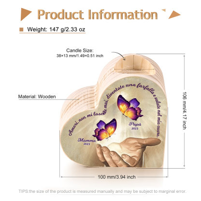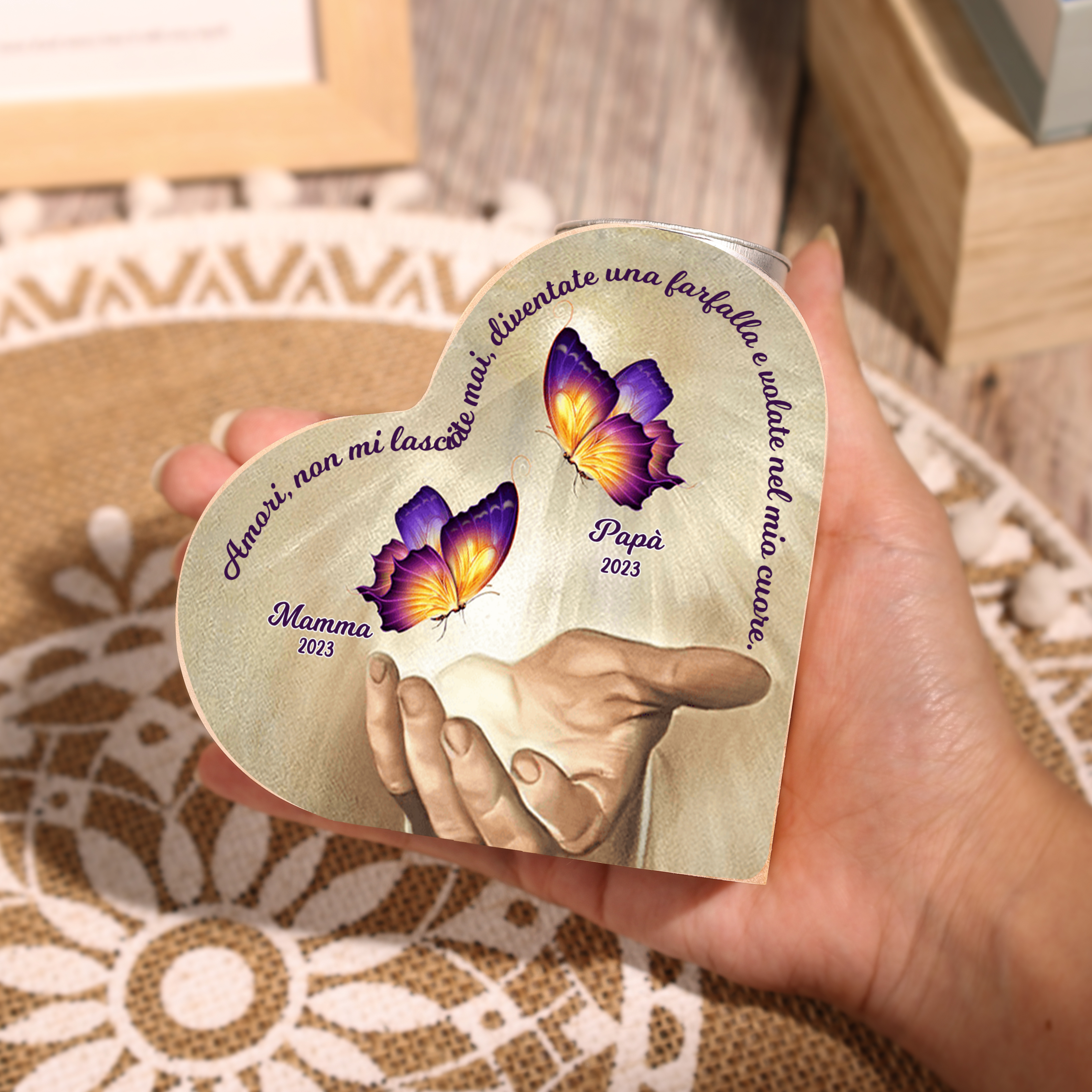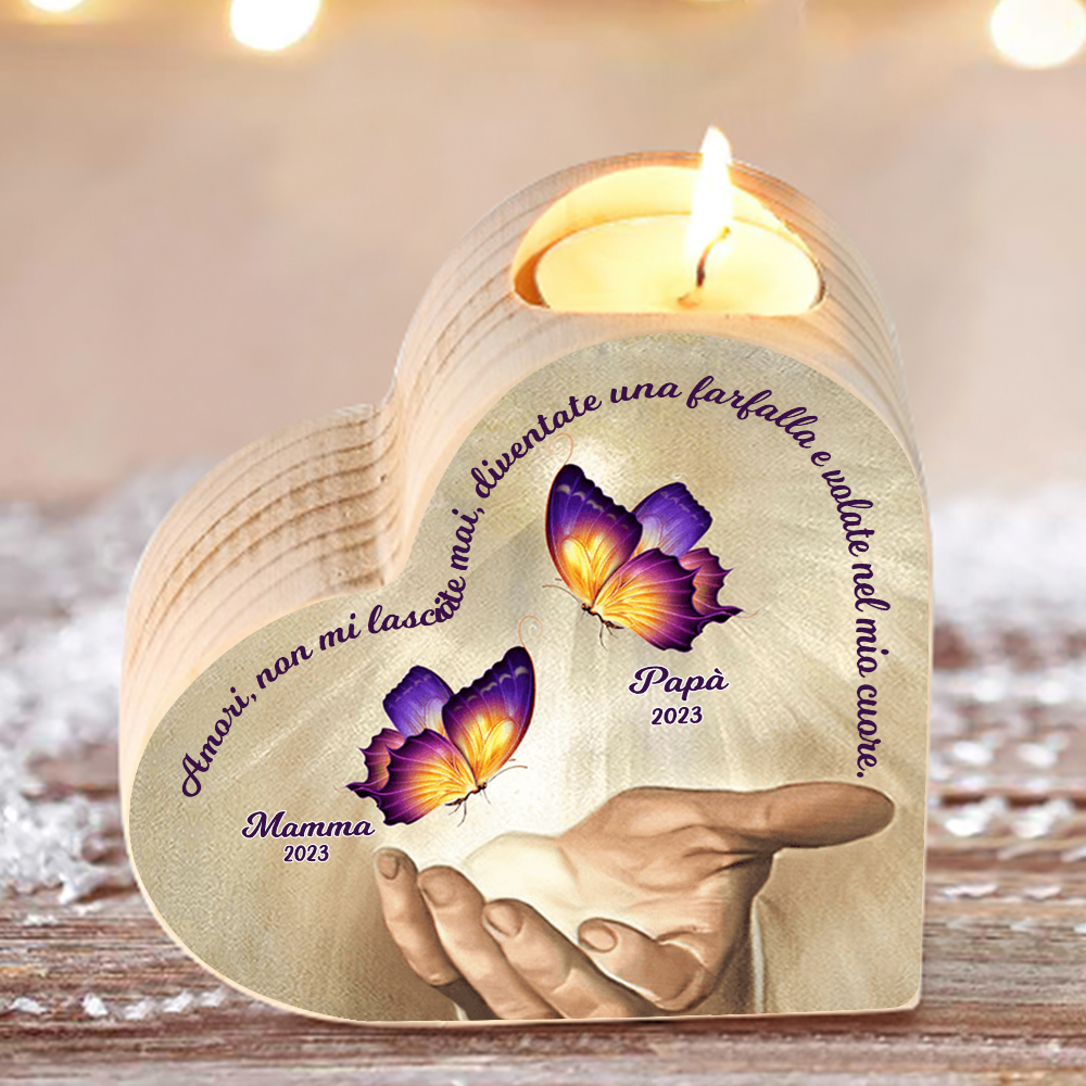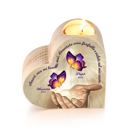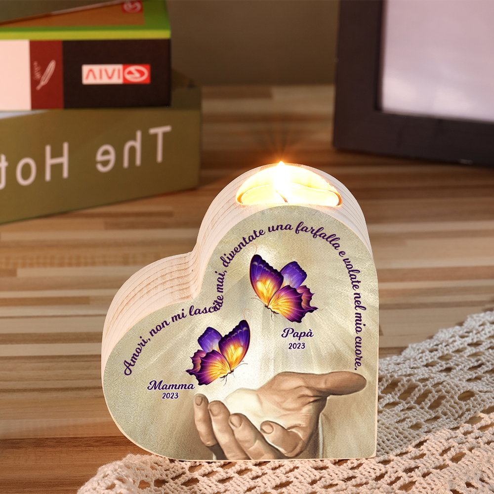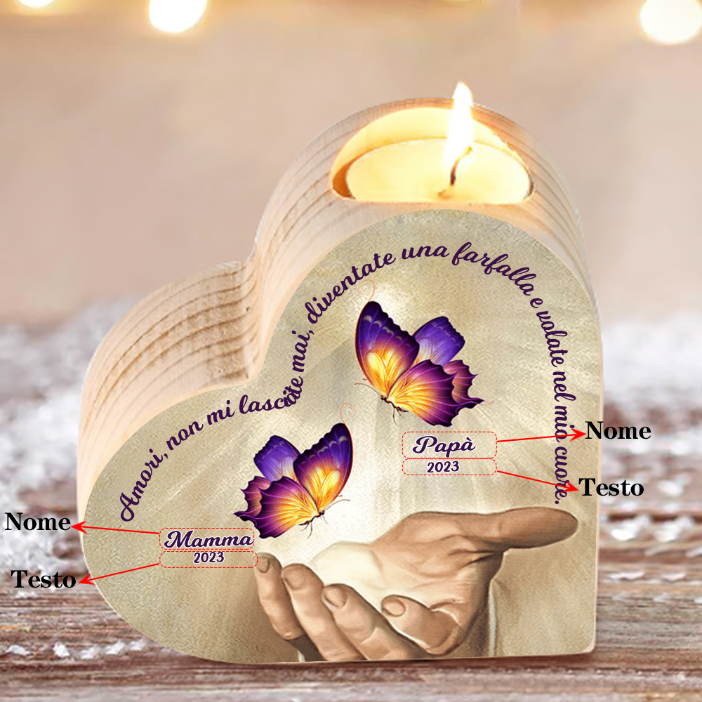 Candeliere a cuore con farfalla 2 nomi personalizzati commemorativo per defunti santi ognissanti messa famiglia