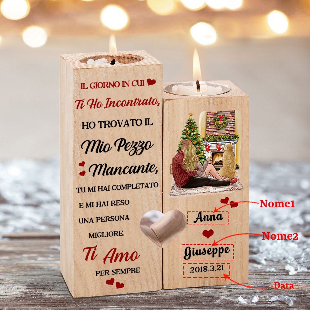 Candeliere portacandela davanti al camino per coppia 2 nomi personalizzabili