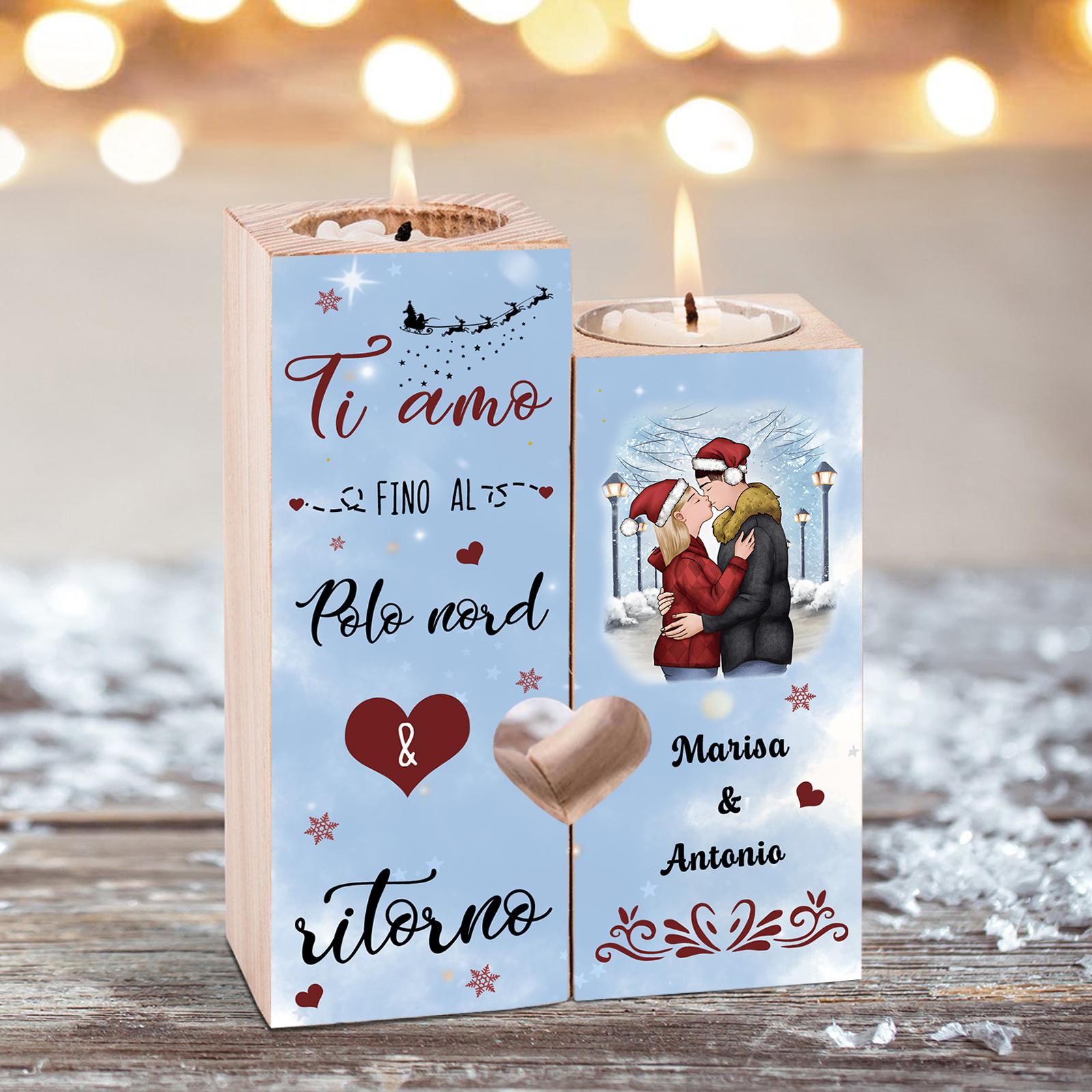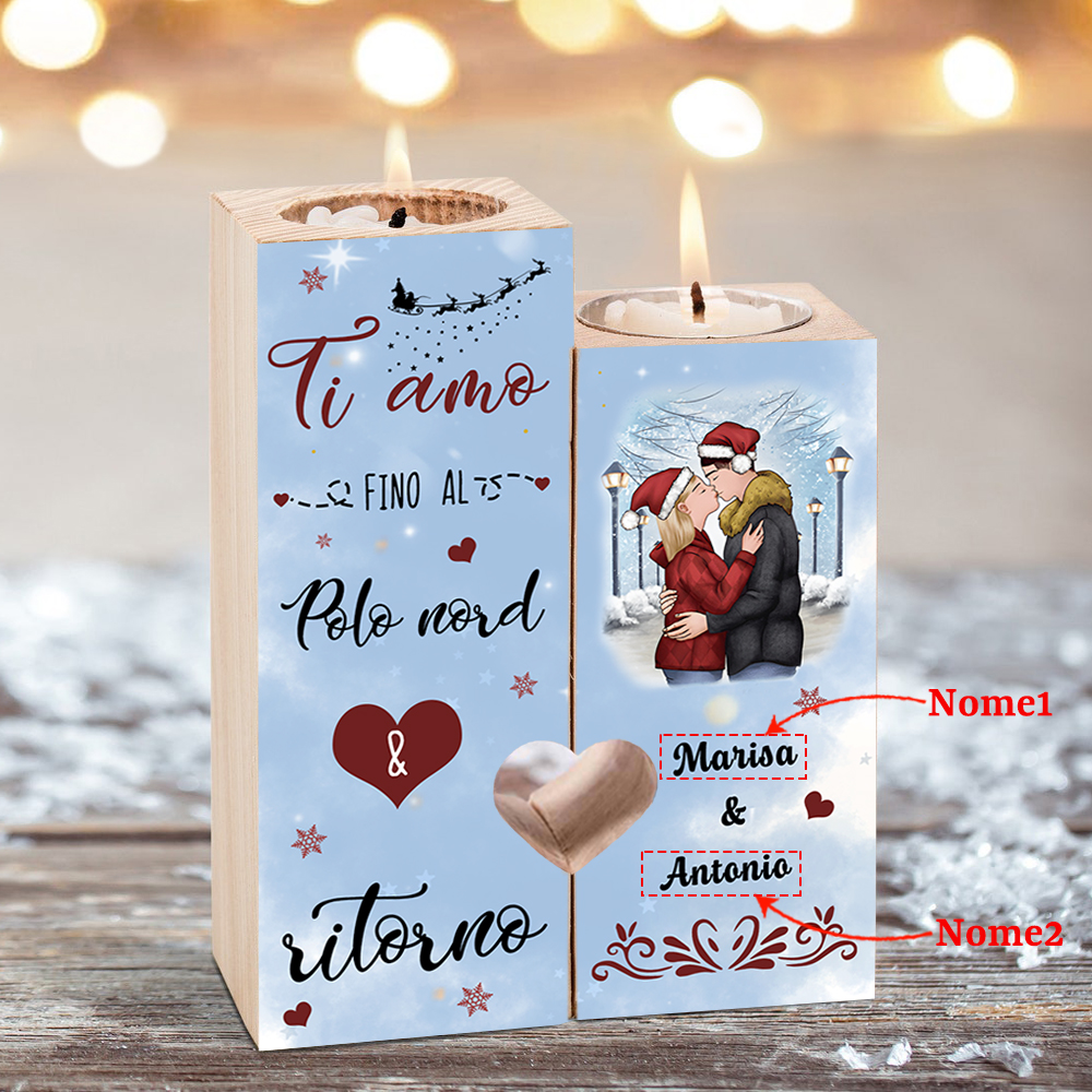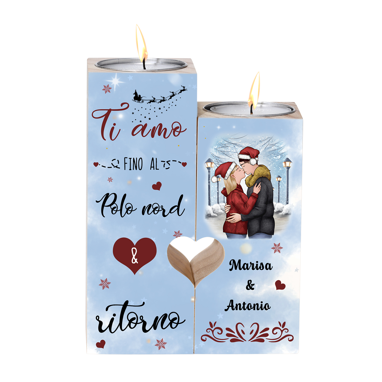 Candeliere portacandela fino al polo nord & ritorno 2 nomi personalizzabili