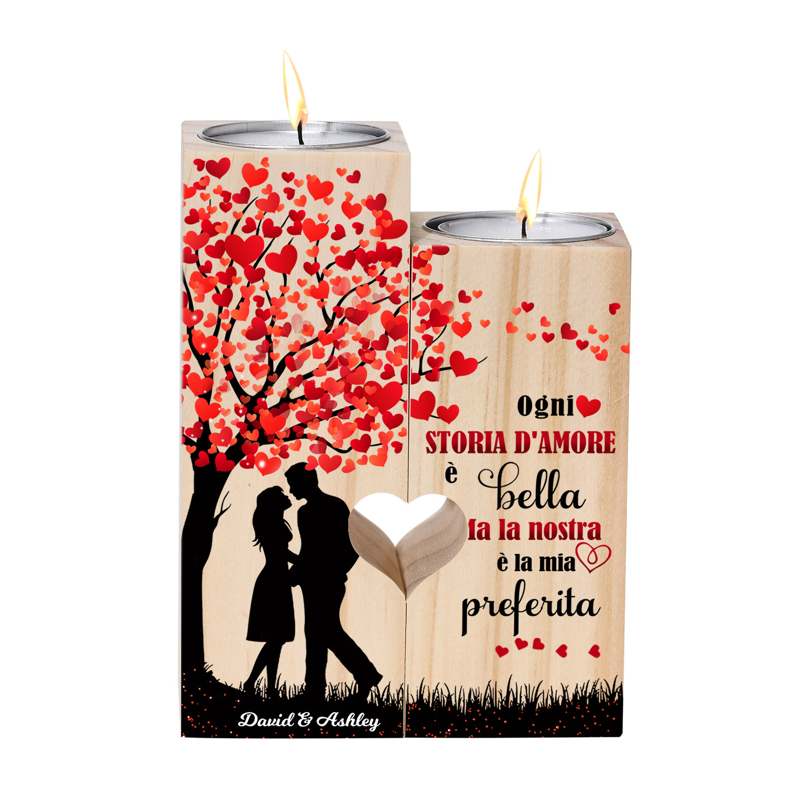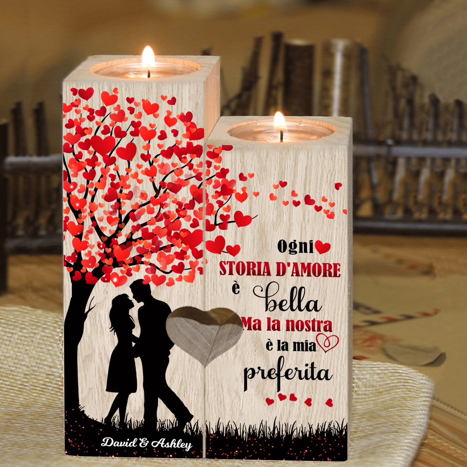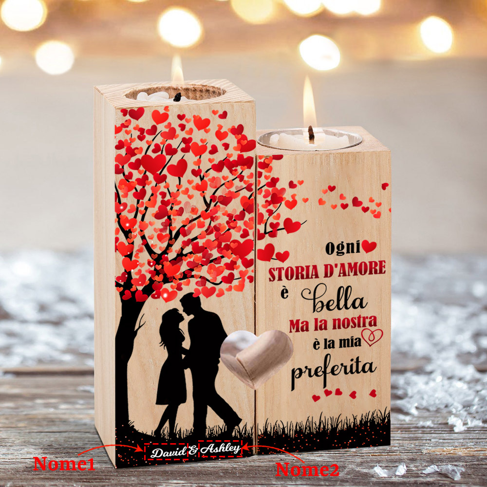 Candeliere portacandela per coppia 2 nomi personalizzati