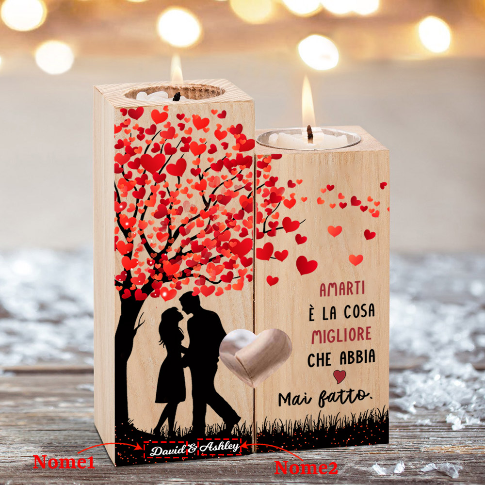 Candeliere portacandela per coppia 2 nomi personalizzati