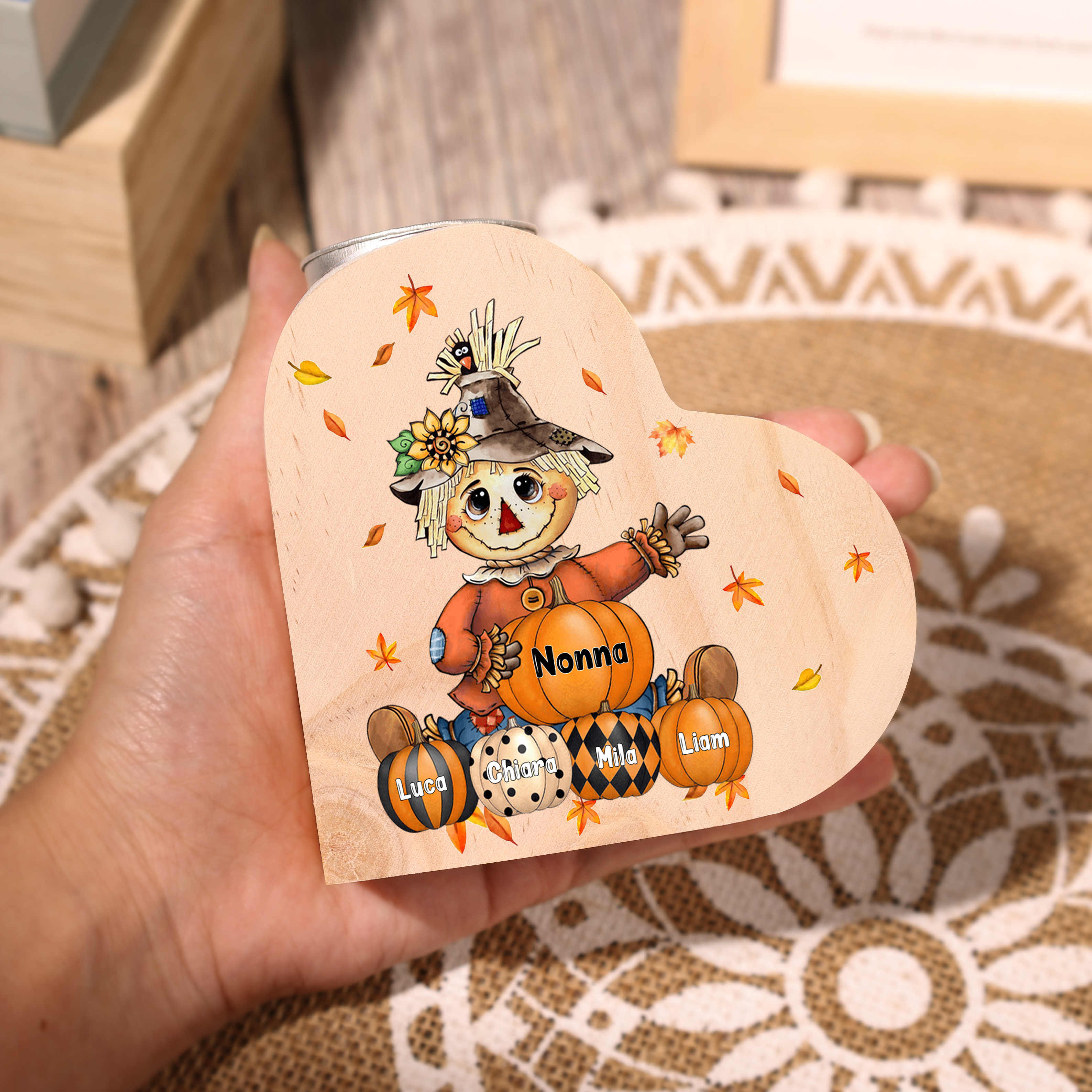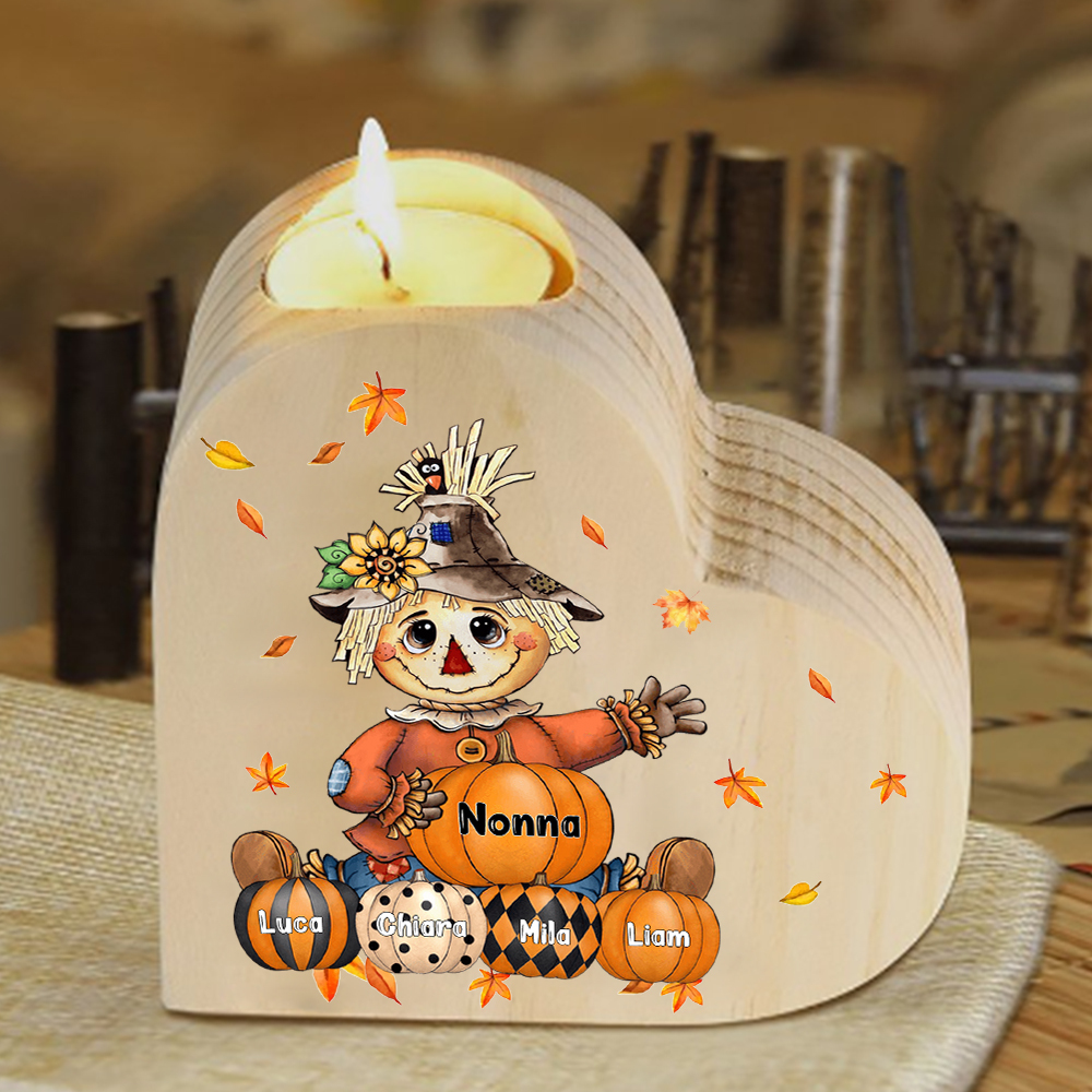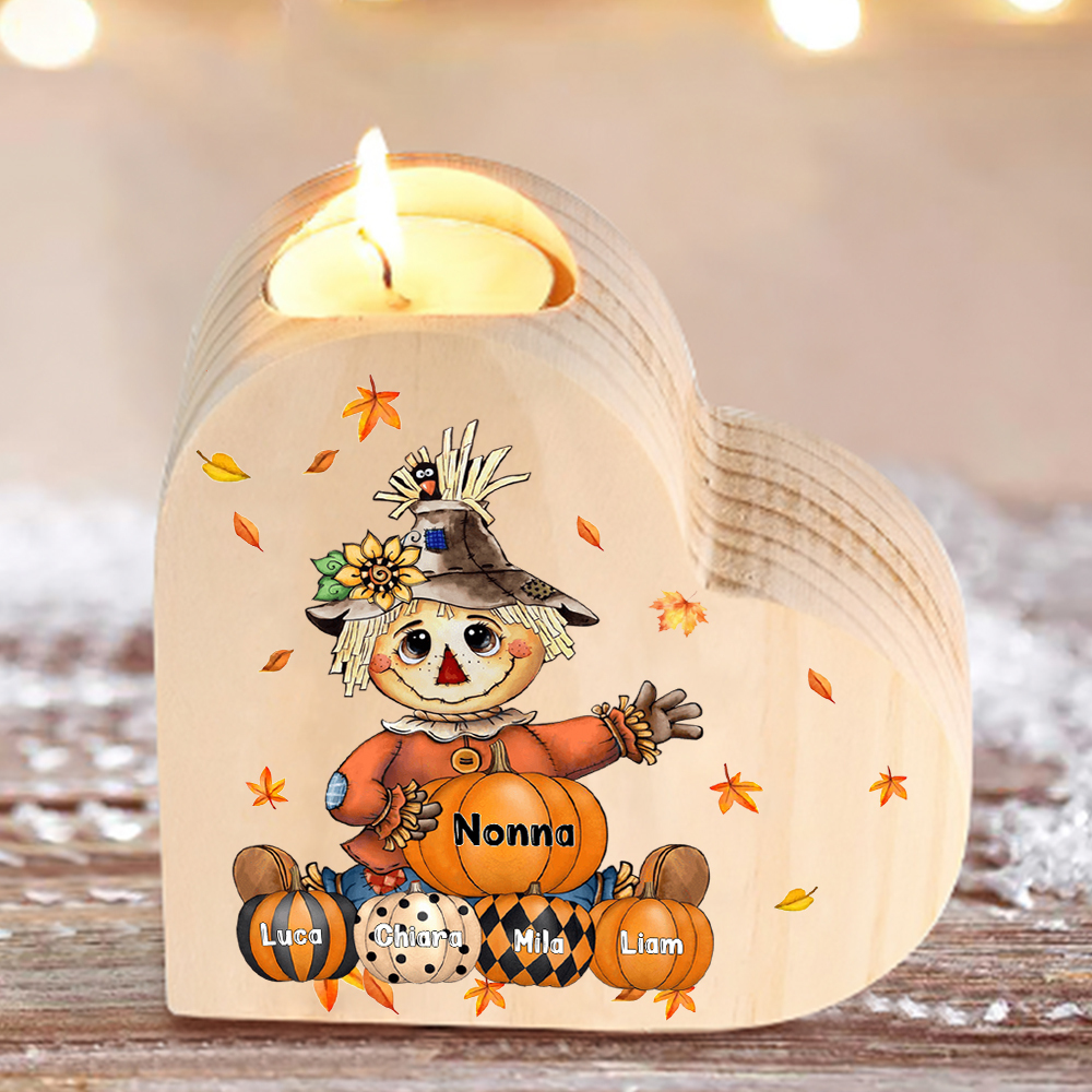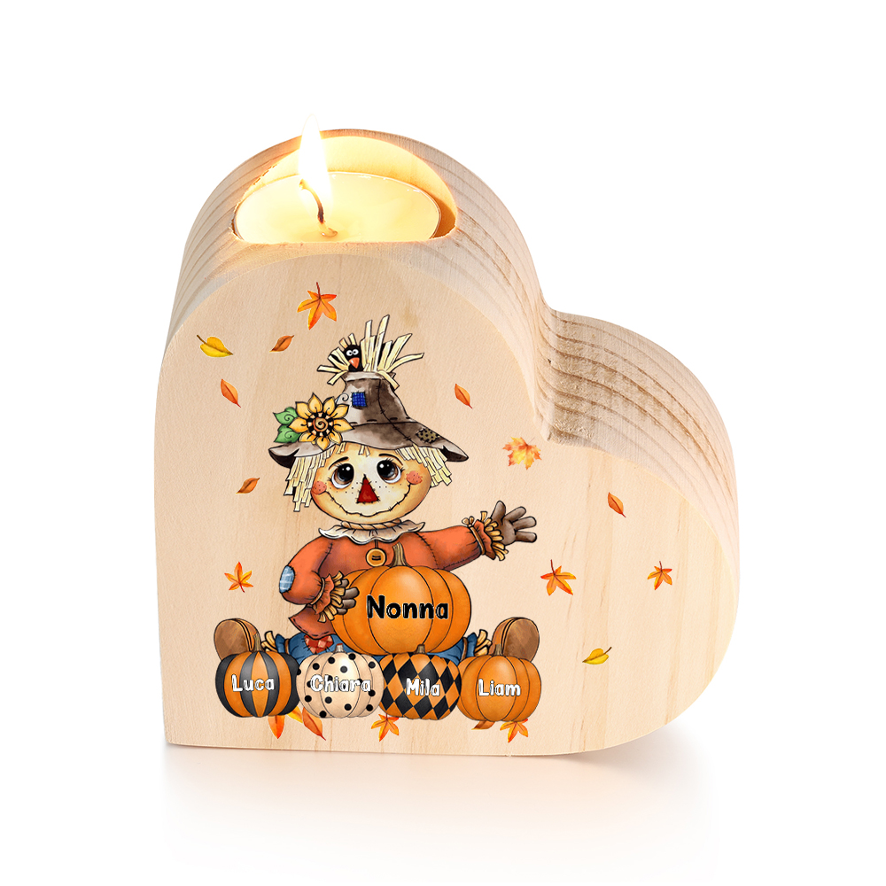 Candeliere spaventapasseri e le sue zucche regalo per nonna e famiglia 5 nomi personalizza