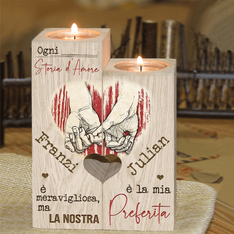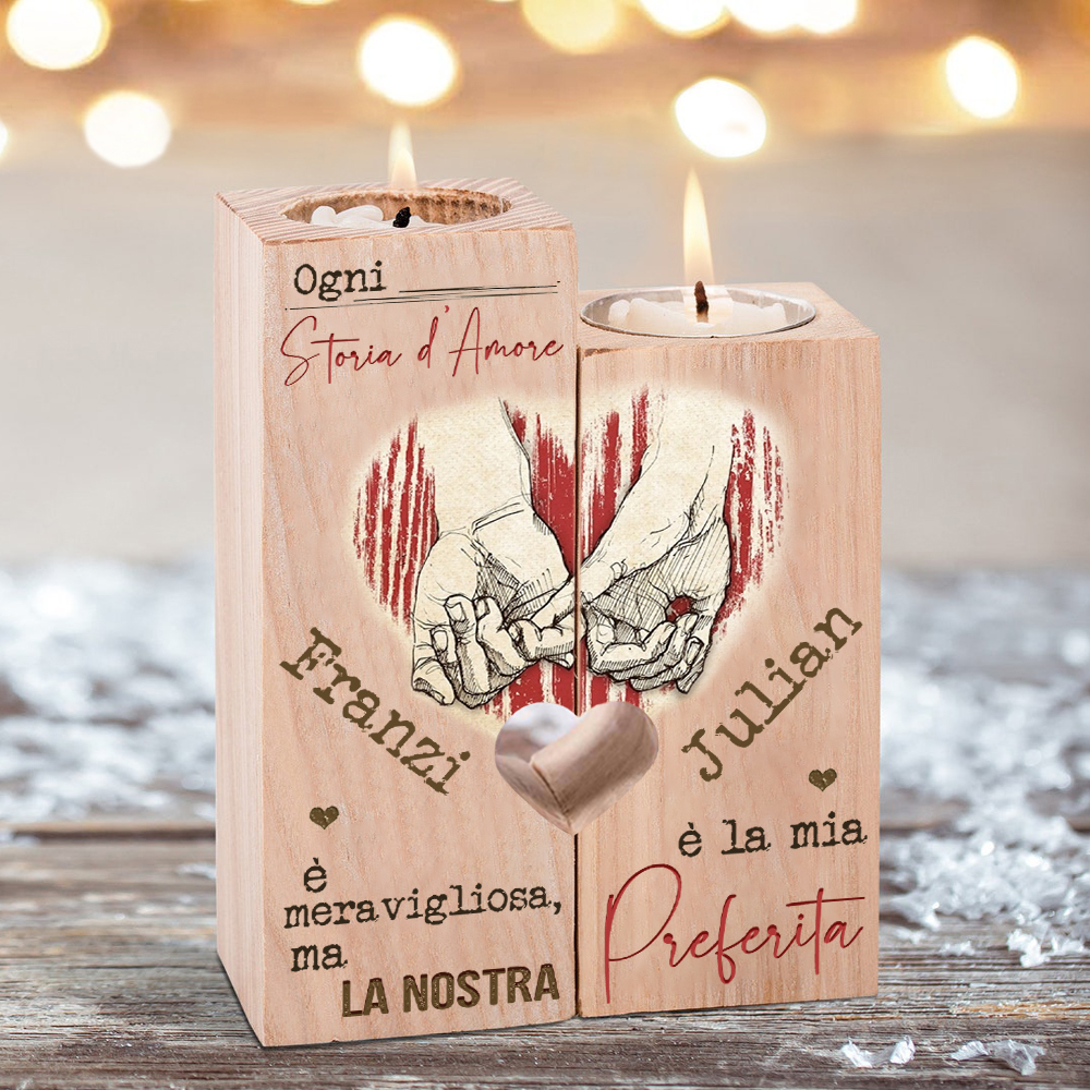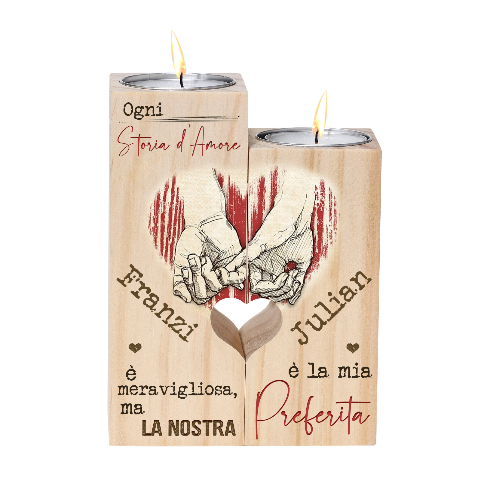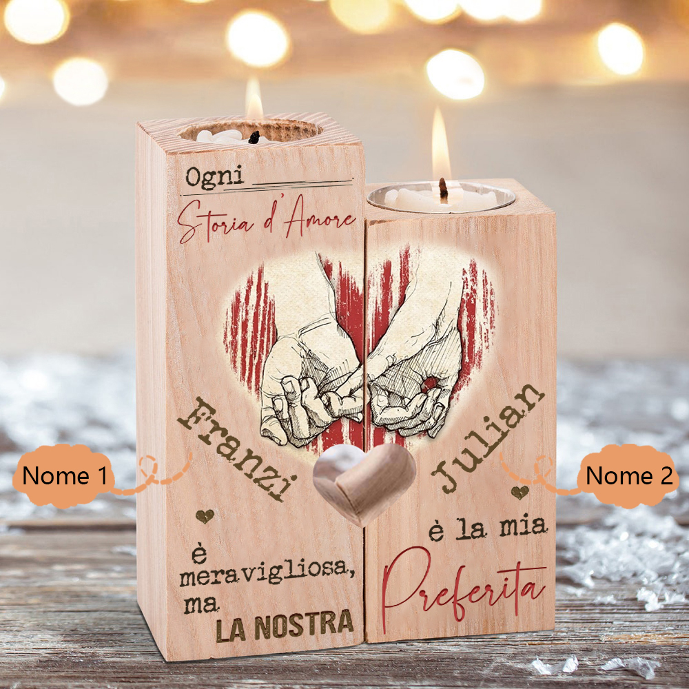 LA NOSTRA STORIA è la mia Preferita-Candelieri in legno per coppia regalo di amore 2 nomi personalizzati