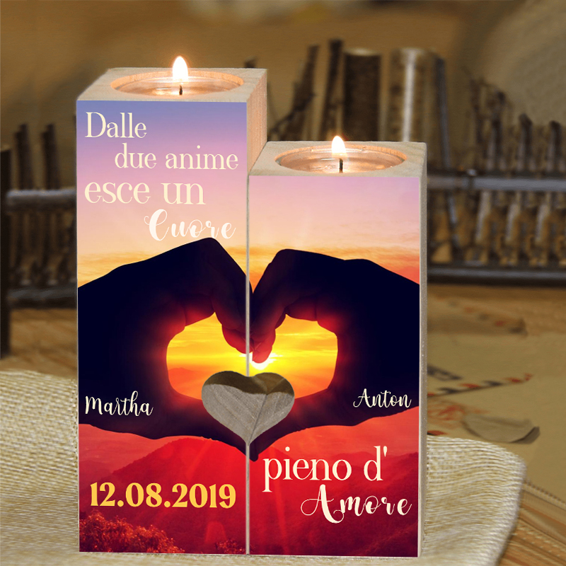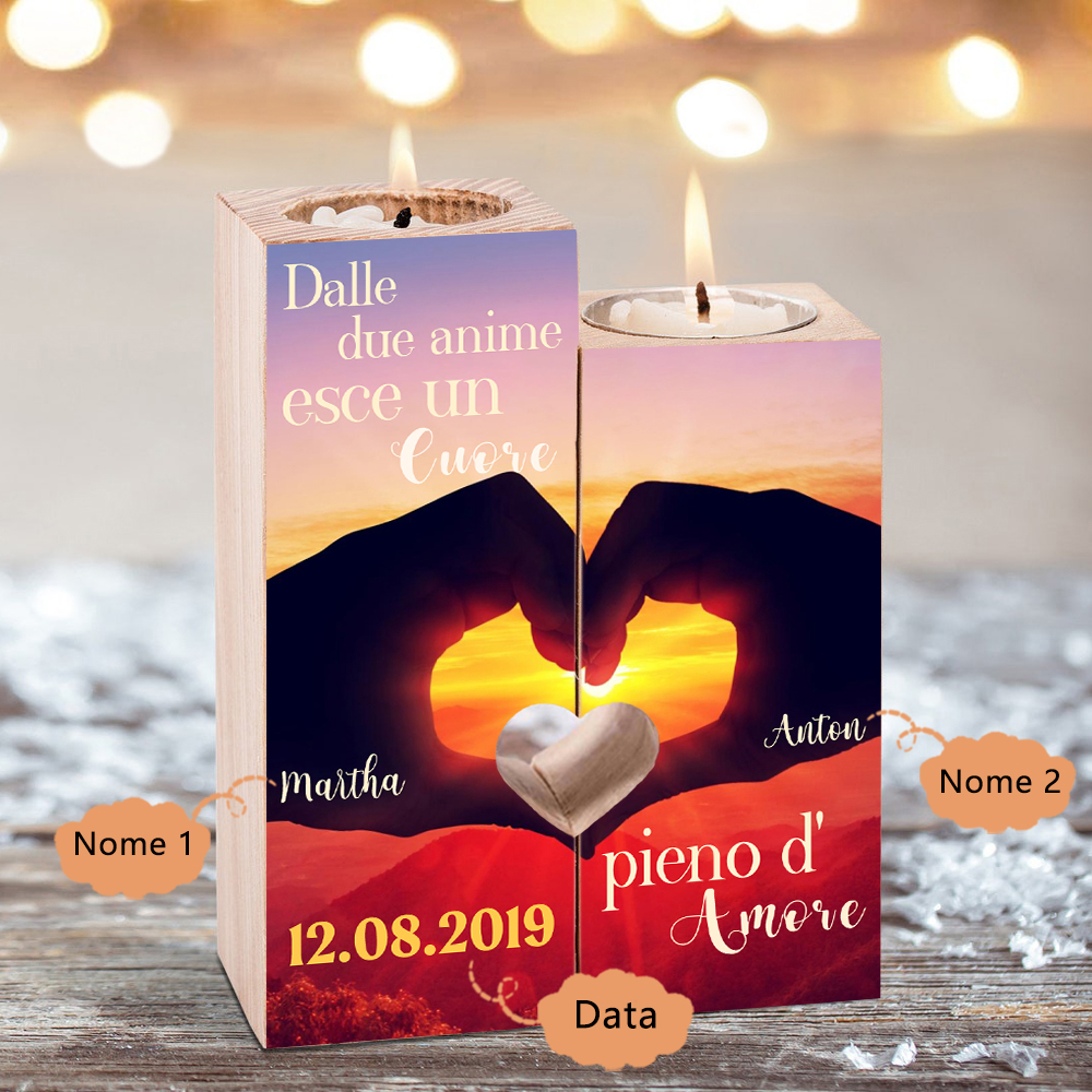 Un Cuore pieno d'Amore-Candelieri in legno per coppia regalo di amore 2 nomi personalizzati