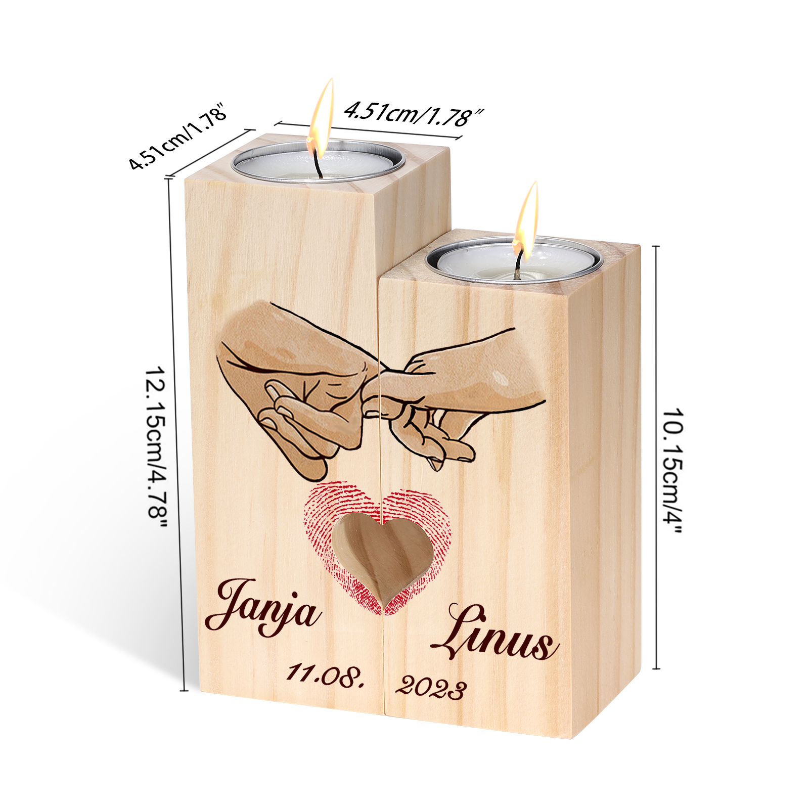 Io & Te-Candelieri in legno per coppia regalo di amore 2 nomi personalizzati