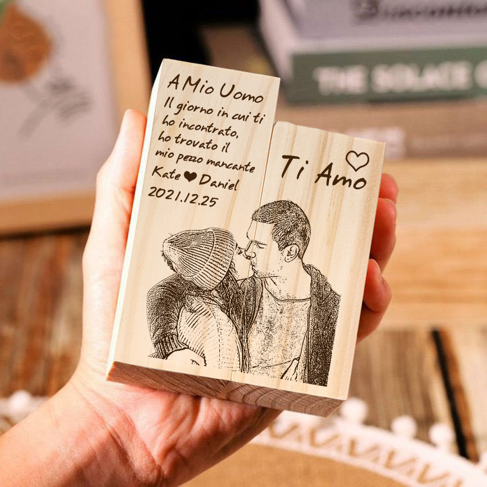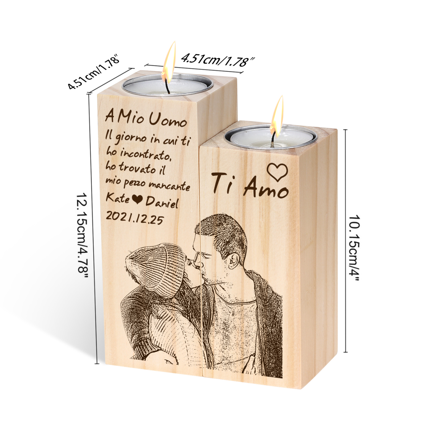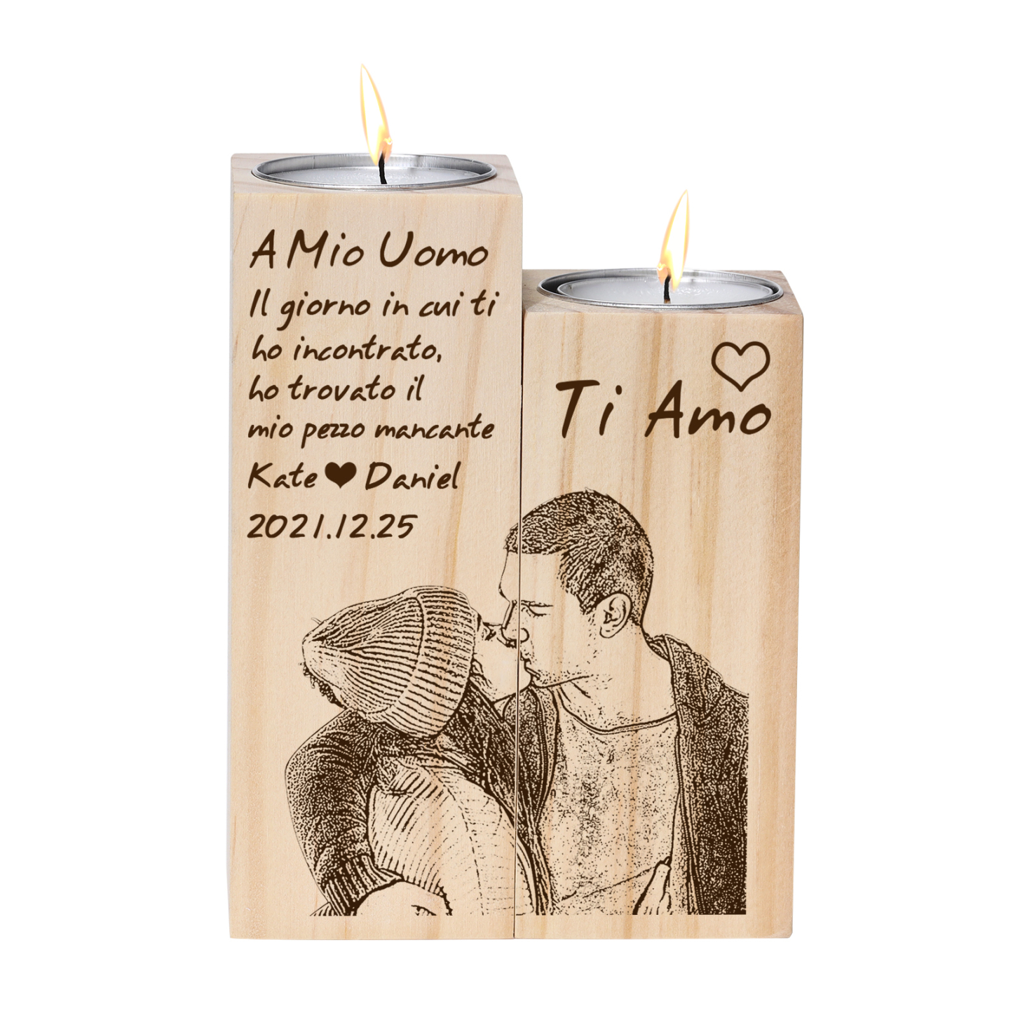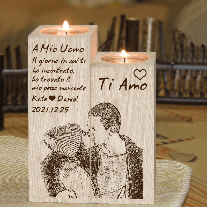 Il giorno di cui ti ho incontrato-Candelieri in legno 2 nomi 2 lettere 1 data e 1 foto personalizzati per coppia regalo di amore
