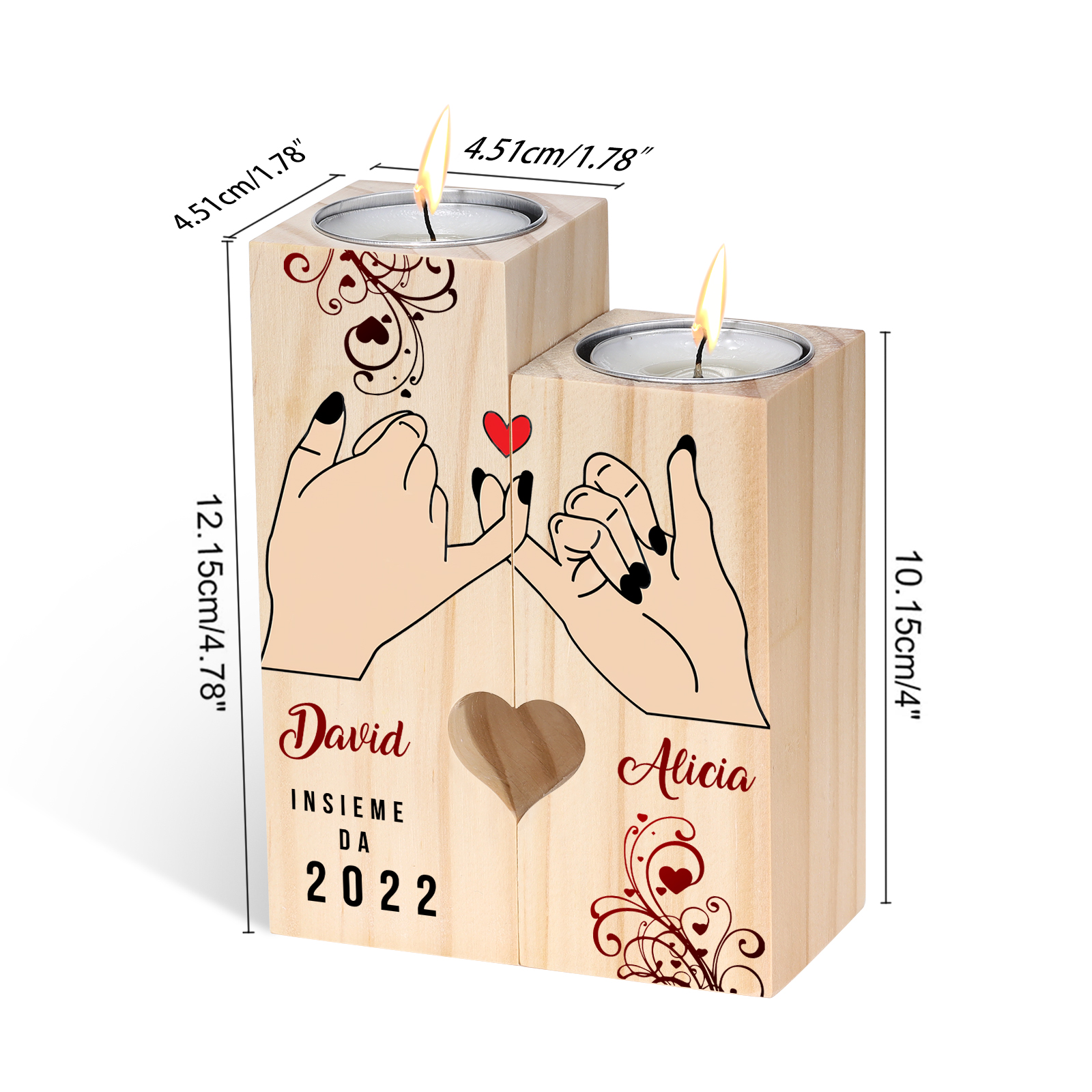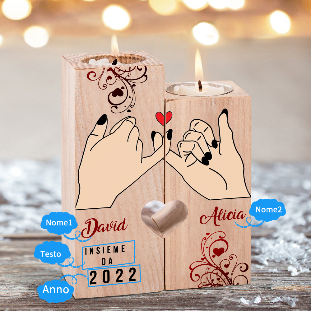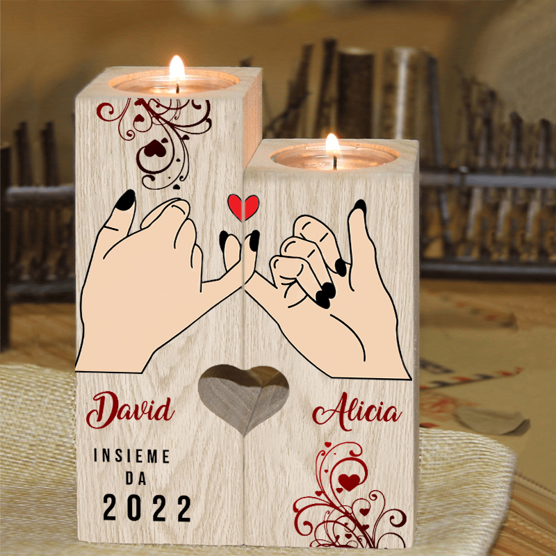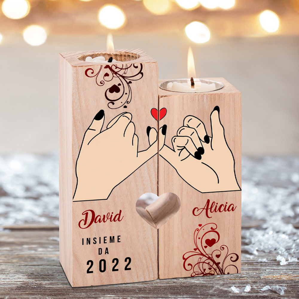Mano nella mano insieme da-Candelieri in legno 2 nomi e 1 data personalizzati cuore rosso per coppia