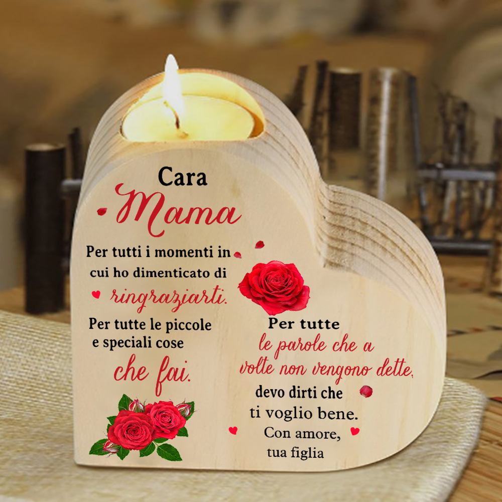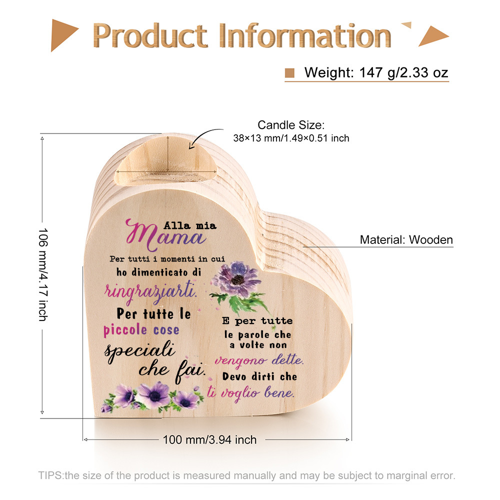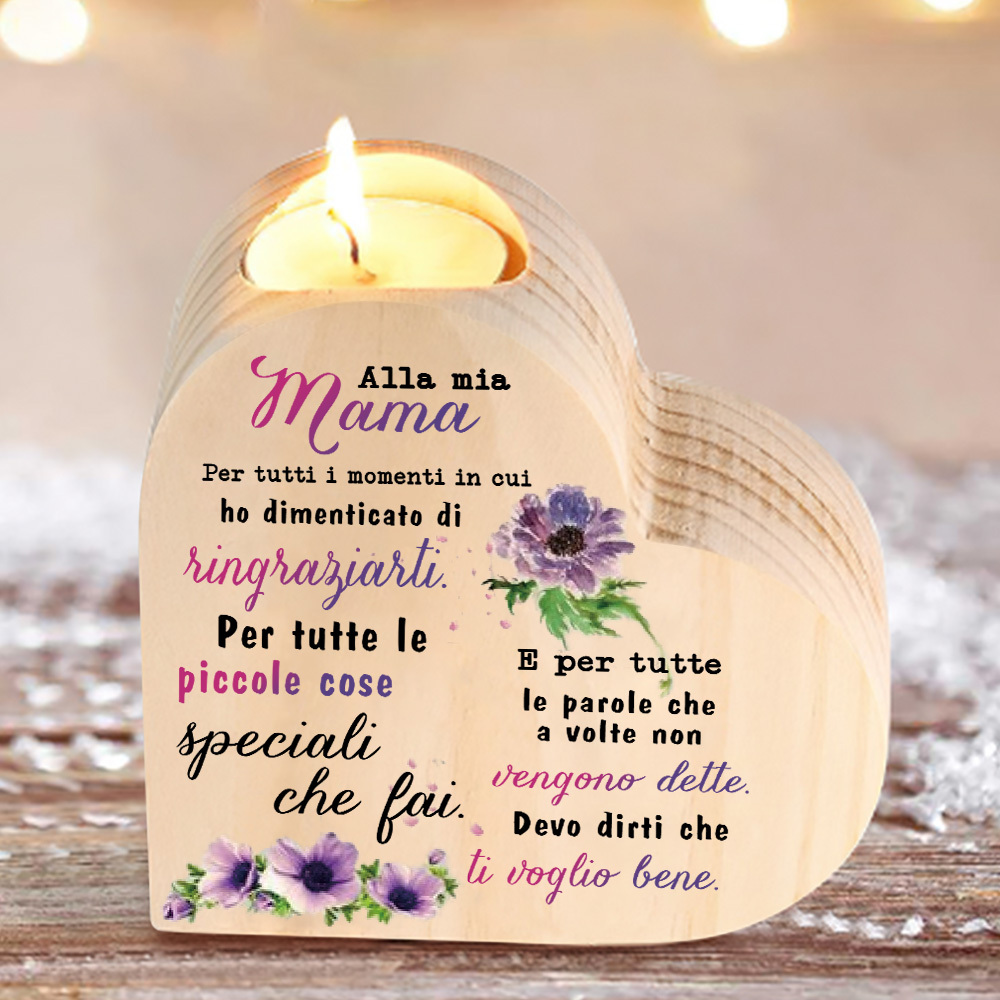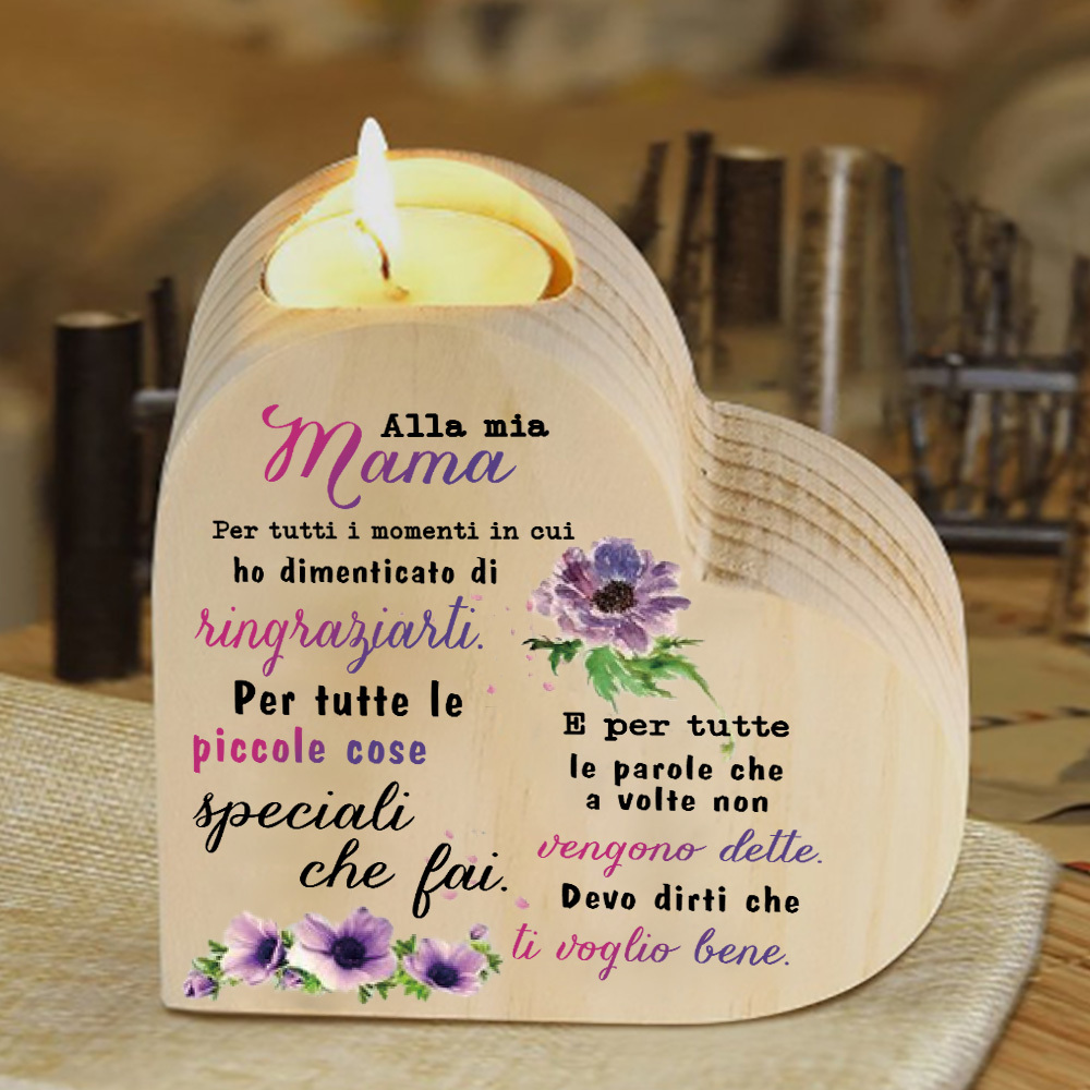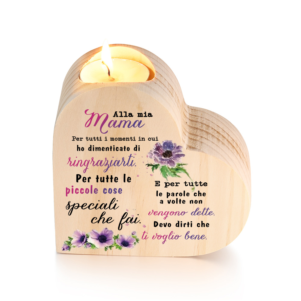 Cara mamma-Candeliere a forma di cuore con fiore violetto regalo per mamma/nonna