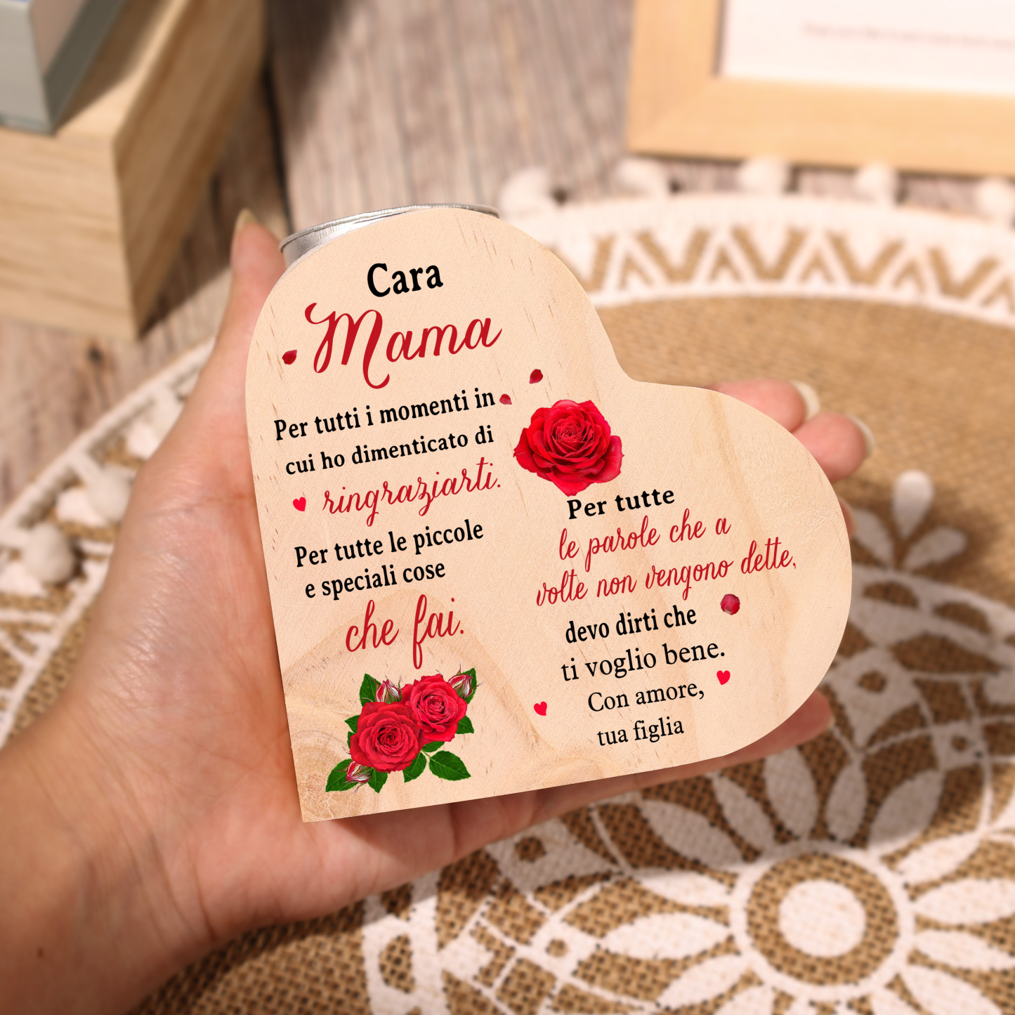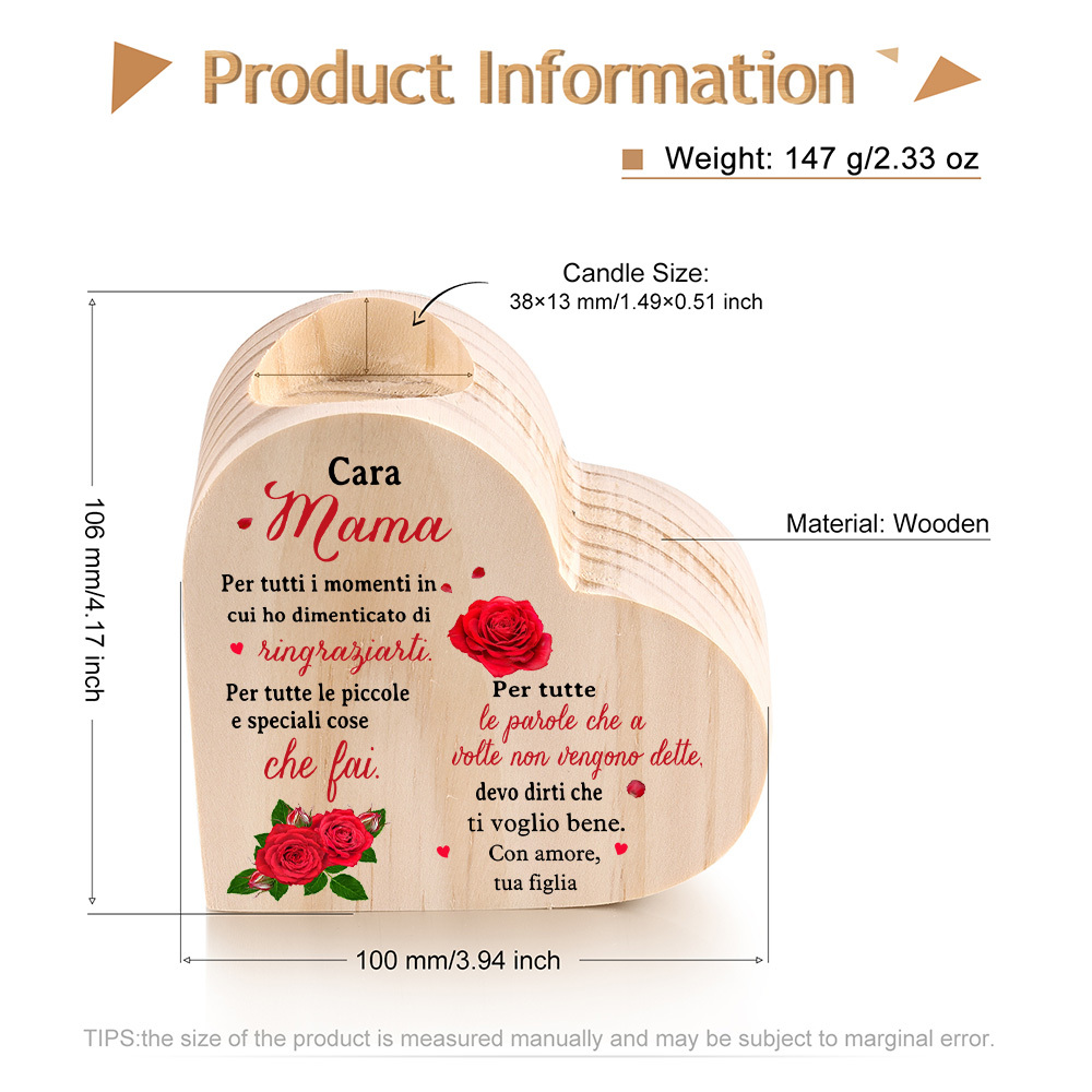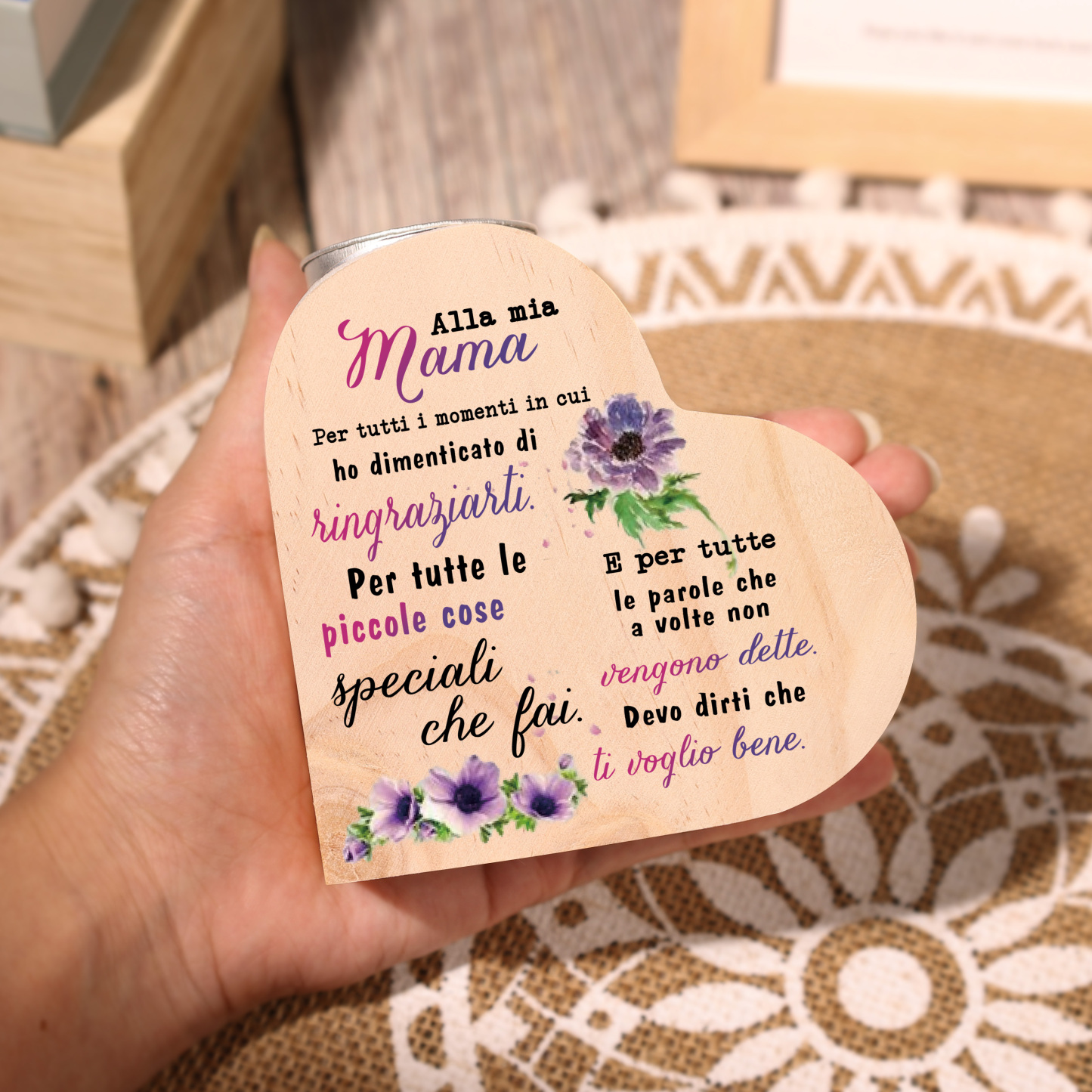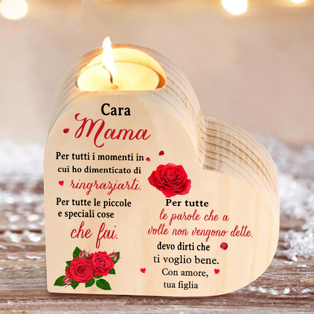 Cara mamma-Candeliere a forma di cuore con fiore violetto regalo per mamma/nonna