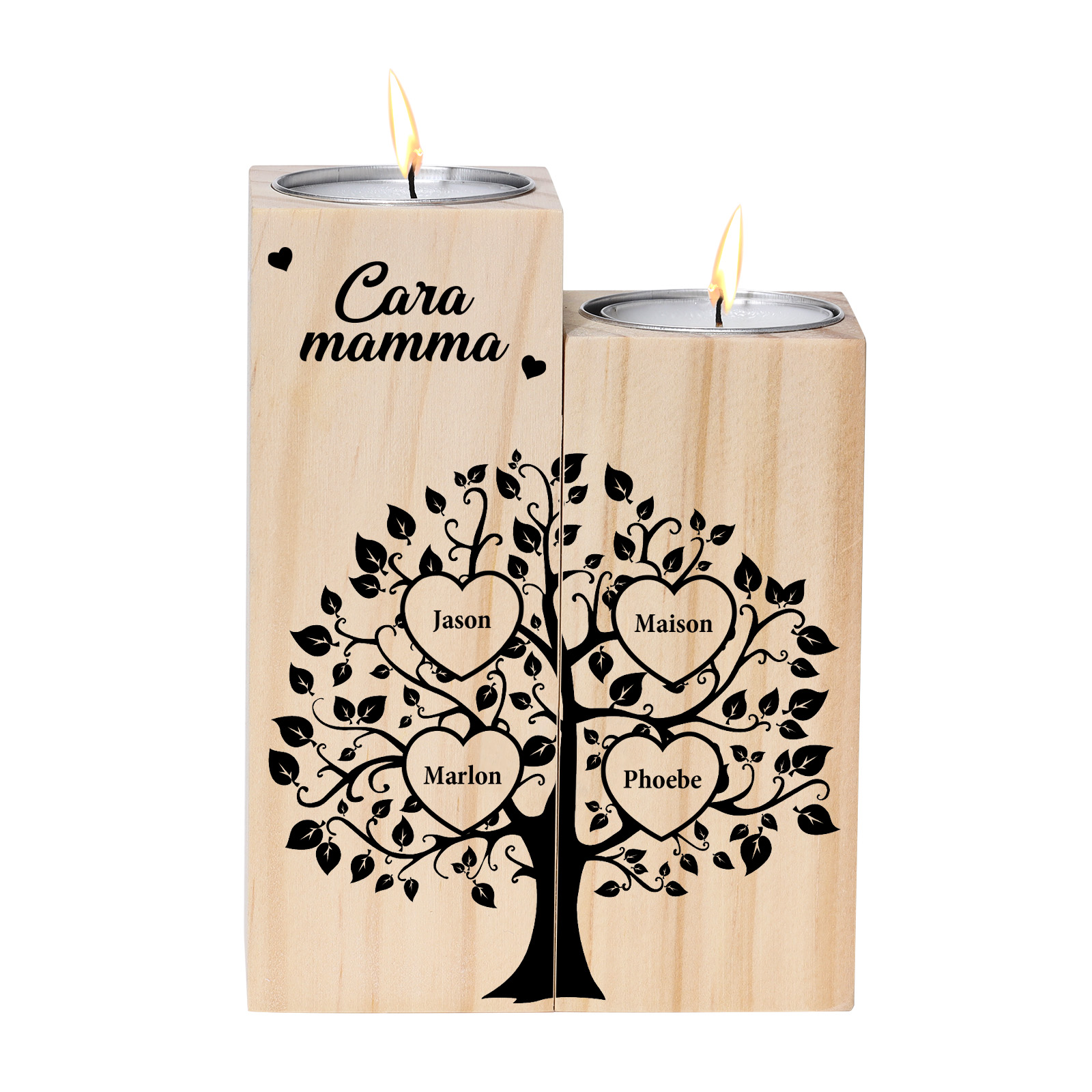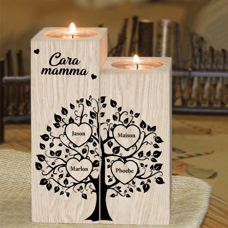 Cara mamma-Candeliere albero della vita con cuore 4 nomi personalizzati regalo per mamma