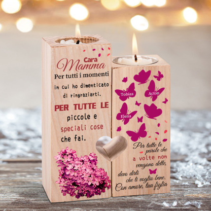 Cara mamma -Candeliere di legno con farfalla 3 nomi personalizzati regalo per mamma/nonna