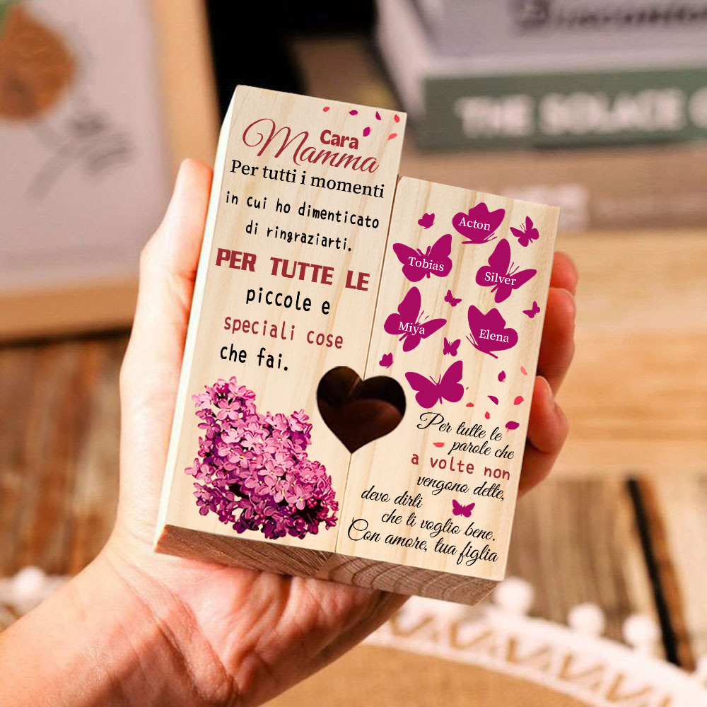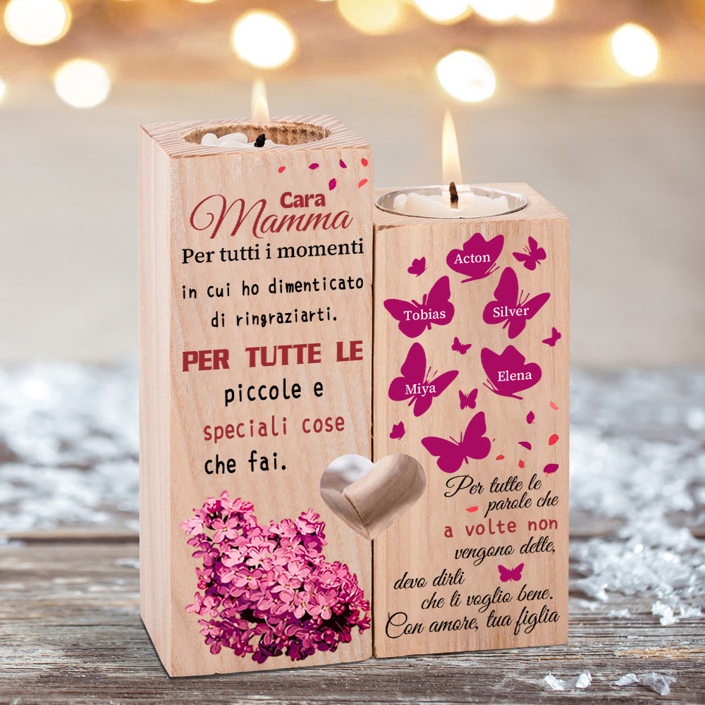 Cara mamma -Candeliere di legno con farfalla 5 nomi personalizzati regalo per mamma/nonna