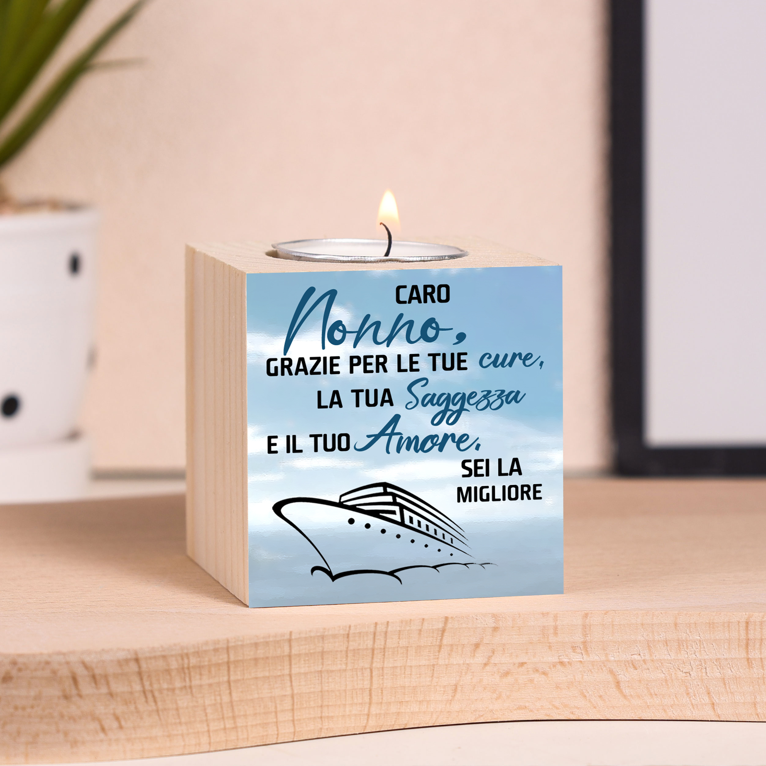 CARO NONNO GRAZIE-Candeliere per nonno e famiglia emozionato festa dei nonni