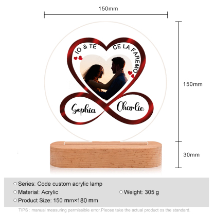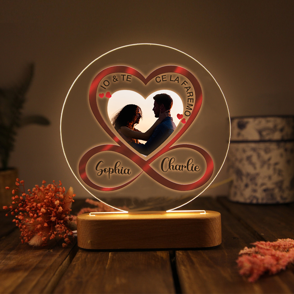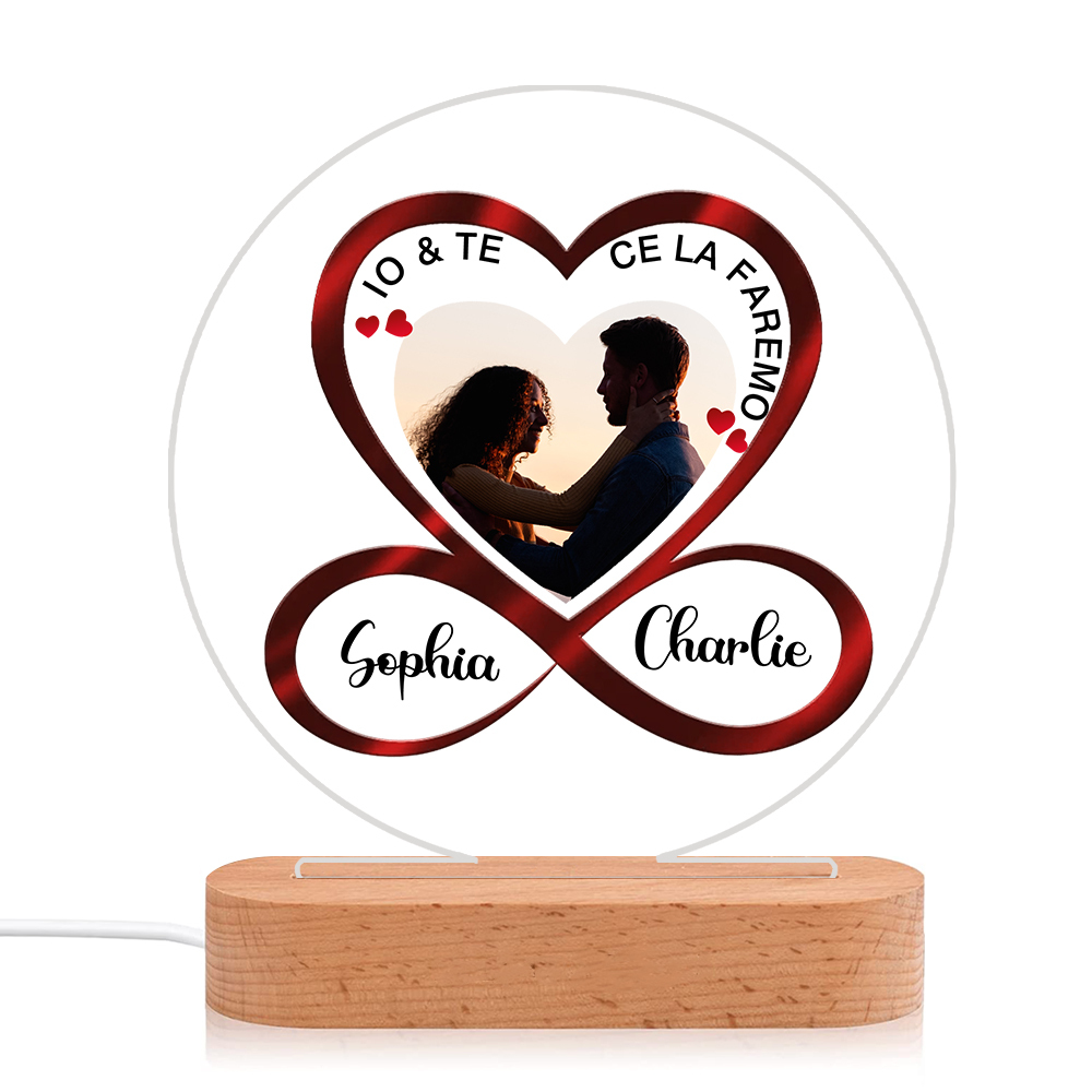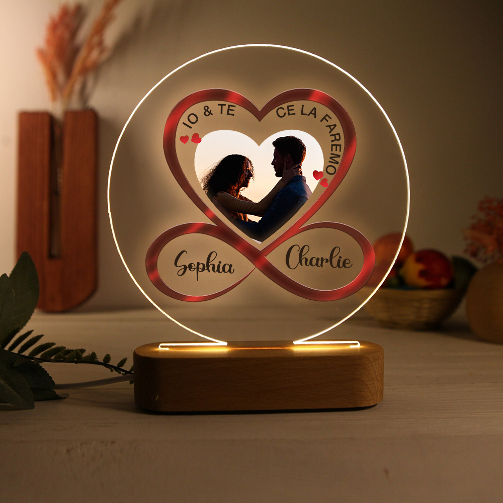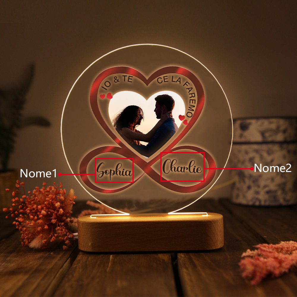 CE LA FAREMO Lampada anelli per coppia con foto a cuore personalizzabile