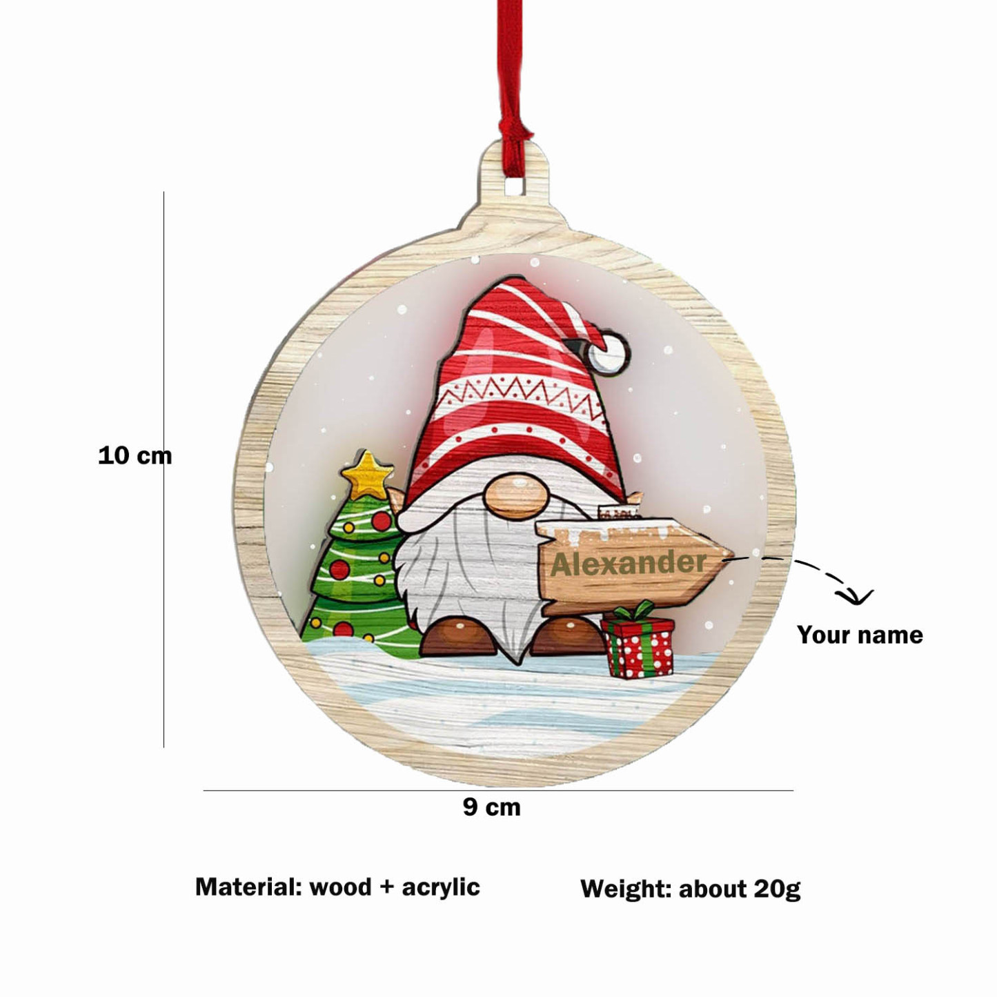 Ciondolo per albero di Natale piccolo gnomo 1 nome personalizzabile