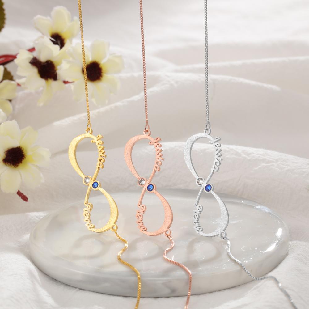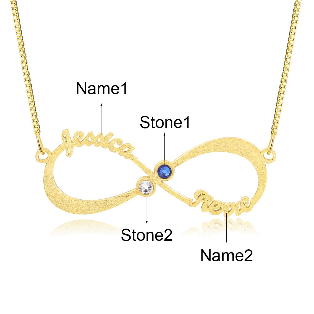 Collana 2 nomi con ciondolo 2 pietre di nascita per le donne festa della mamma regalo di Capodanno