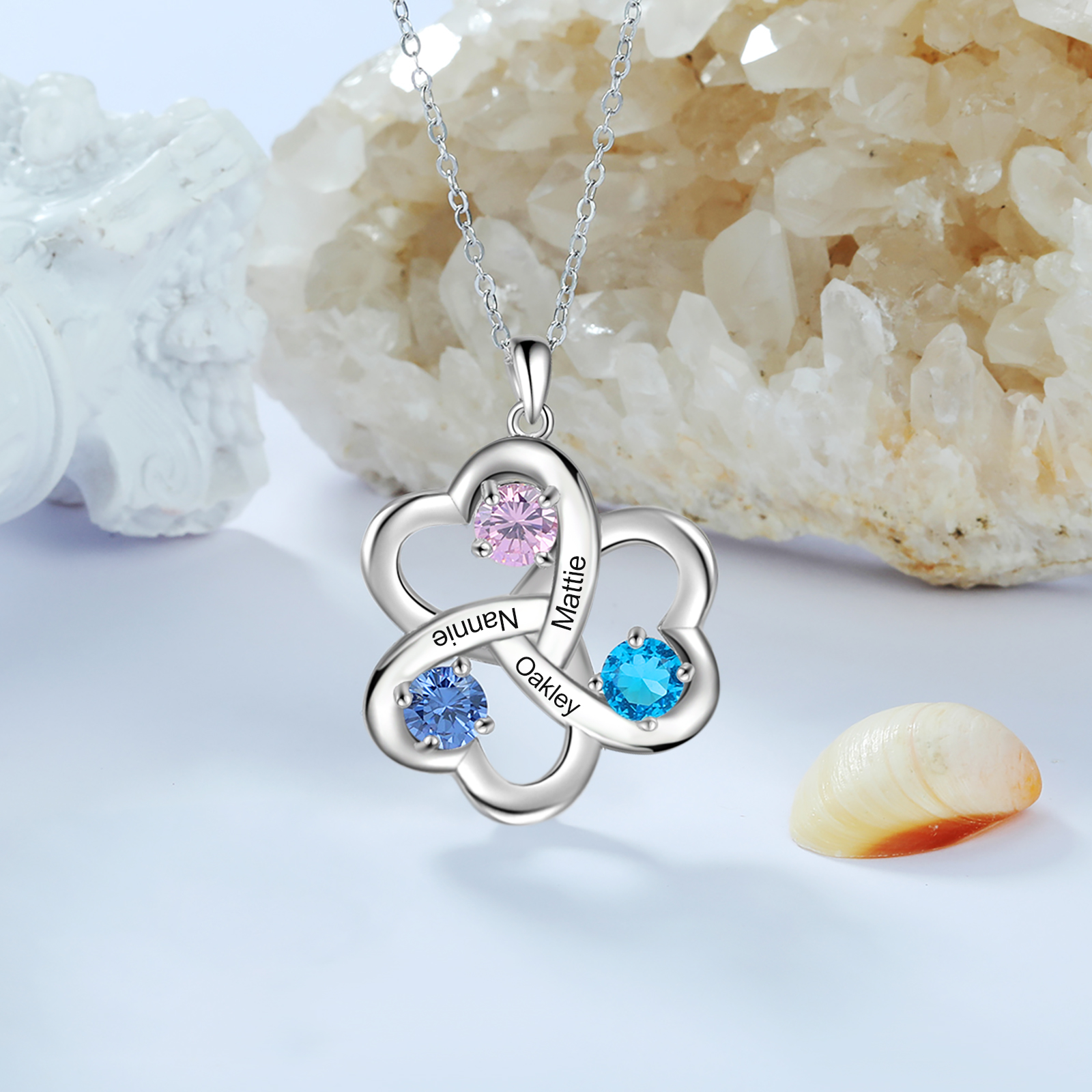 Collana 3 Cuori con 3 pietre di nascita