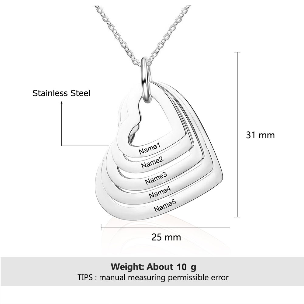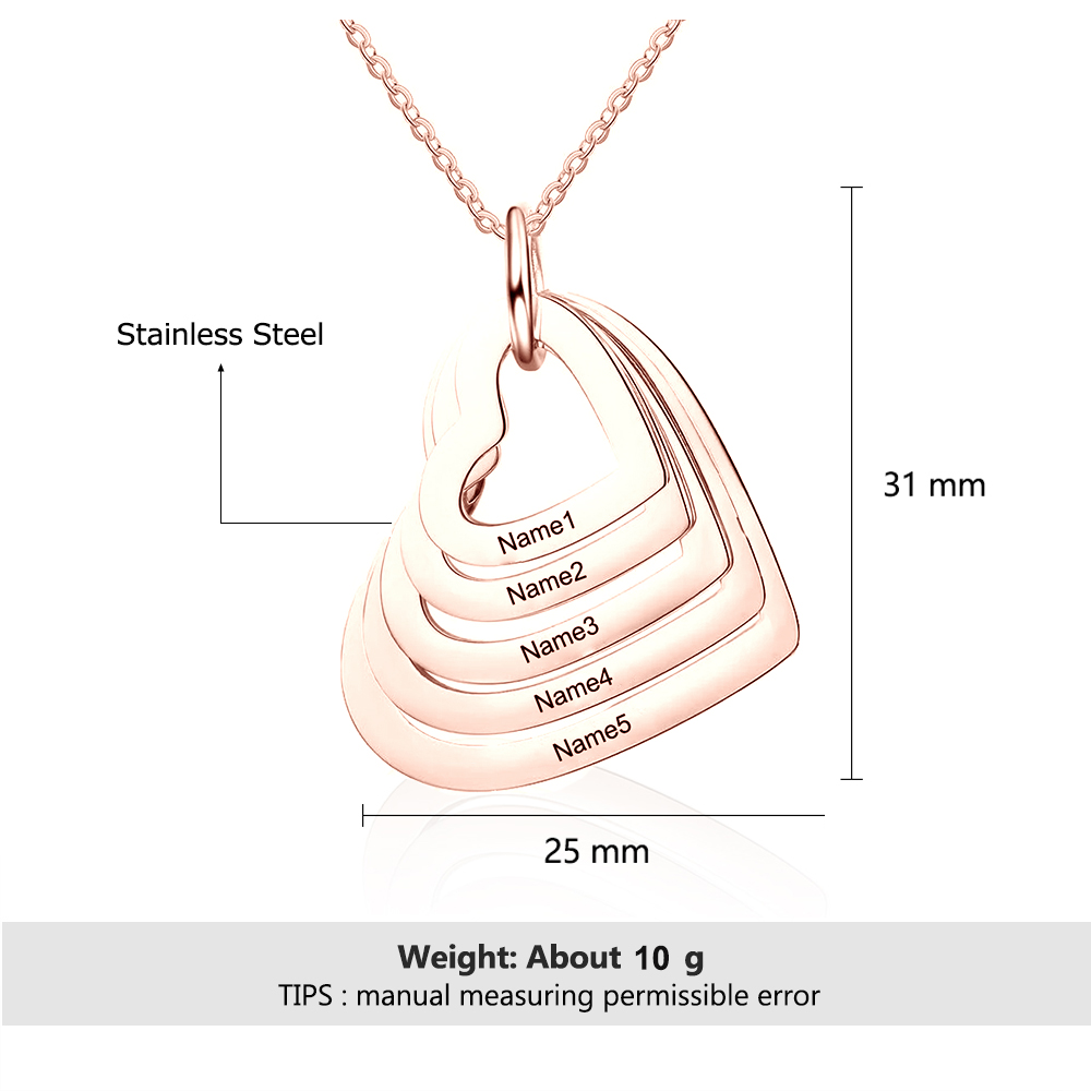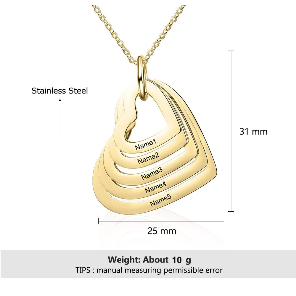 Collana 5 nomi personalizzati con ciondolo cuore