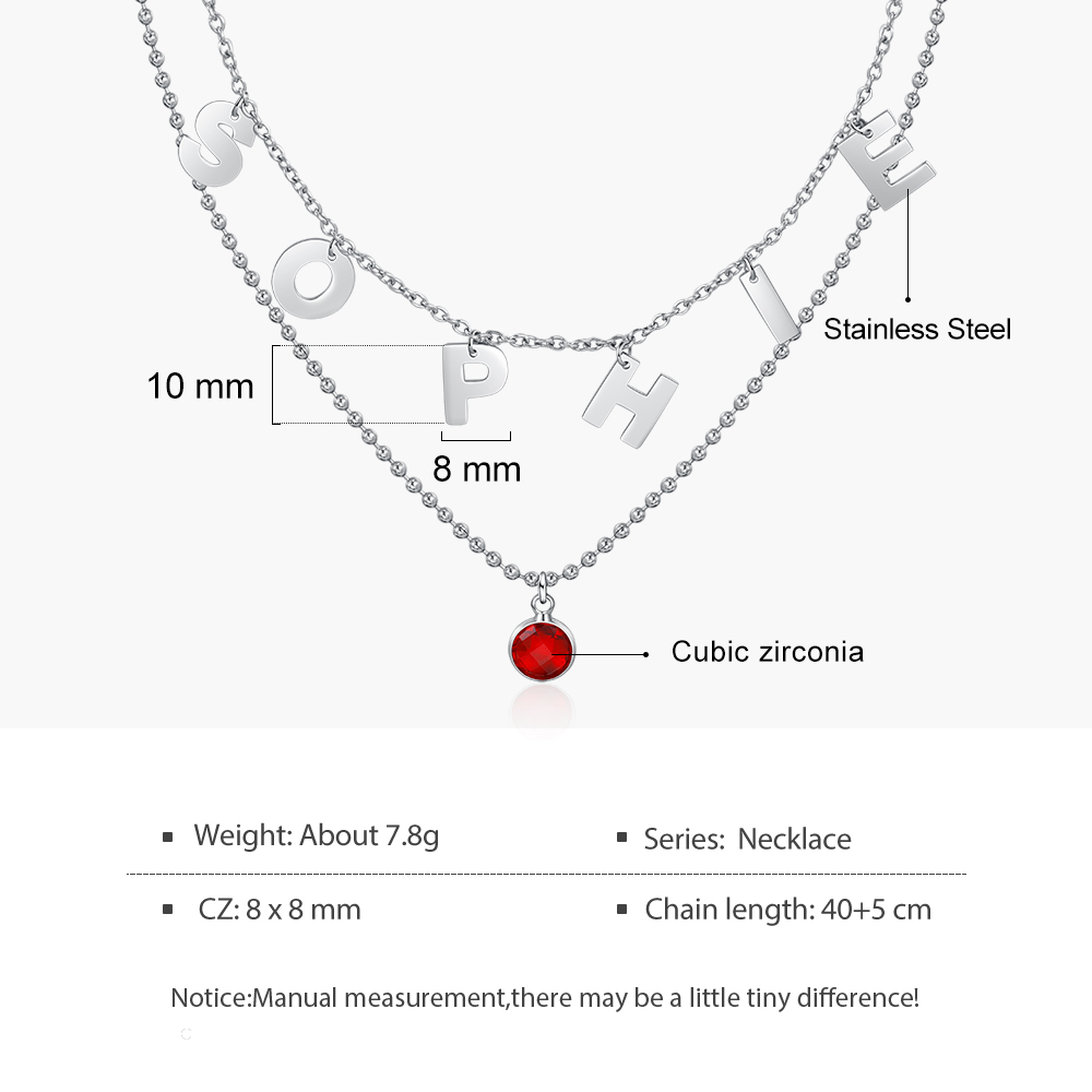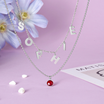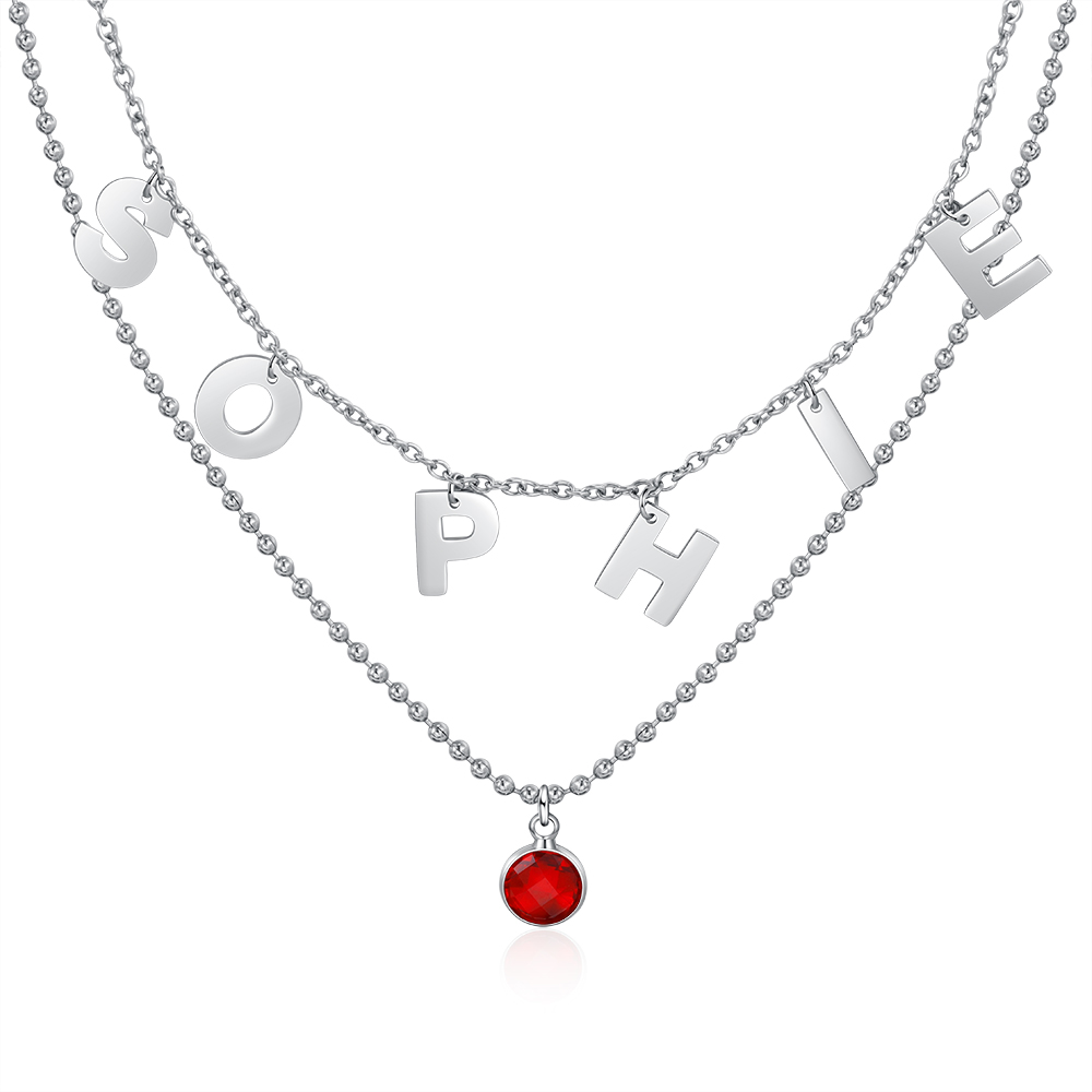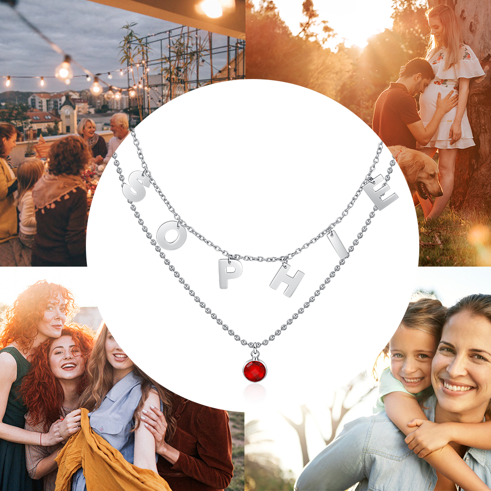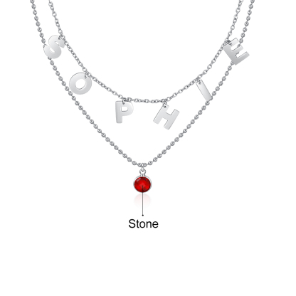 Collana con lettere stilizzate personalizzabile e gemma del mese regalo compleanno per donna