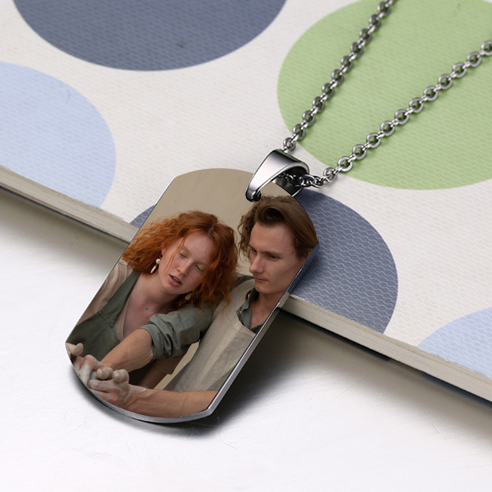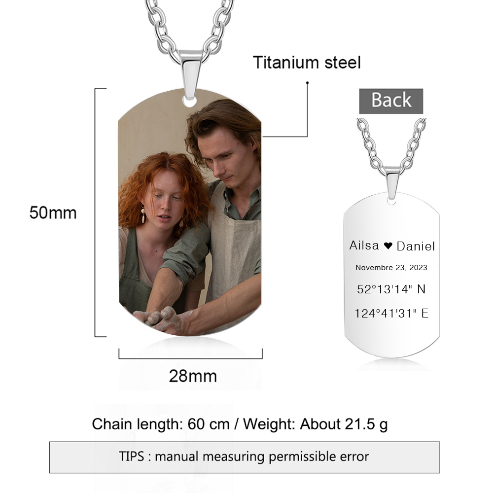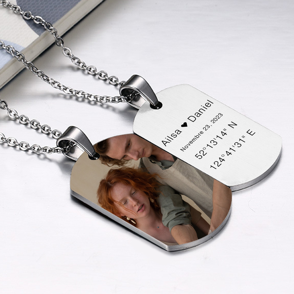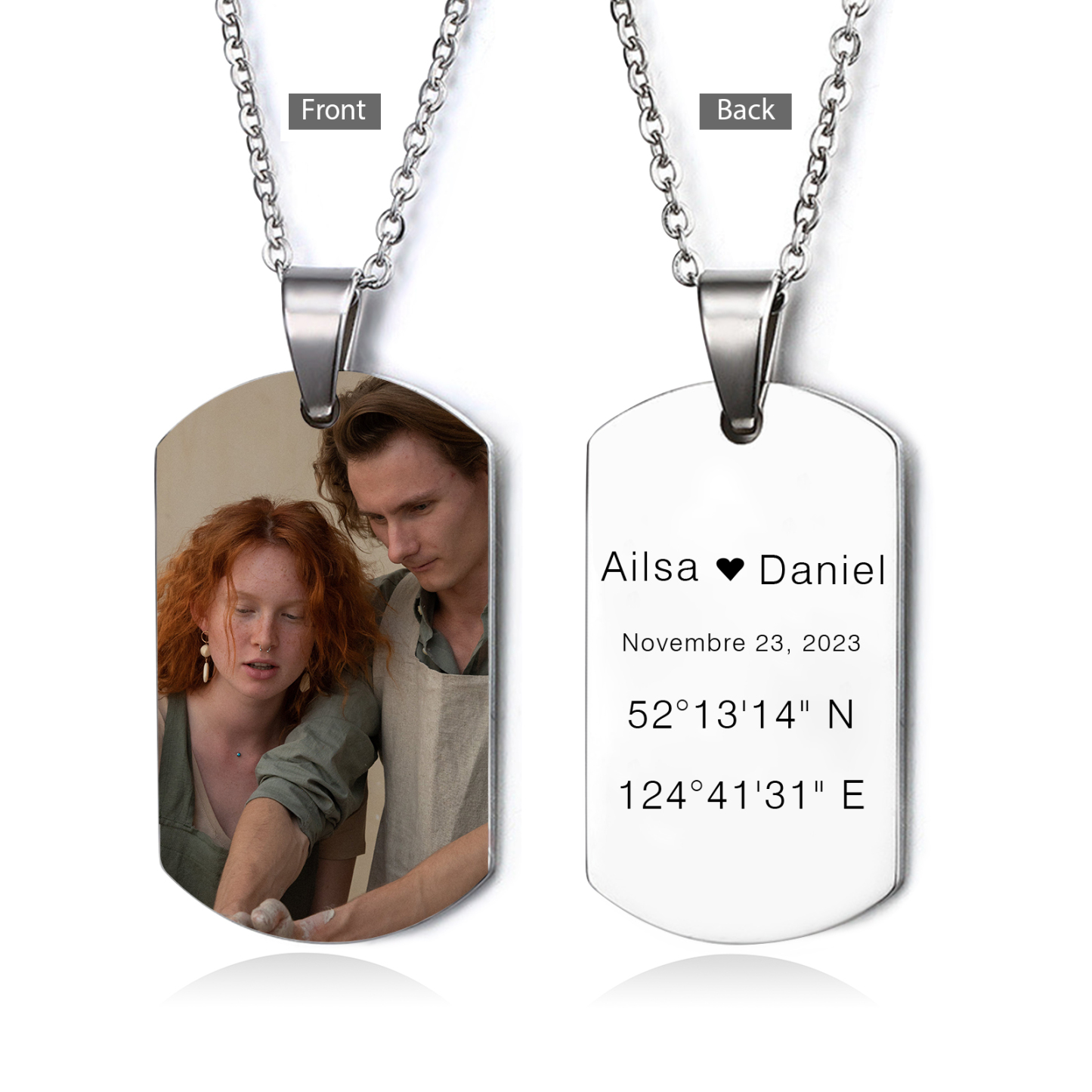 Collana acciaio inox per coppia 2 nomi 1 data 2 testi e 1 foto personalizzabili