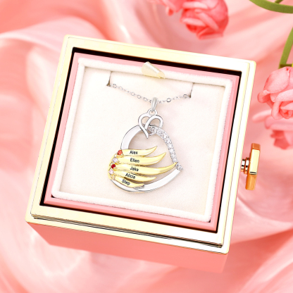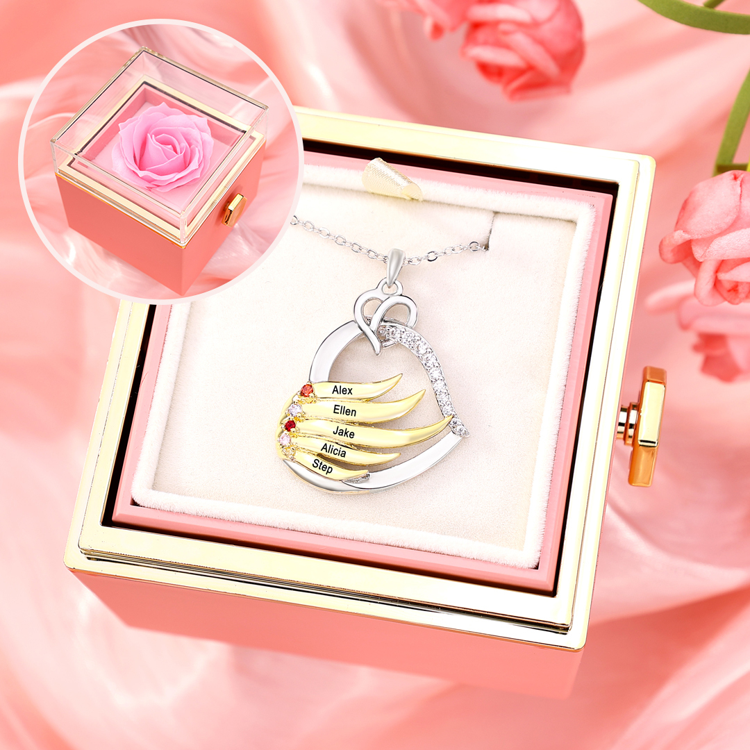 Collana ali nel cuore 5 pietre di nascita e 5 nomi personalizzati regalo per donna con scatola rotante