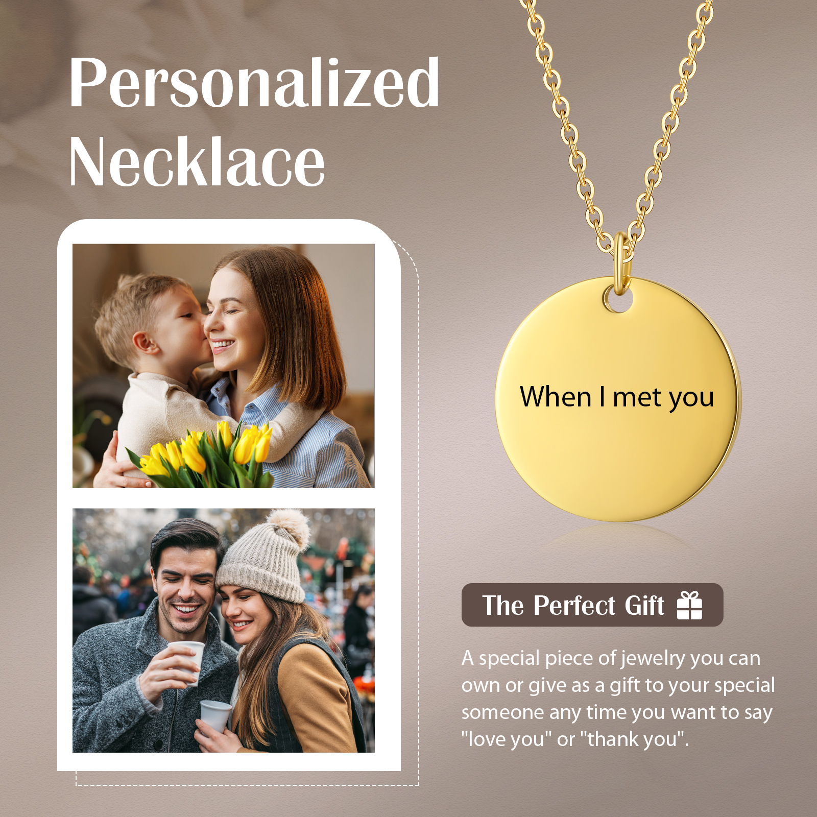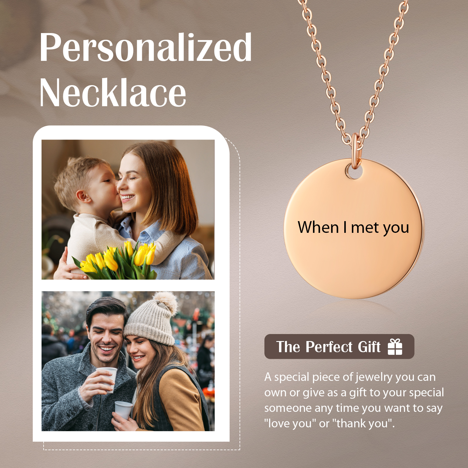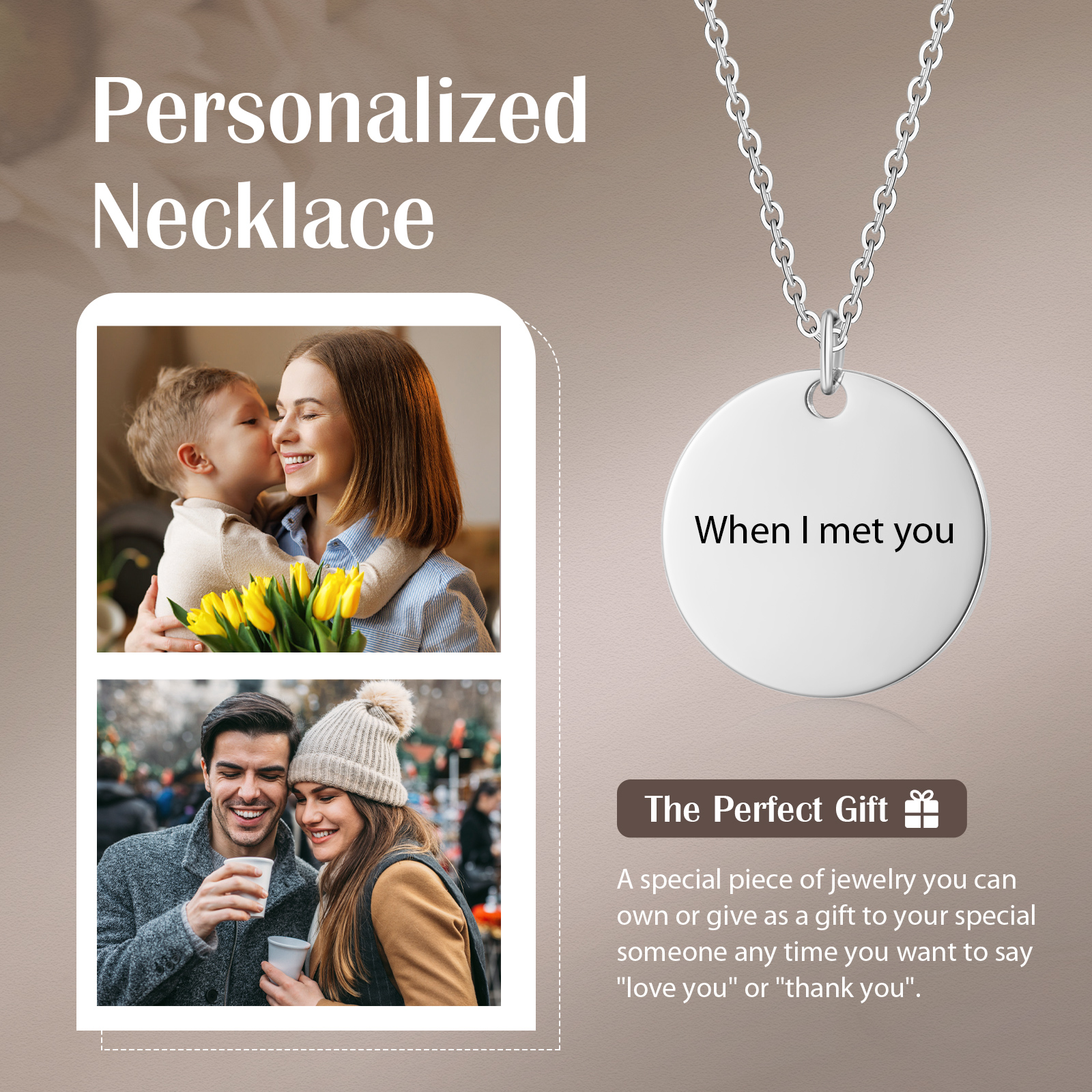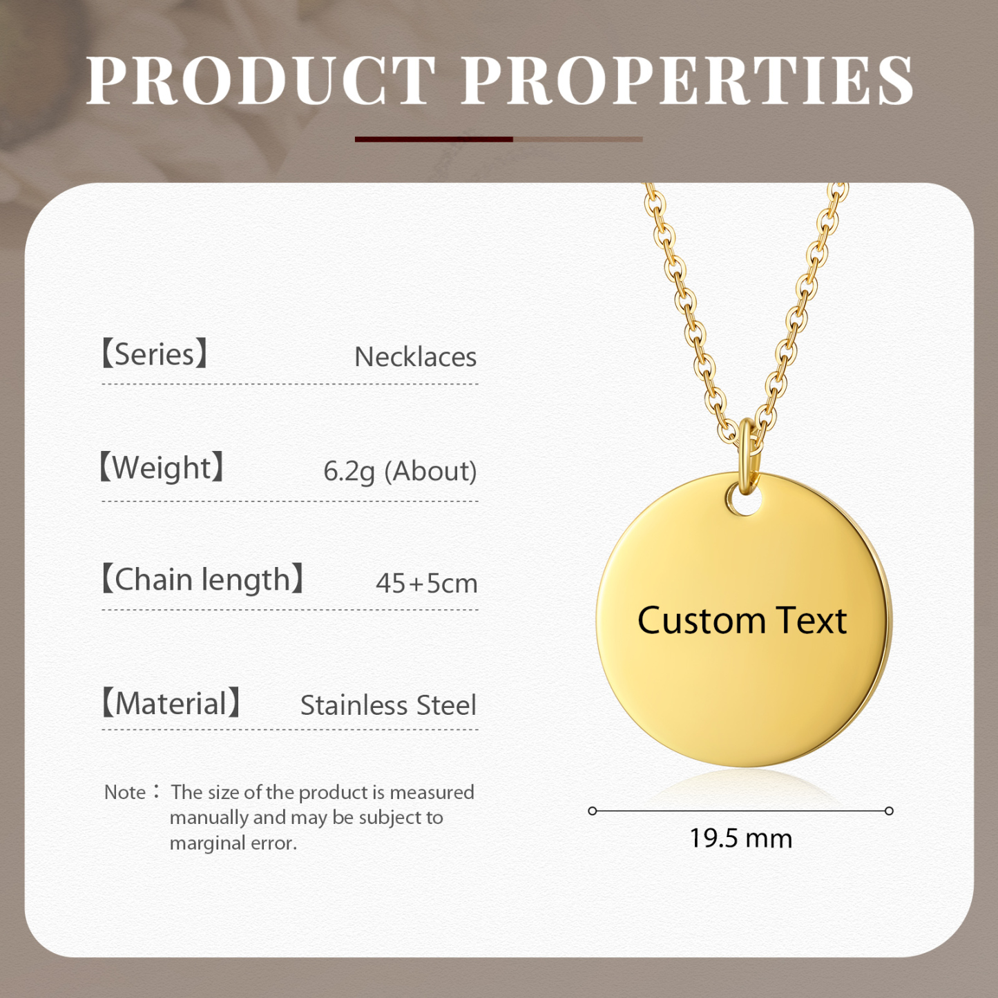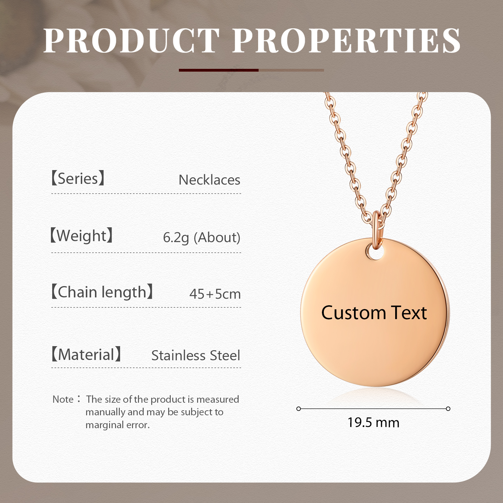 Collana cerchio con 1 testo personalizzabile