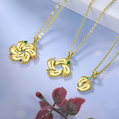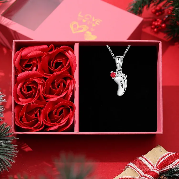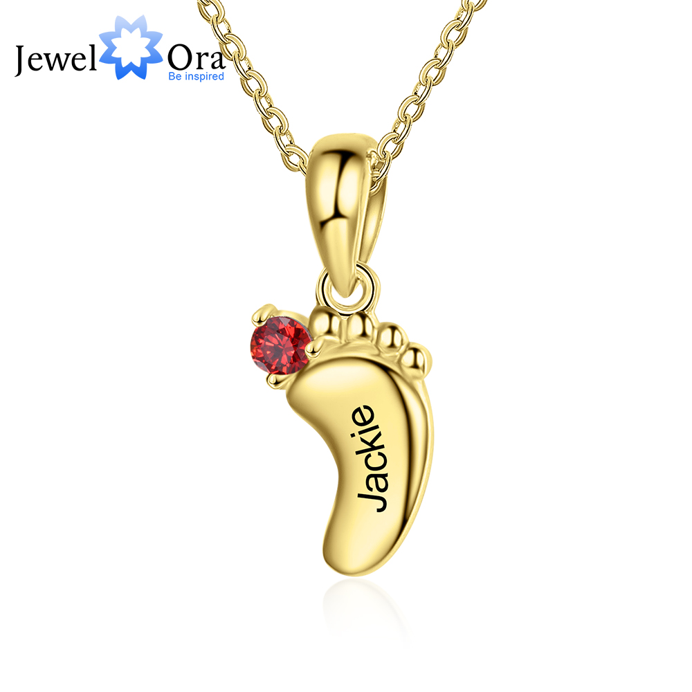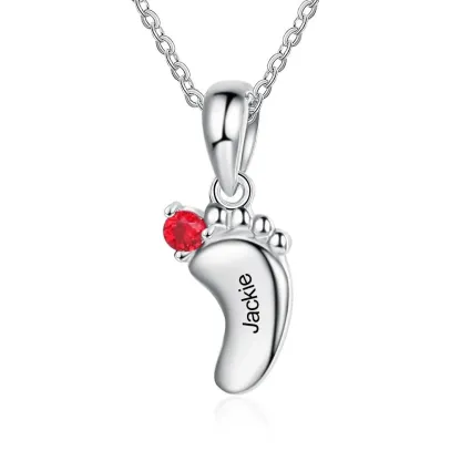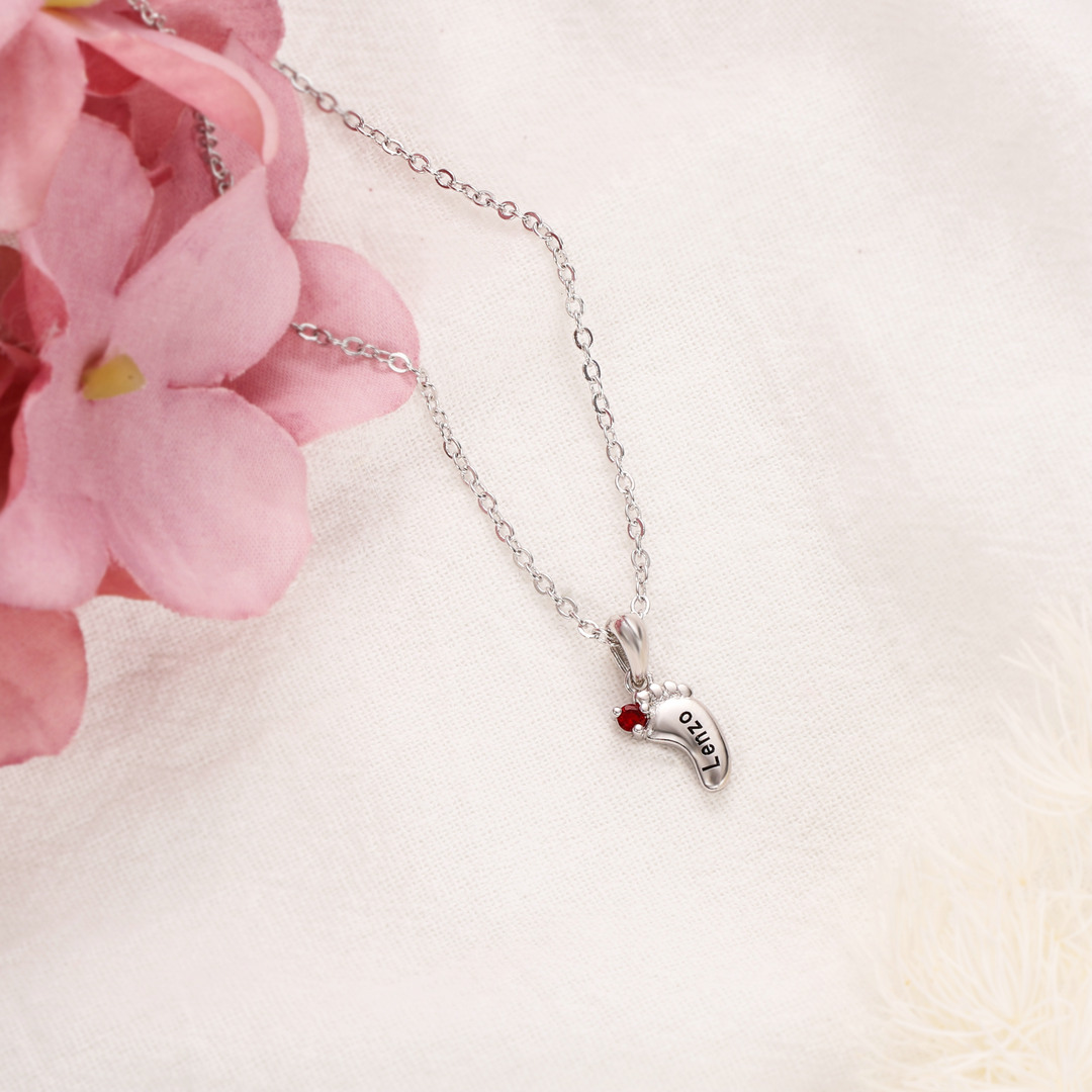 Collana con 1 nome Piede di bambino personalizzato con pietra di nascita