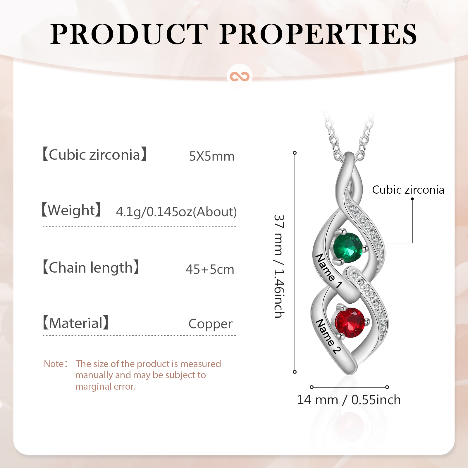 Collana con 2 pietre di nascita e 2 nomi personalizzabili per donna