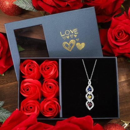 Collana con 3 pietre di nascita e 3 nomi personalizzabili per donna