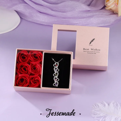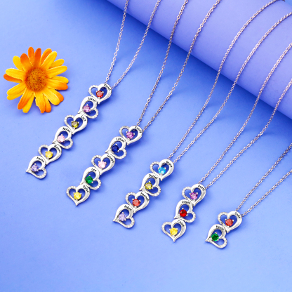 Collana con 6 nomi e 6 pietre di nascita Cuore