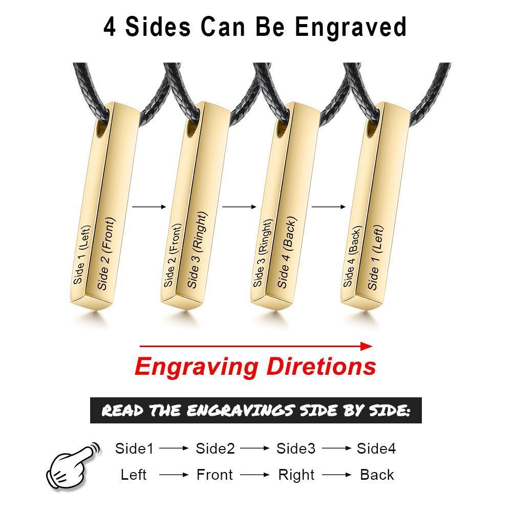 Collana con ciondolo barra 3D 4 nomi incisi per uomo