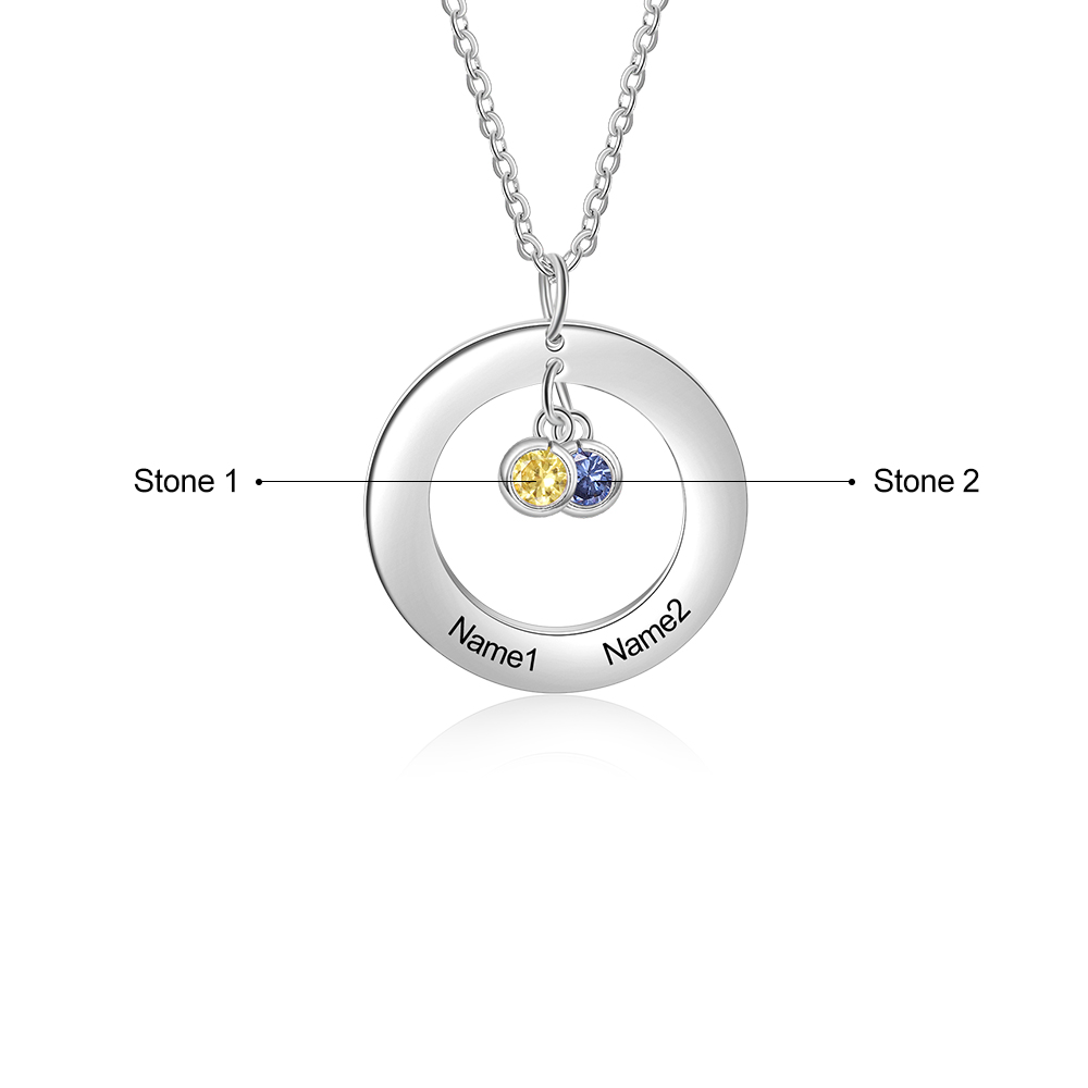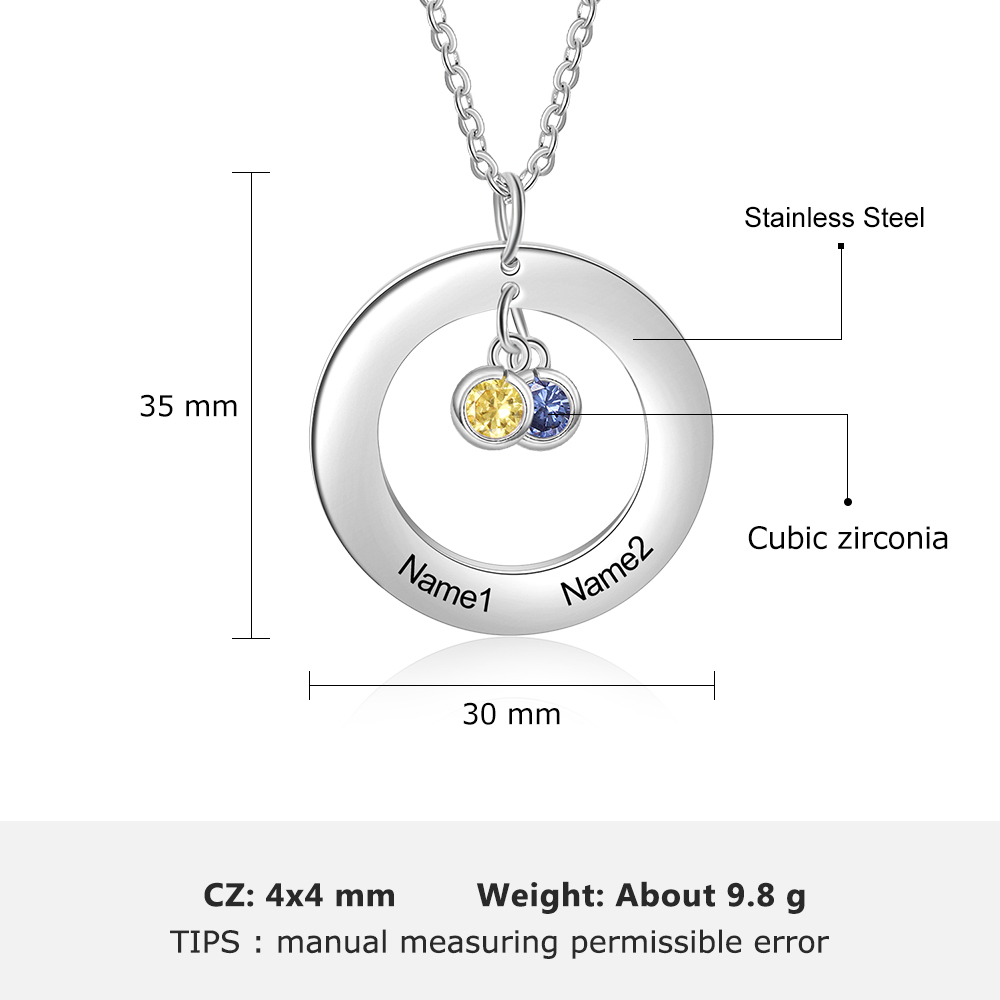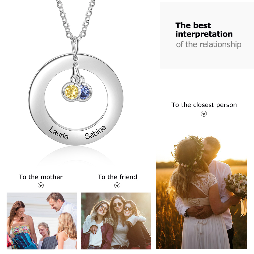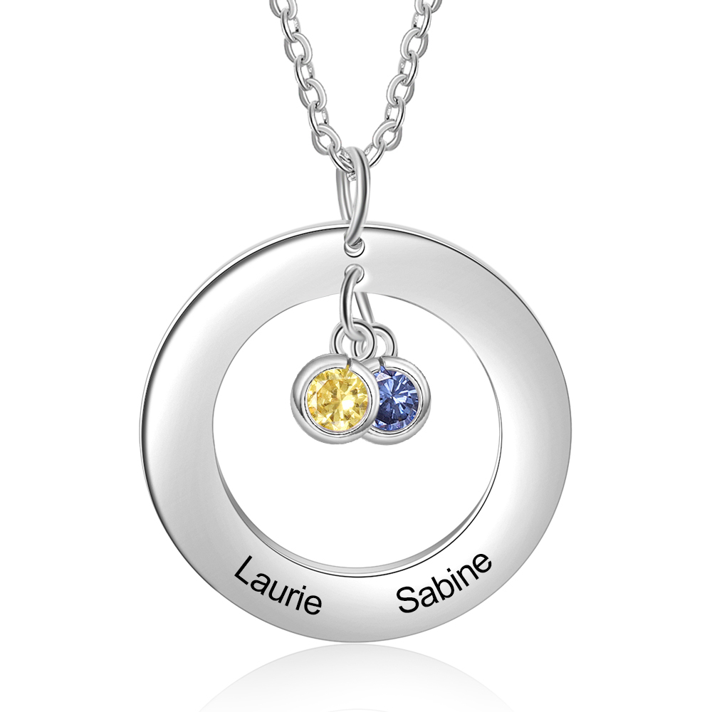 Collana con ciondolo cerchio 2 nomi e 2 pietre di nascita personalizzati regalo per donna