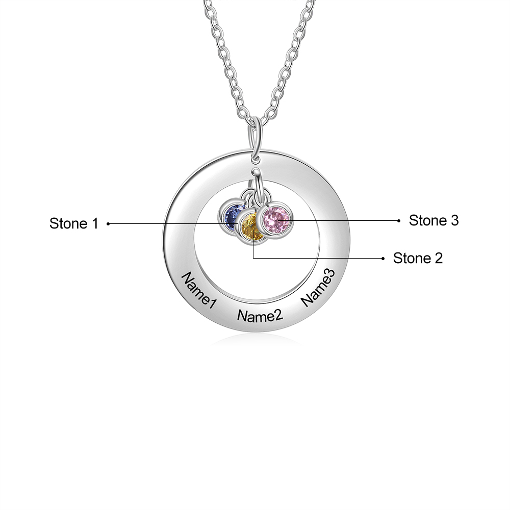 Collana con ciondolo cerchio 3 nomi e 3 pietre di nascita personalizzati regalo per donna