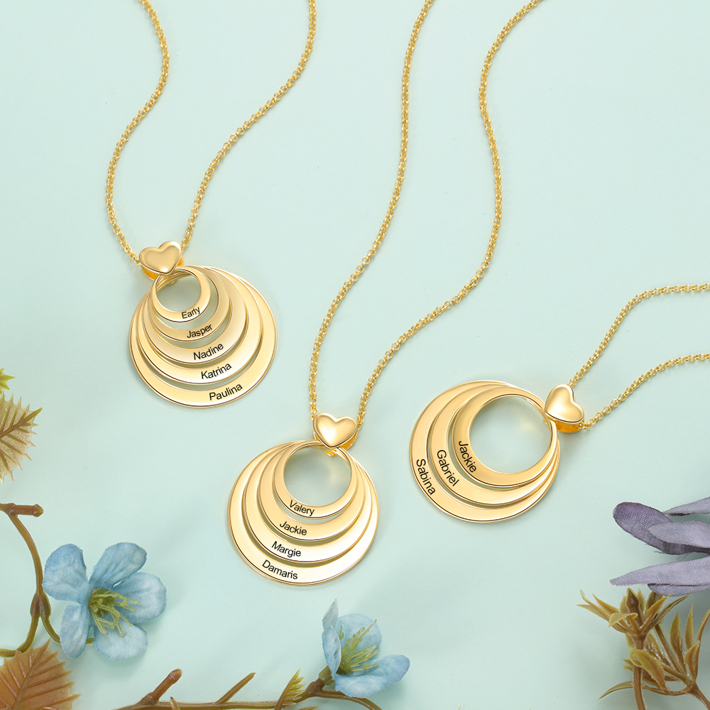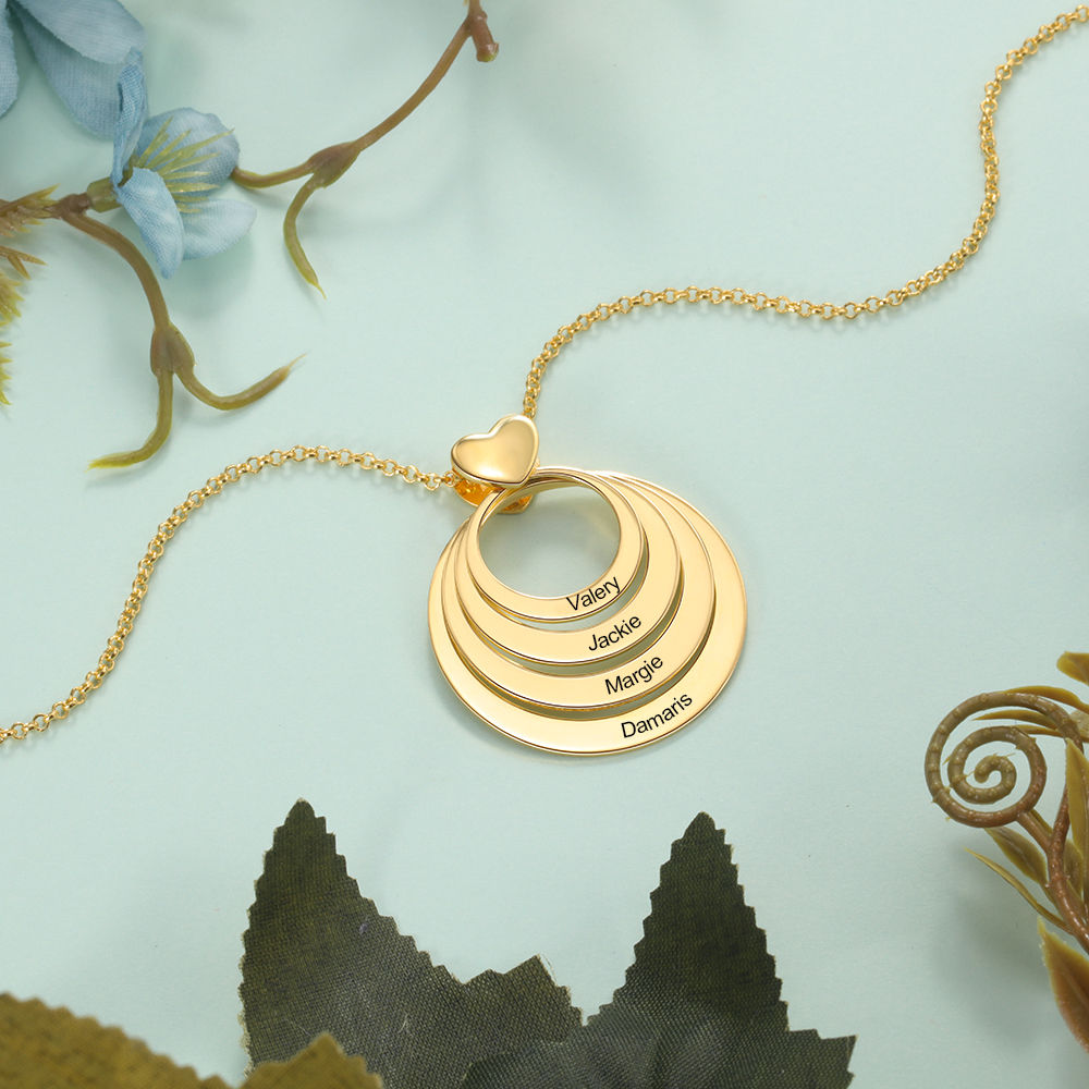 Collana con ciondolo cerchio 4 nomi personalizzati regalo per donna