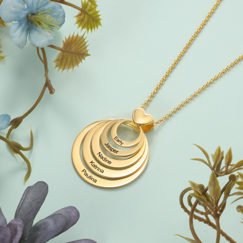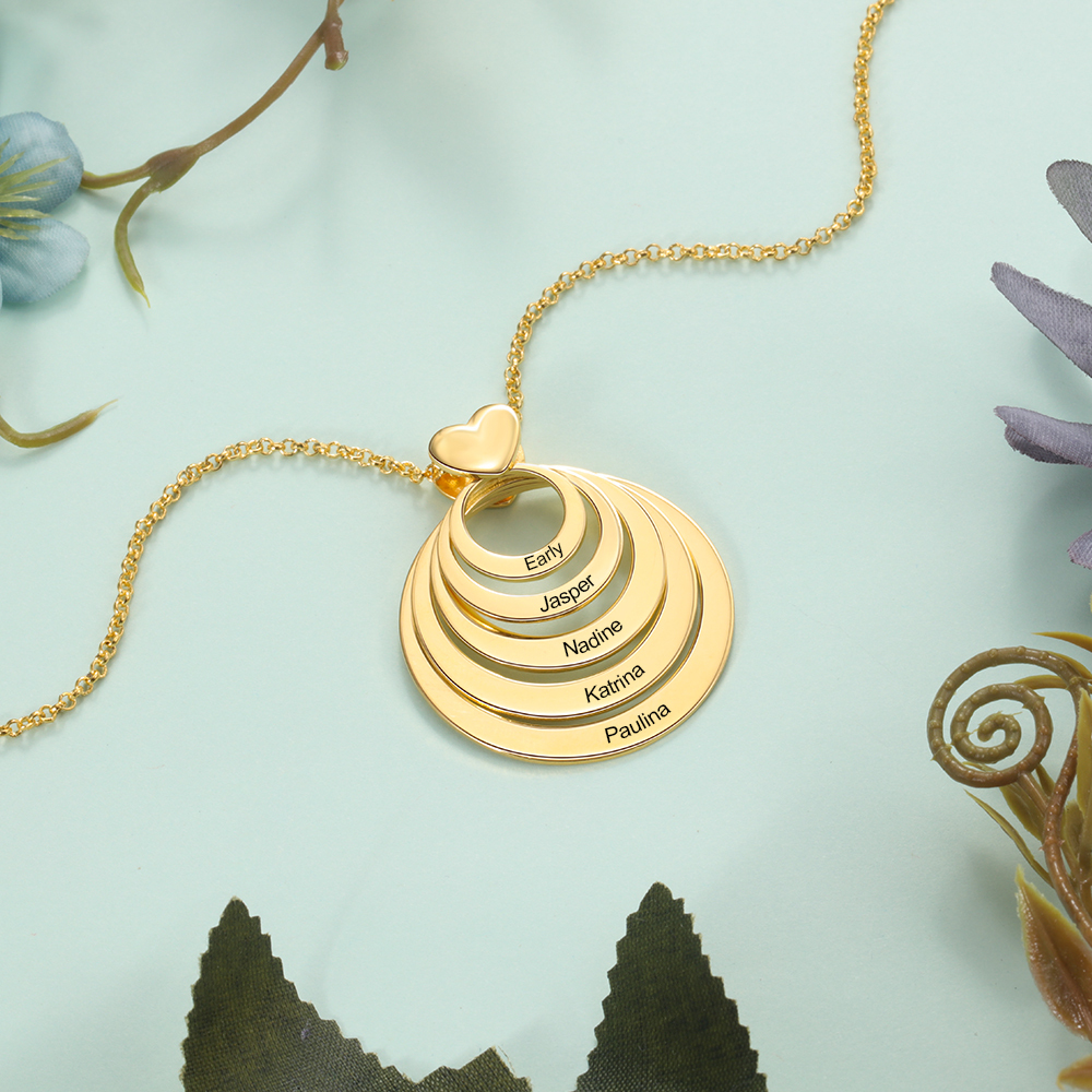 Collana con ciondolo cerchio 5 nomi personalizzati regalo per donna