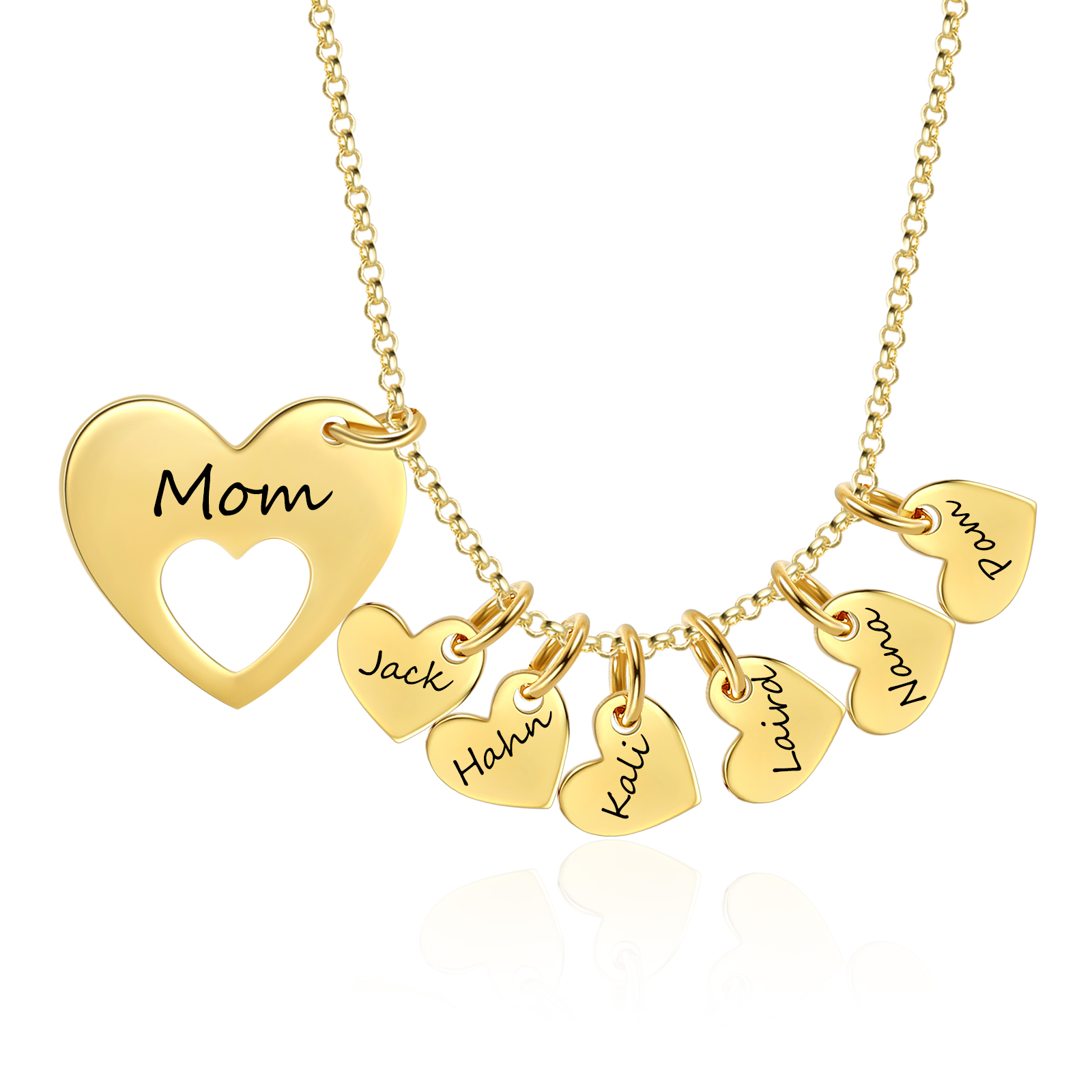 Collana con ciondolo cuore 6 nomi e 1 testo personalizzati regalo per donna