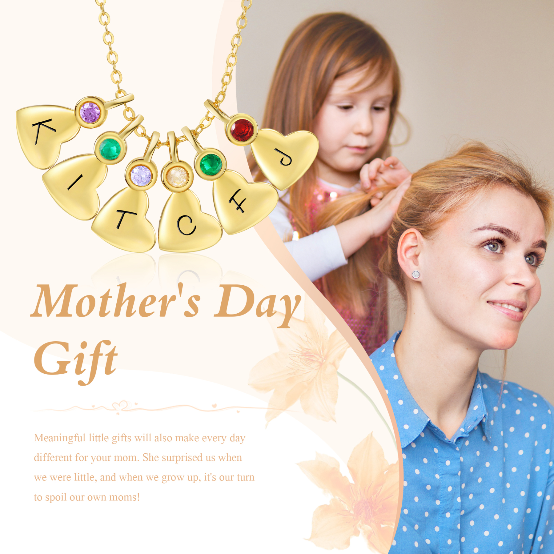 Collana con ciondolo cuore 6 pietre di nascita e 6 lettere personalizzate regalo per donna