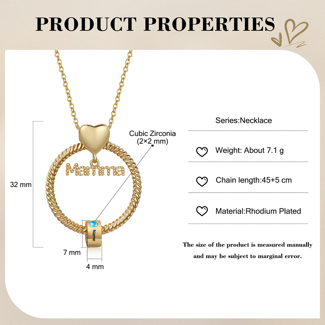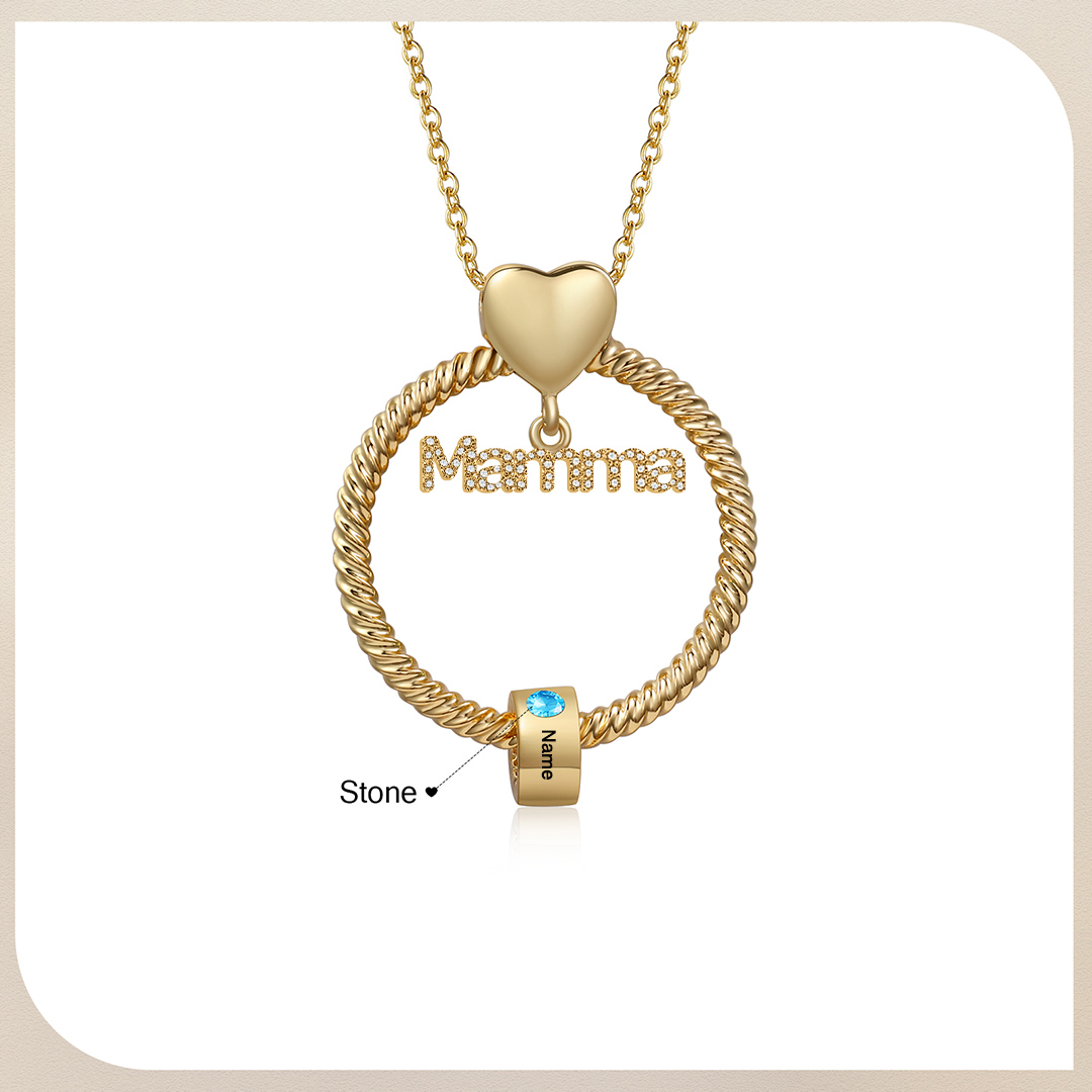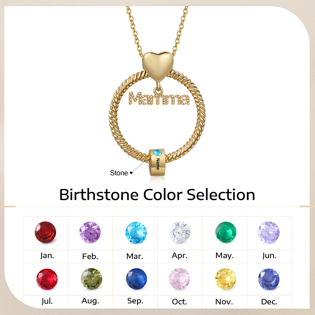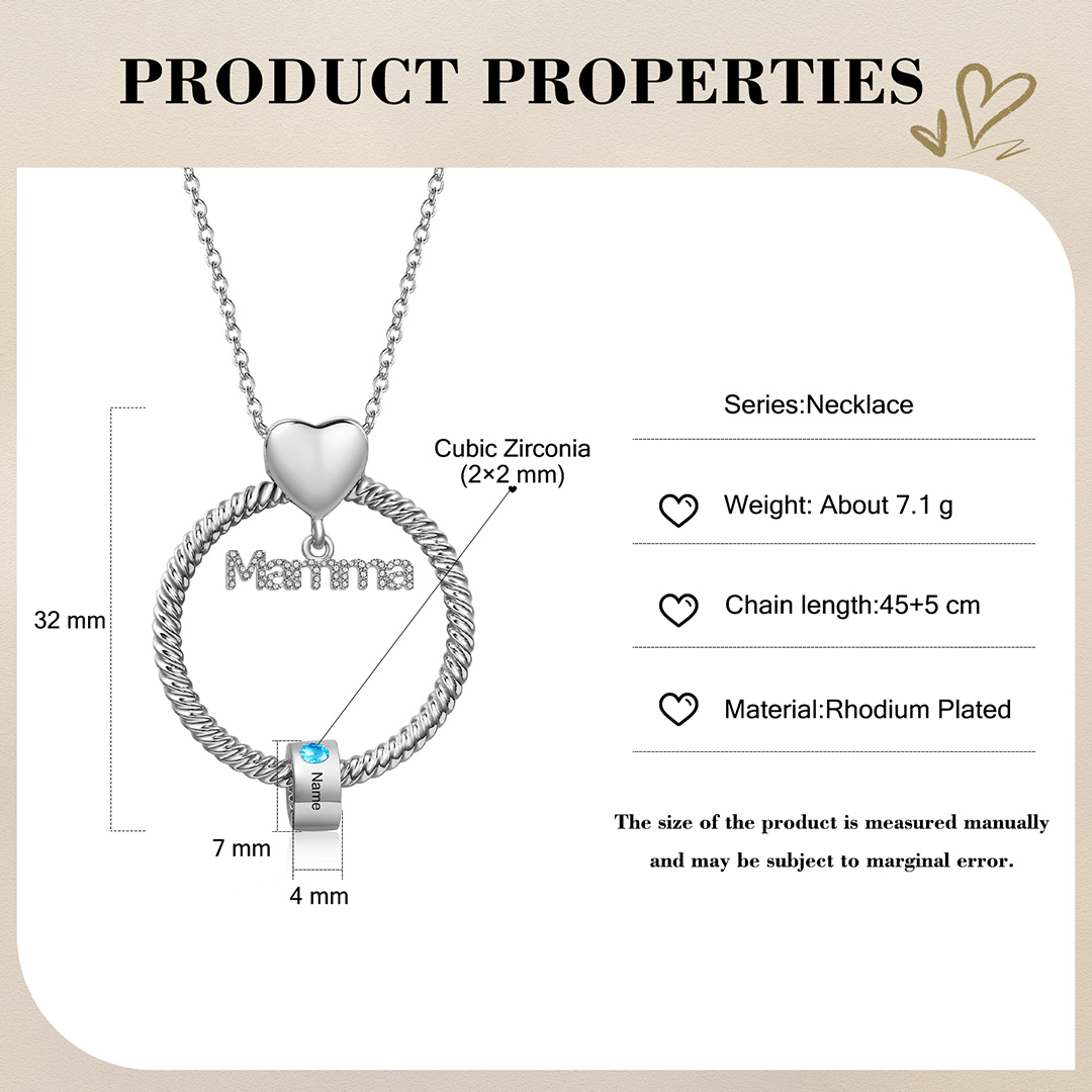 Collana con ciondolo mamma 1 nome incisione e pietra di nascita personalizzata con scatola rosa