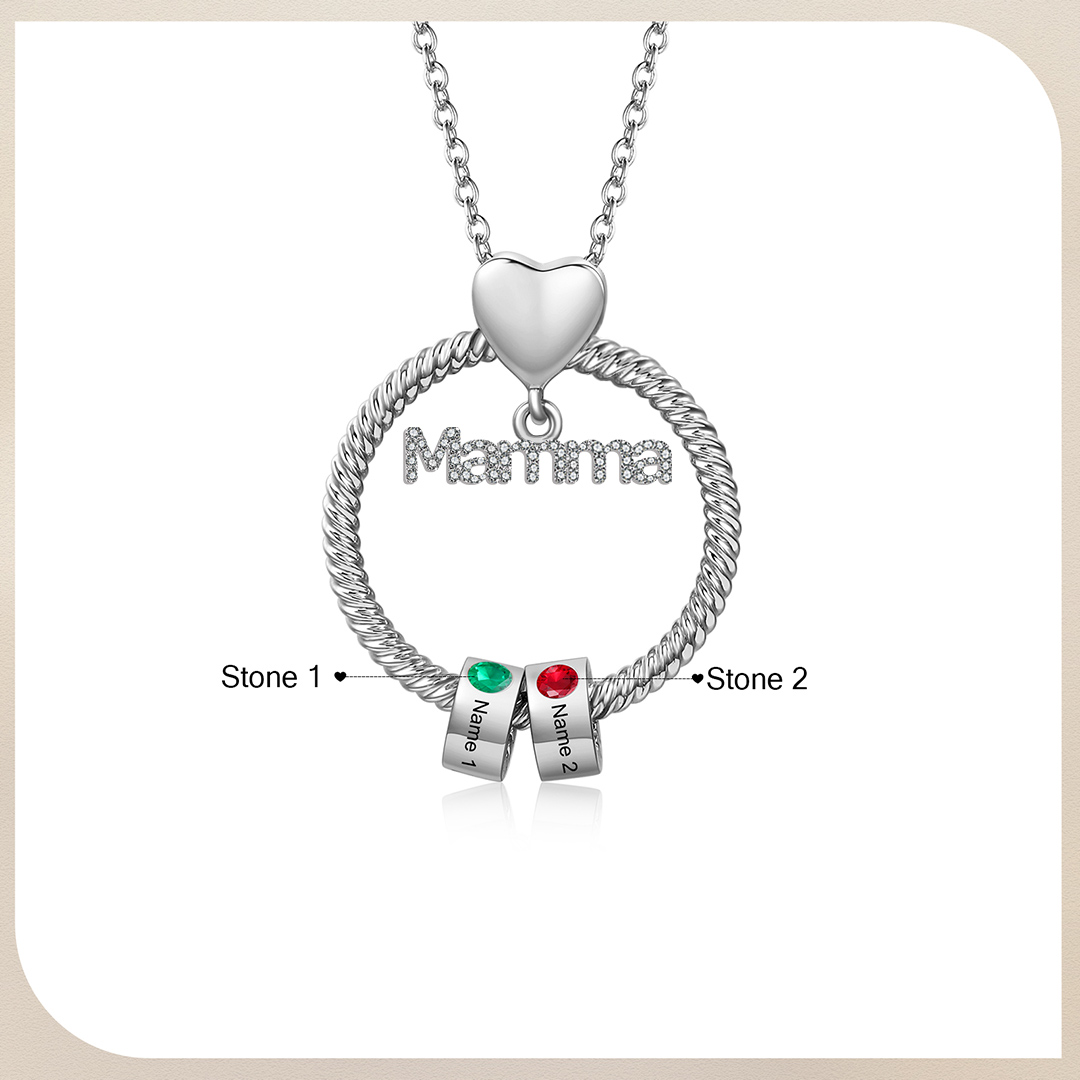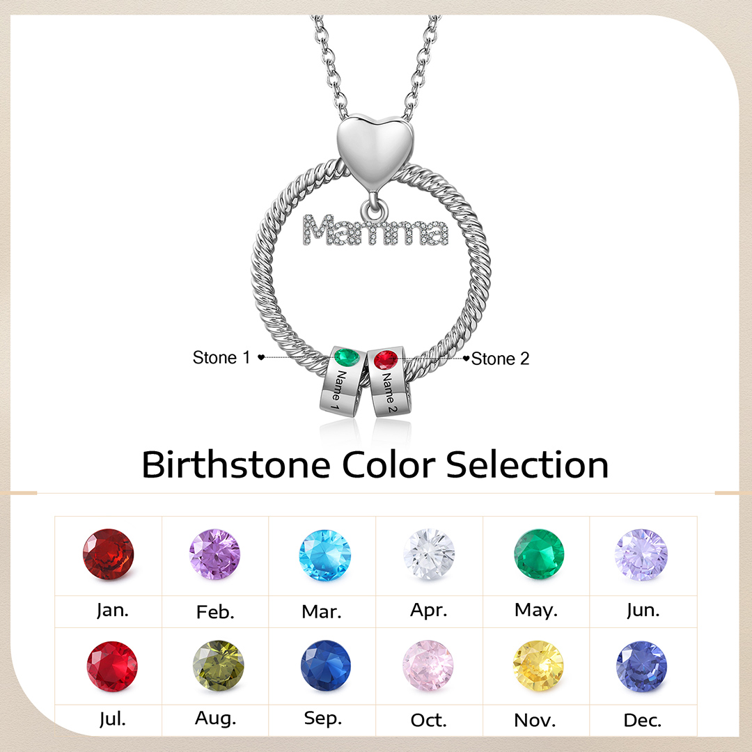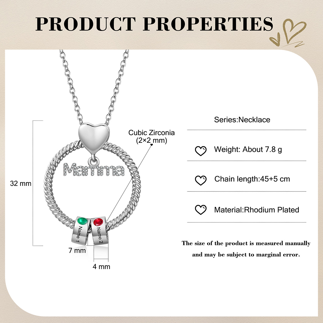 Collana con ciondolo mamma 2 nomi incisioni e pietre di nascita personalizzata con scatola rosa