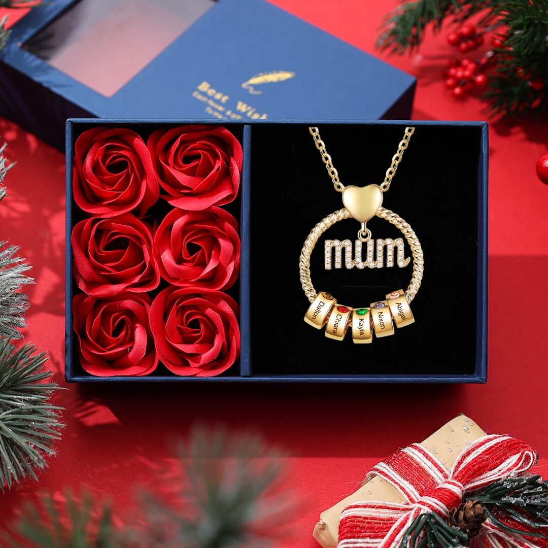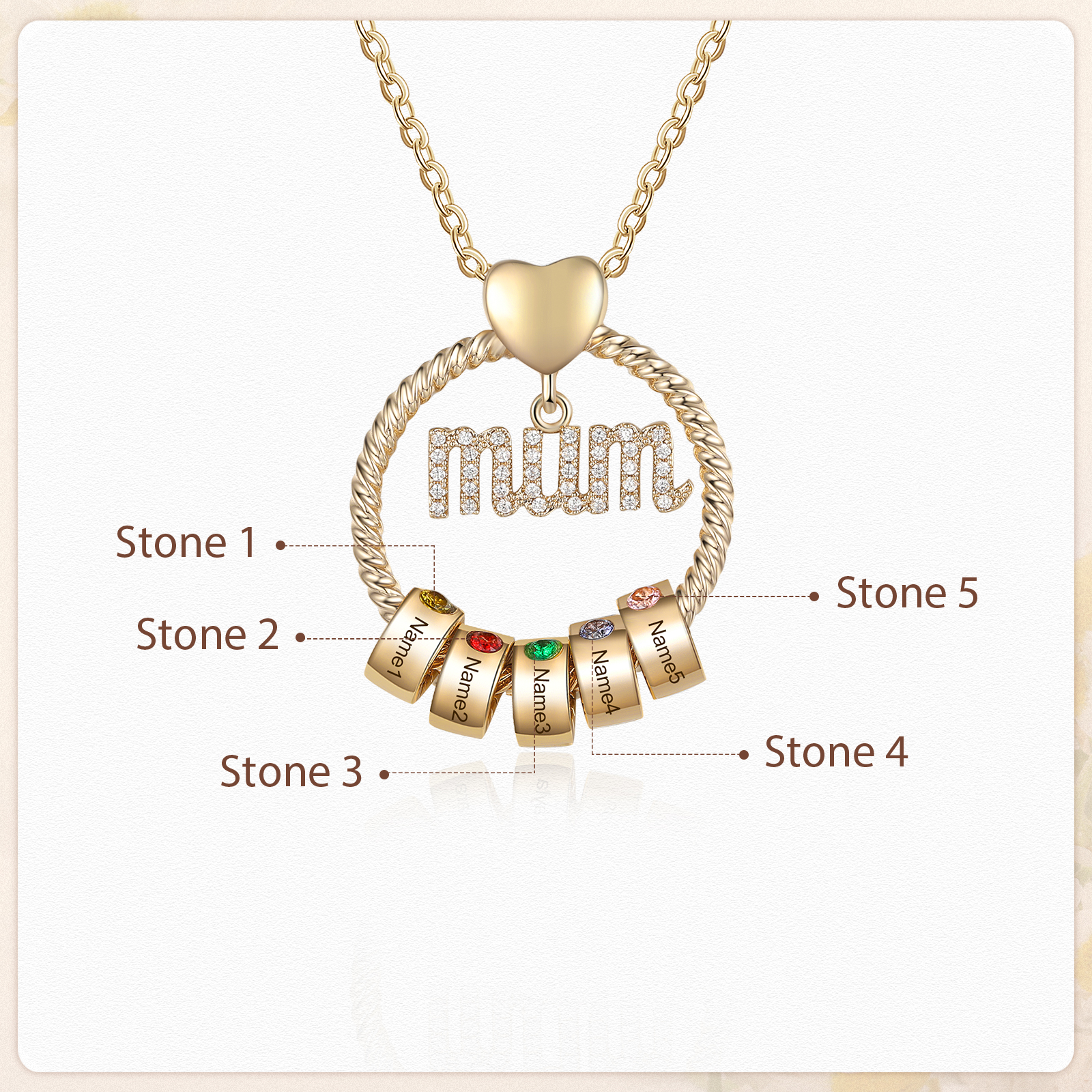Collana con ciondolo mamma 5 nomi incisioni e pietra di nascita personalizzati
