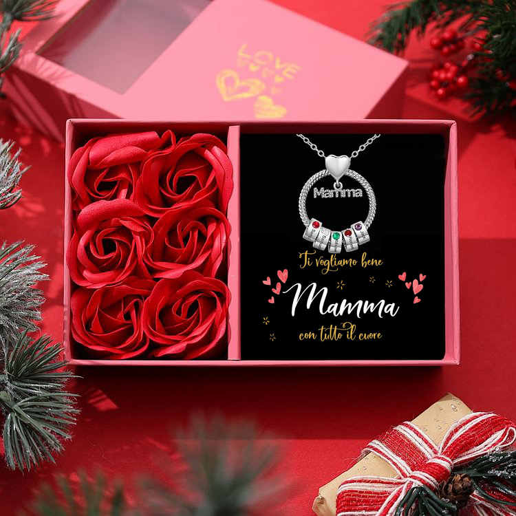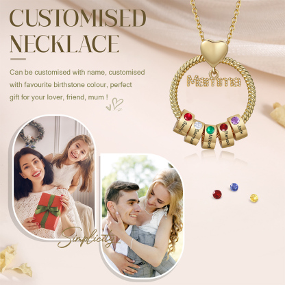 Collana con ciondolo mamma 5 nomi incisioni e pietre di nascita personalizzata