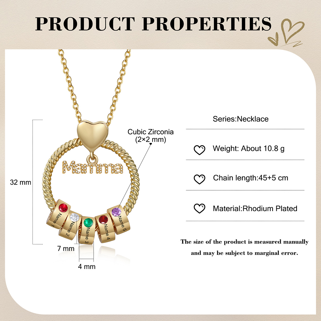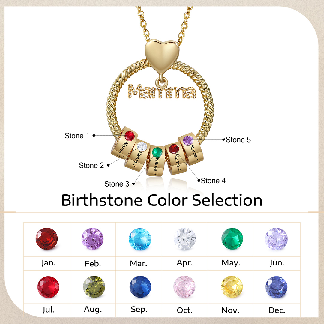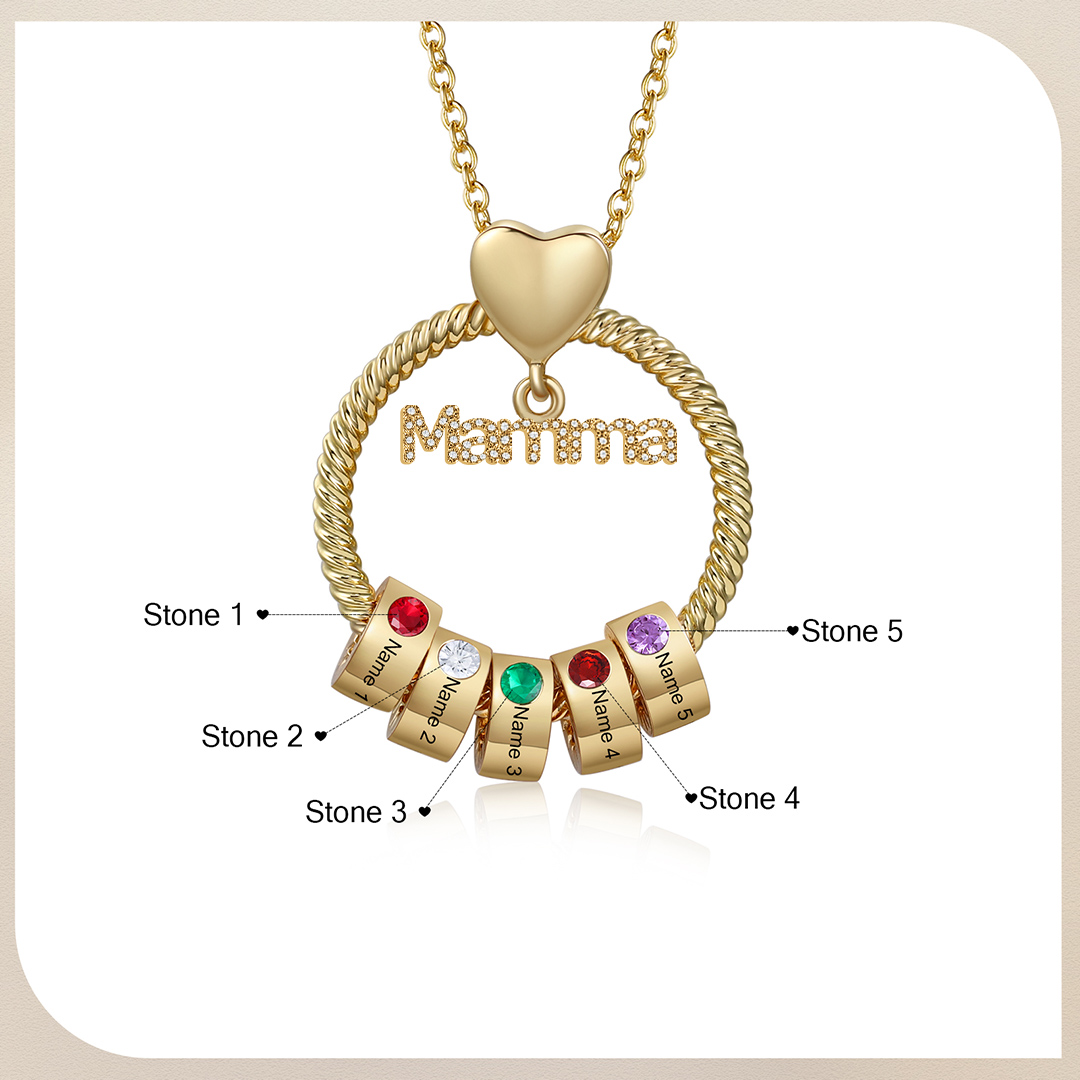 Collana con ciondolo mamma 5 nomi incisioni e pietre di nascita personalizzata con scatola rosa
