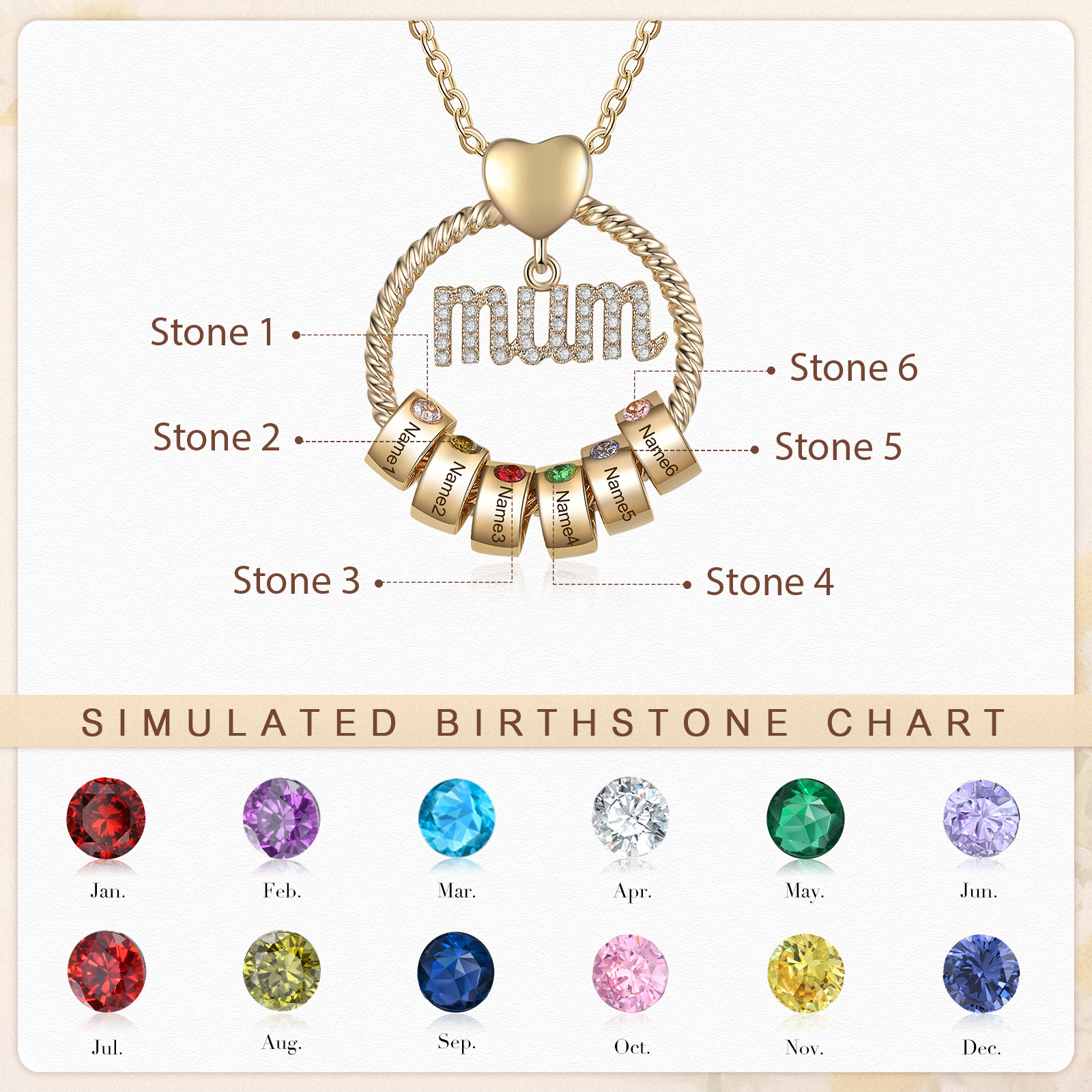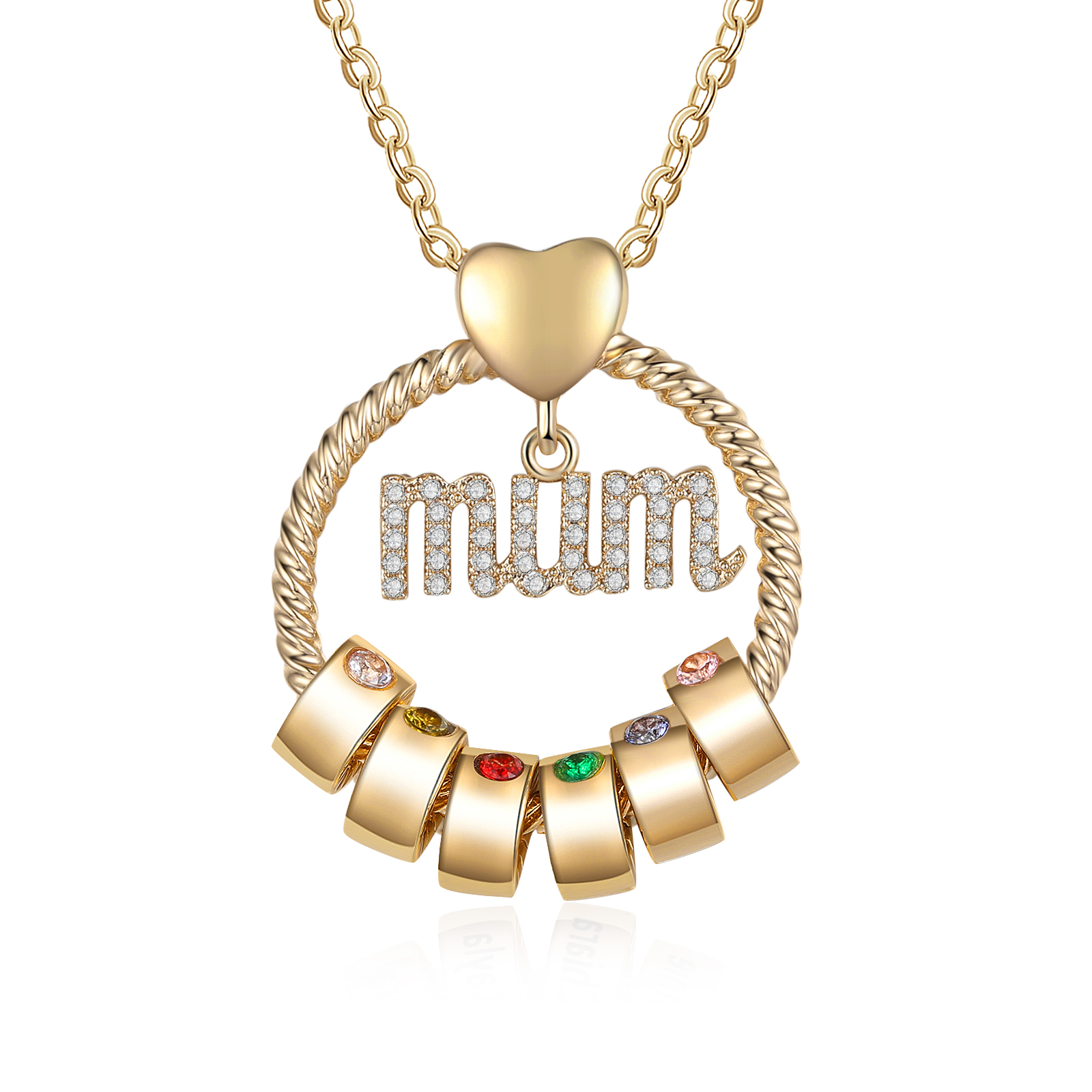 Collana con ciondolo mamma 6 nomi incisioni e pietra di nascita personalizzati