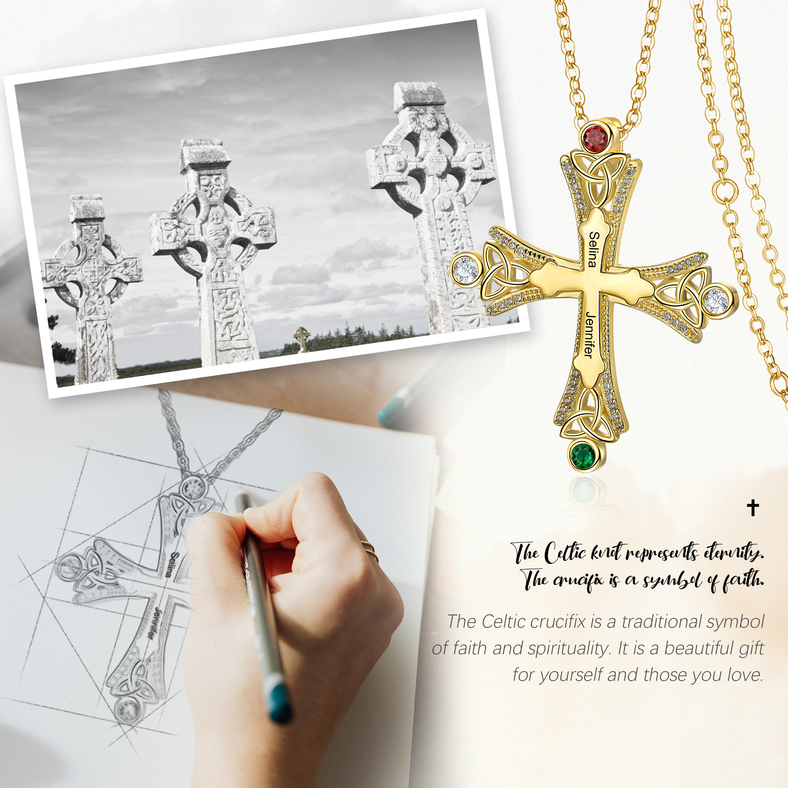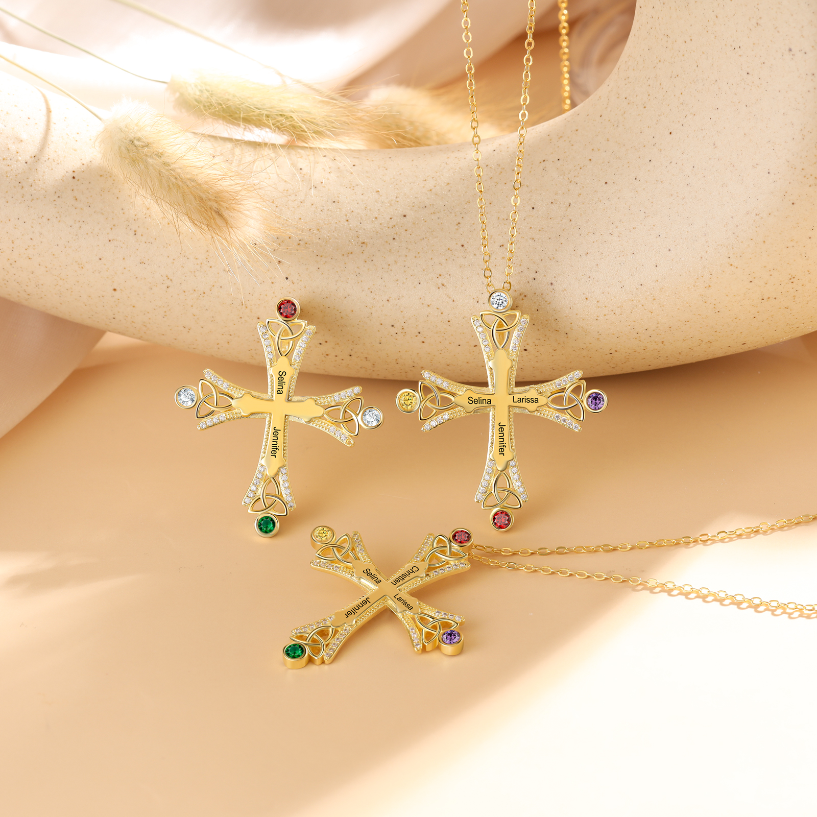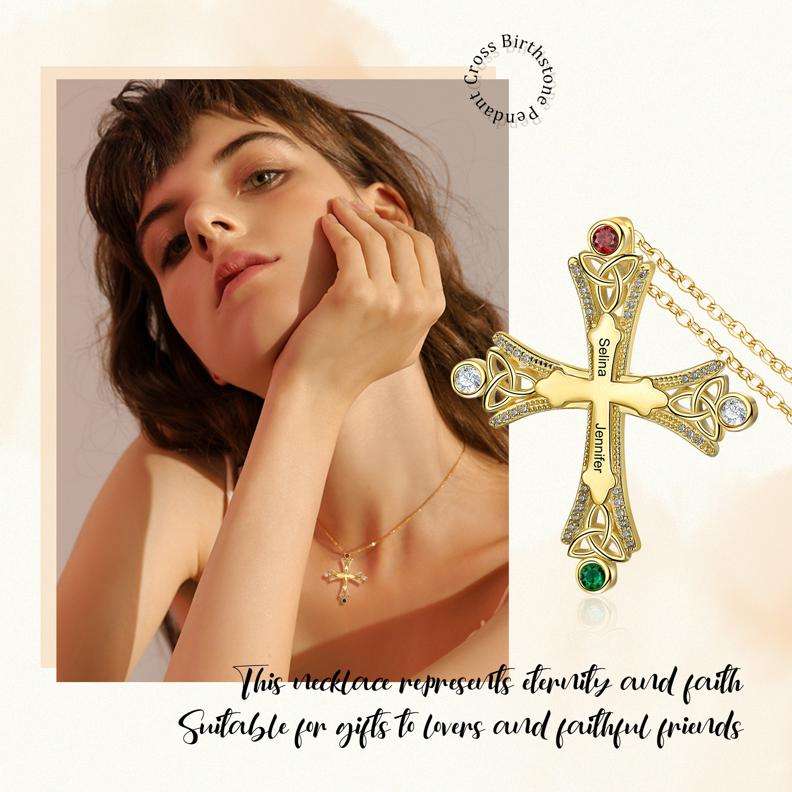 Collana con croce con 2 pietre di nascita e 2 nomi regalo