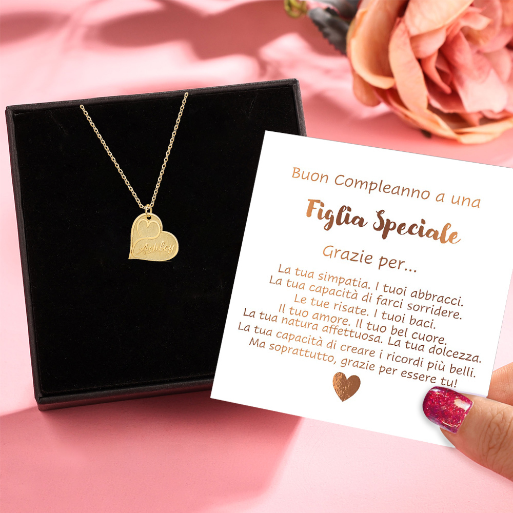 A Mia Figlia-Collana cuore 1 nome personalizzato regalo compleanno per donna